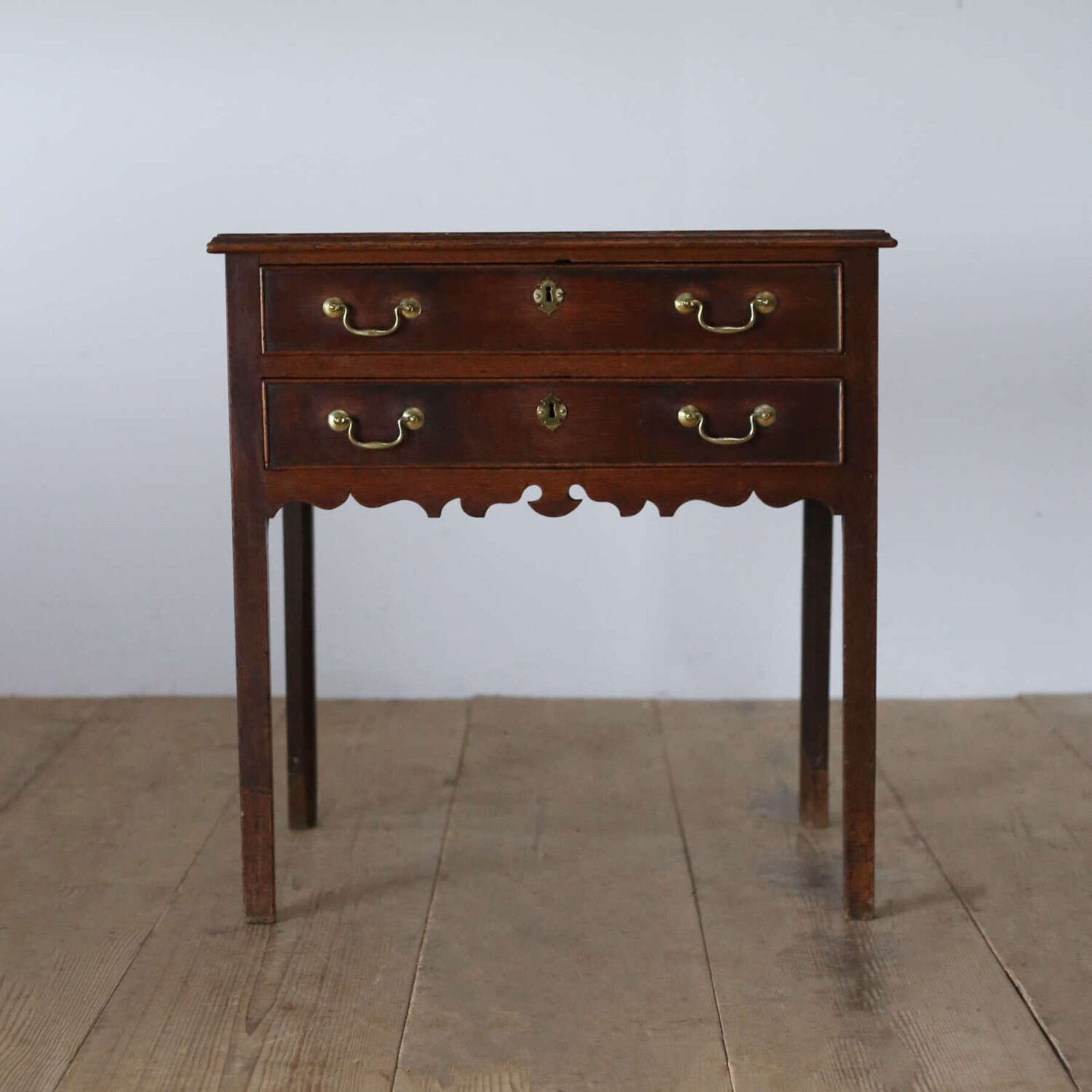 English 18th Century two drawer lowboy. Material: Oak with original polish.