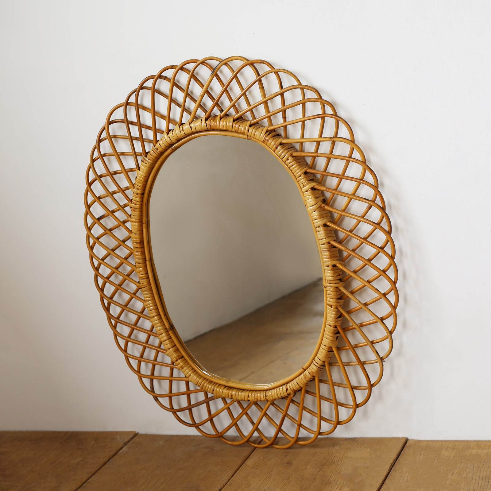 1960s oval rattan mirror.
