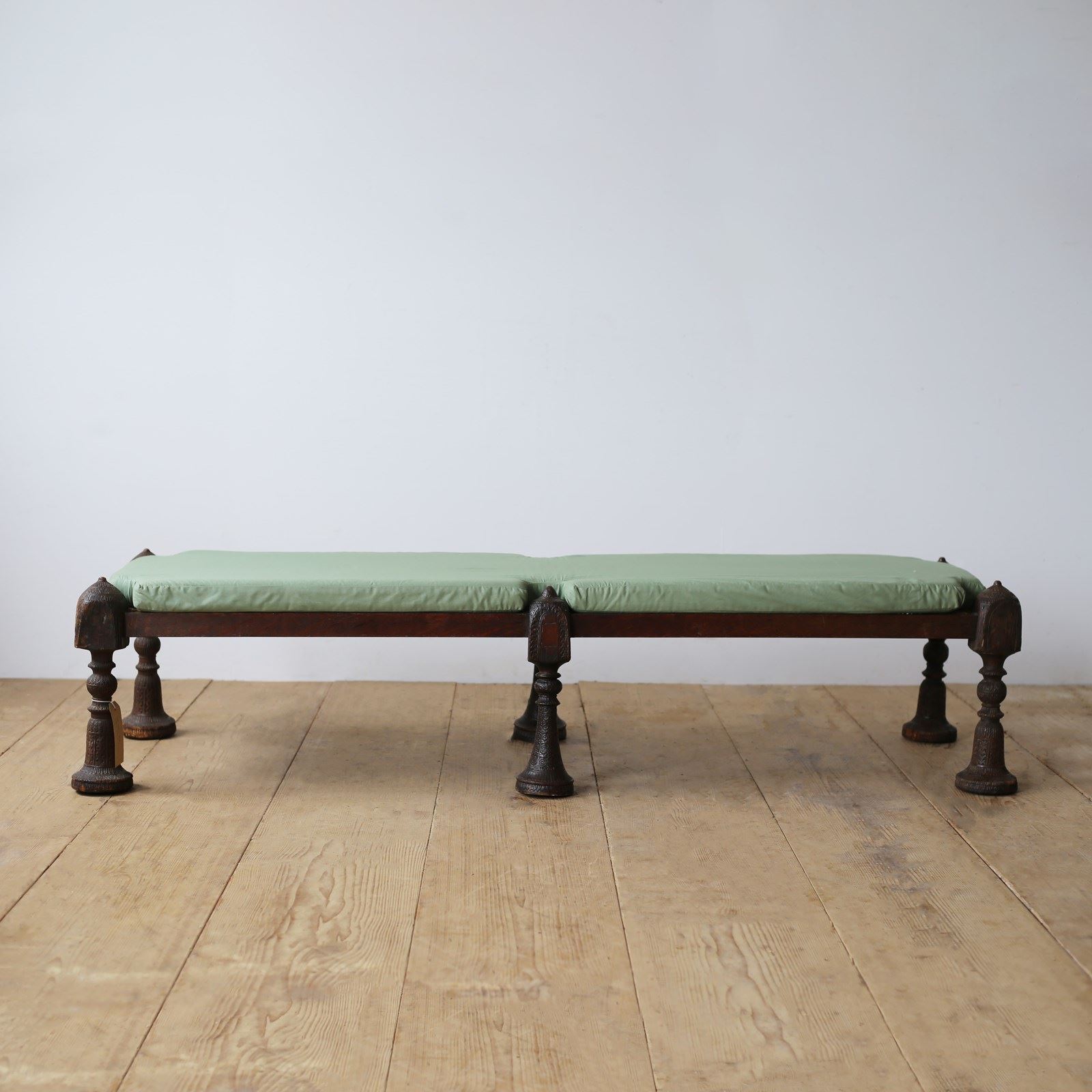 19th century Anglo Indian daybed on carved supports and original cane top. Comes with seat cushion.