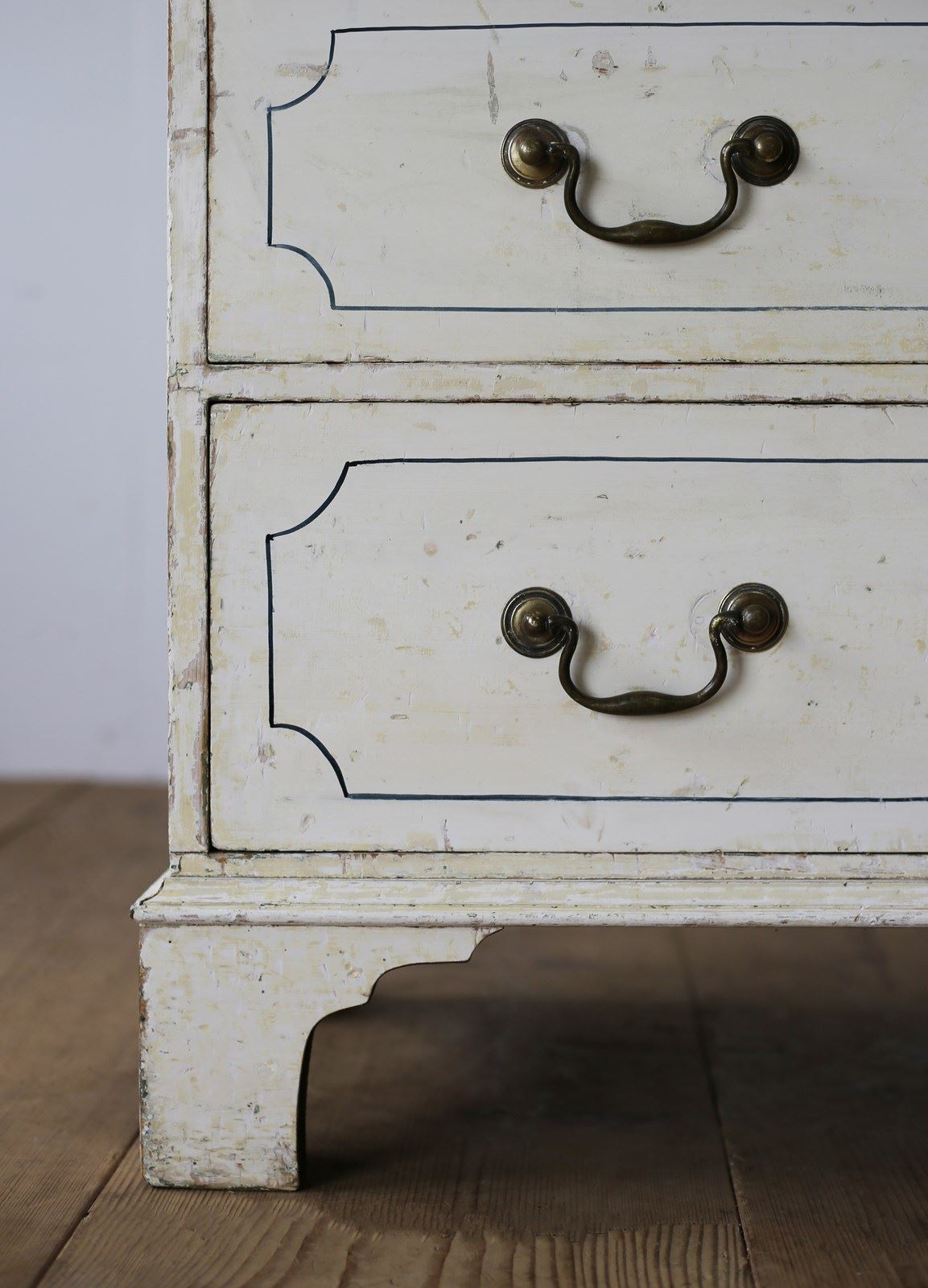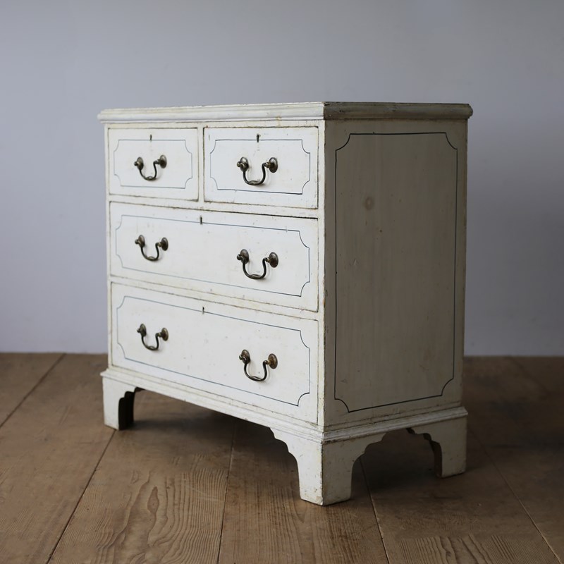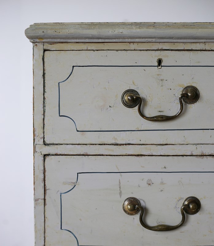 19th century chest of drawers in original paint with later lined decoration.