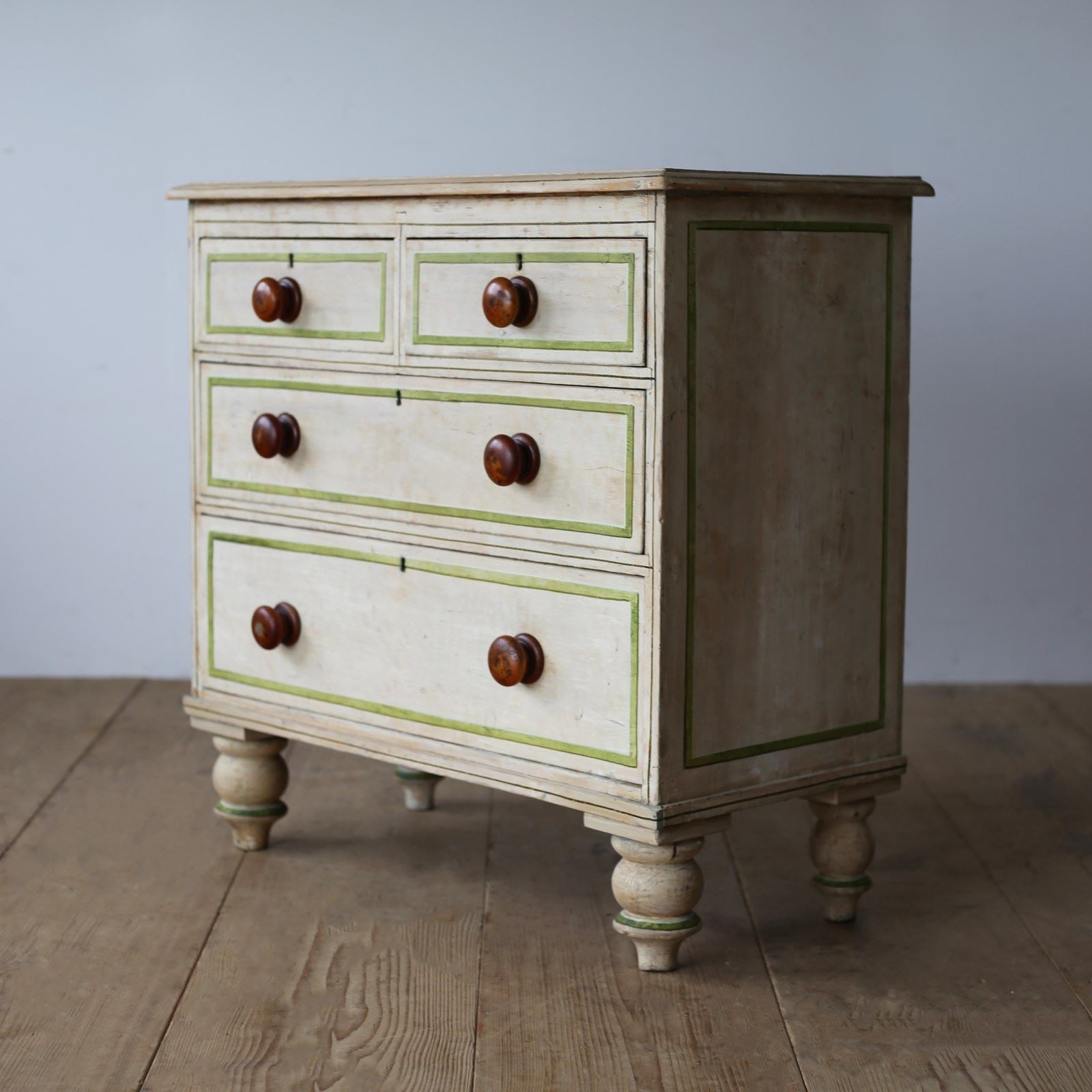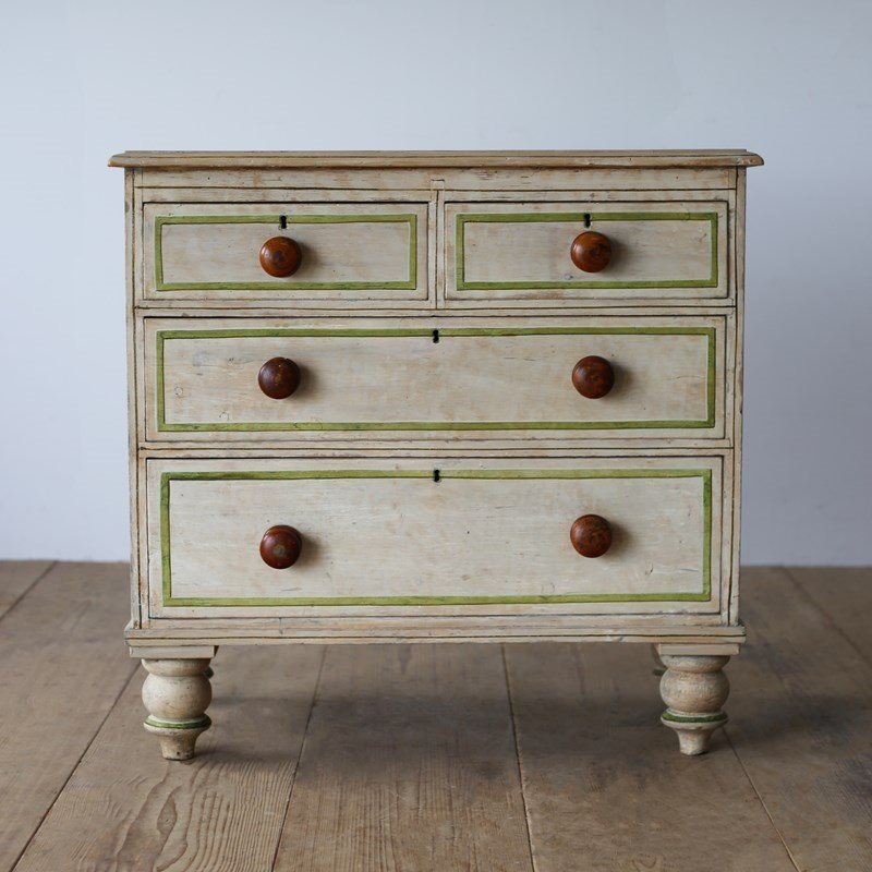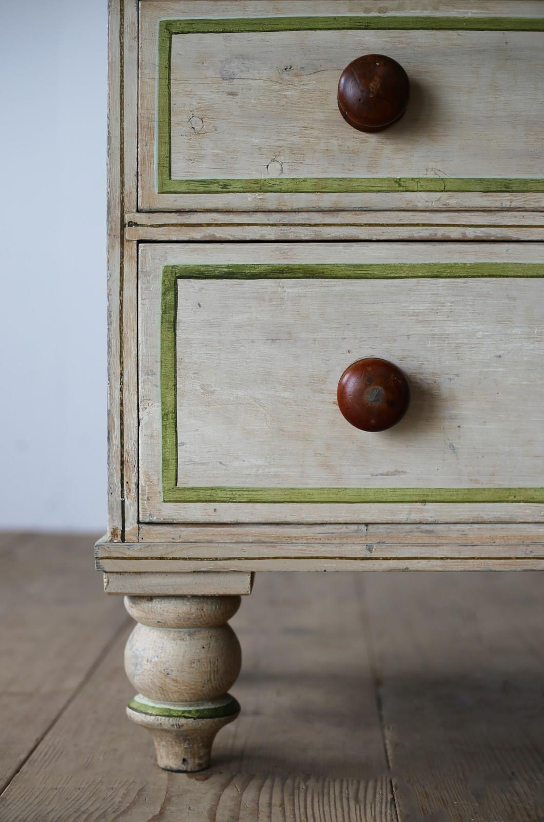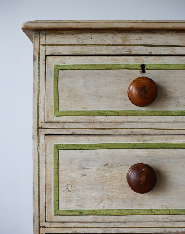 19th century chest of drawers in original paint with later lined decoration.