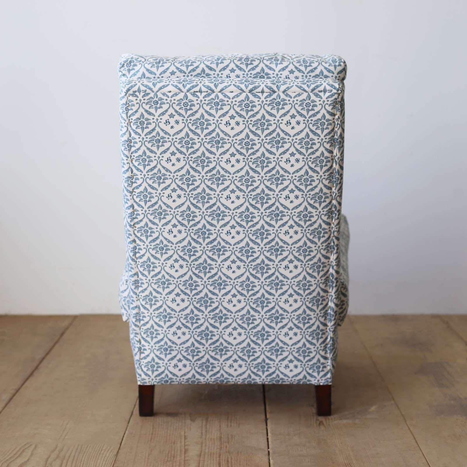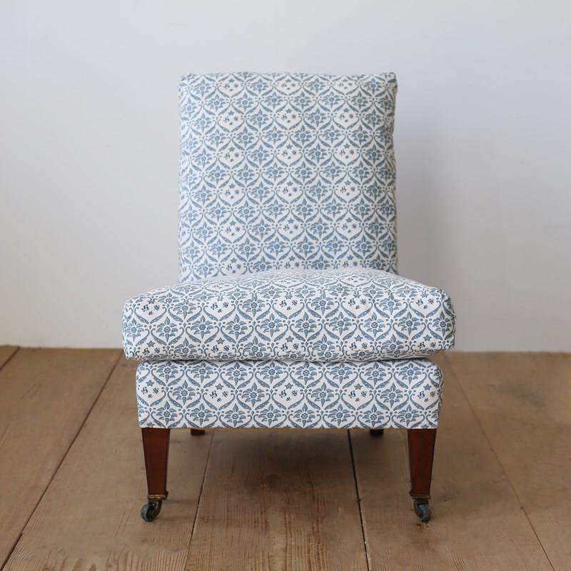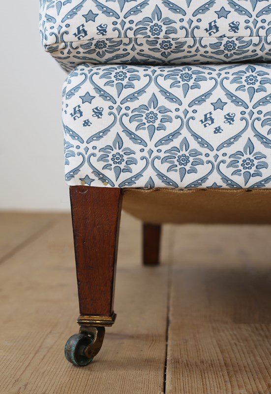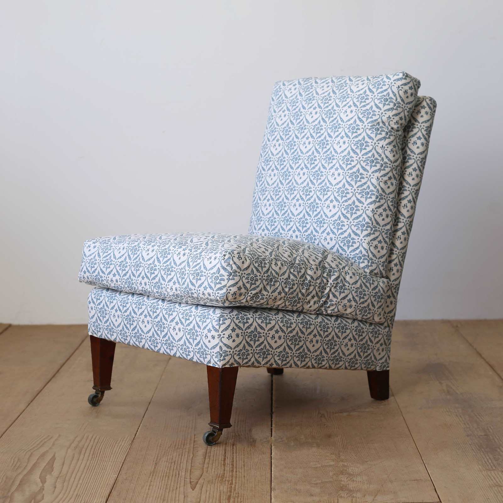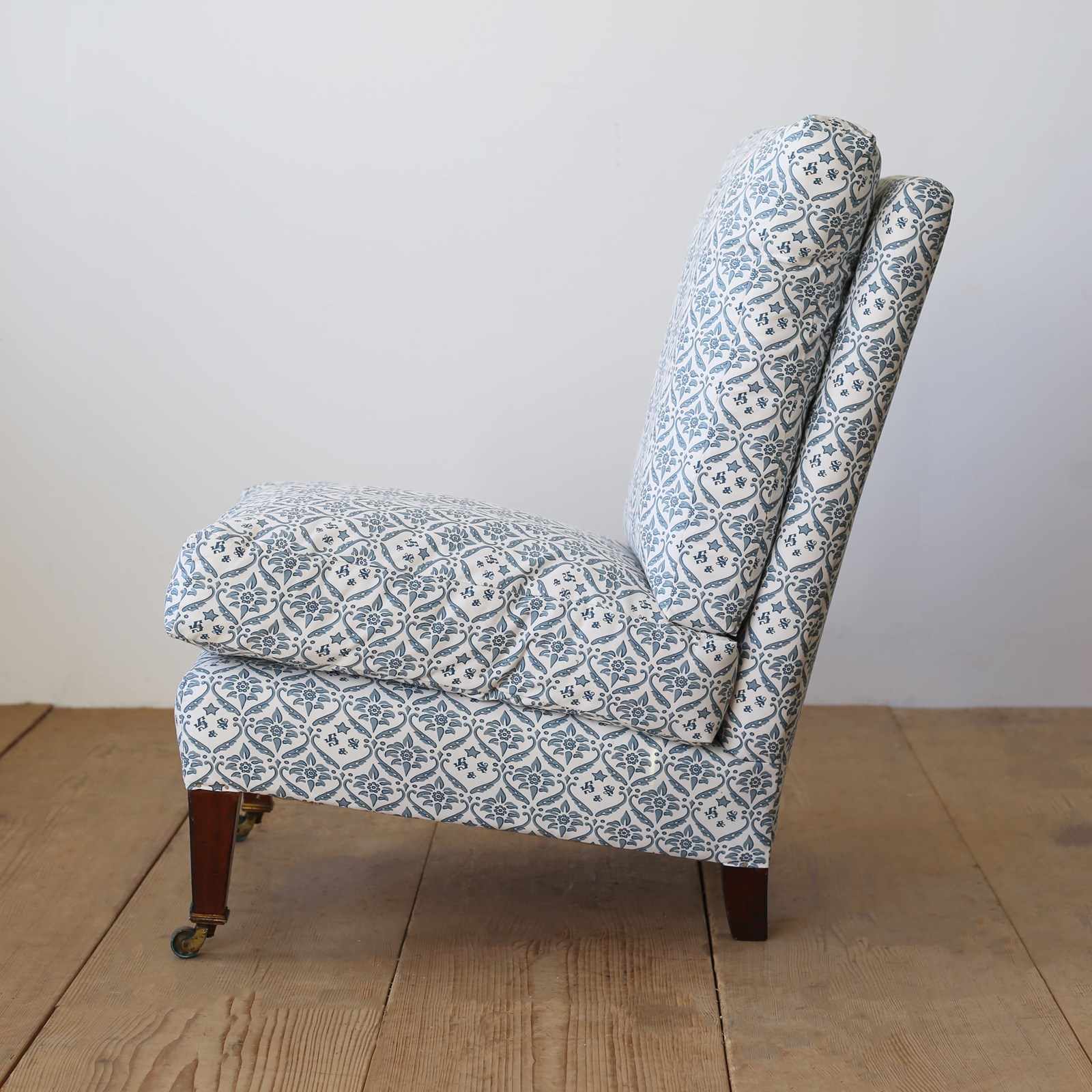 19th century Howard and Sons slipper chair. Back leg stamped Berners Street.