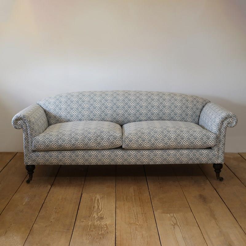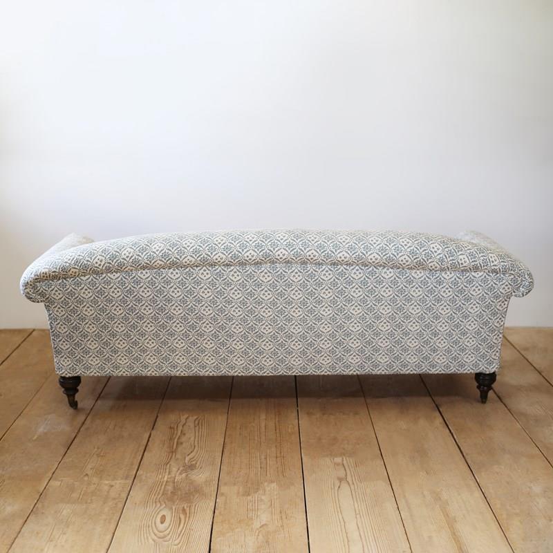 Early 19th century Howard and Sons sofa, fully restored from frame up. On turned legs and original castors.