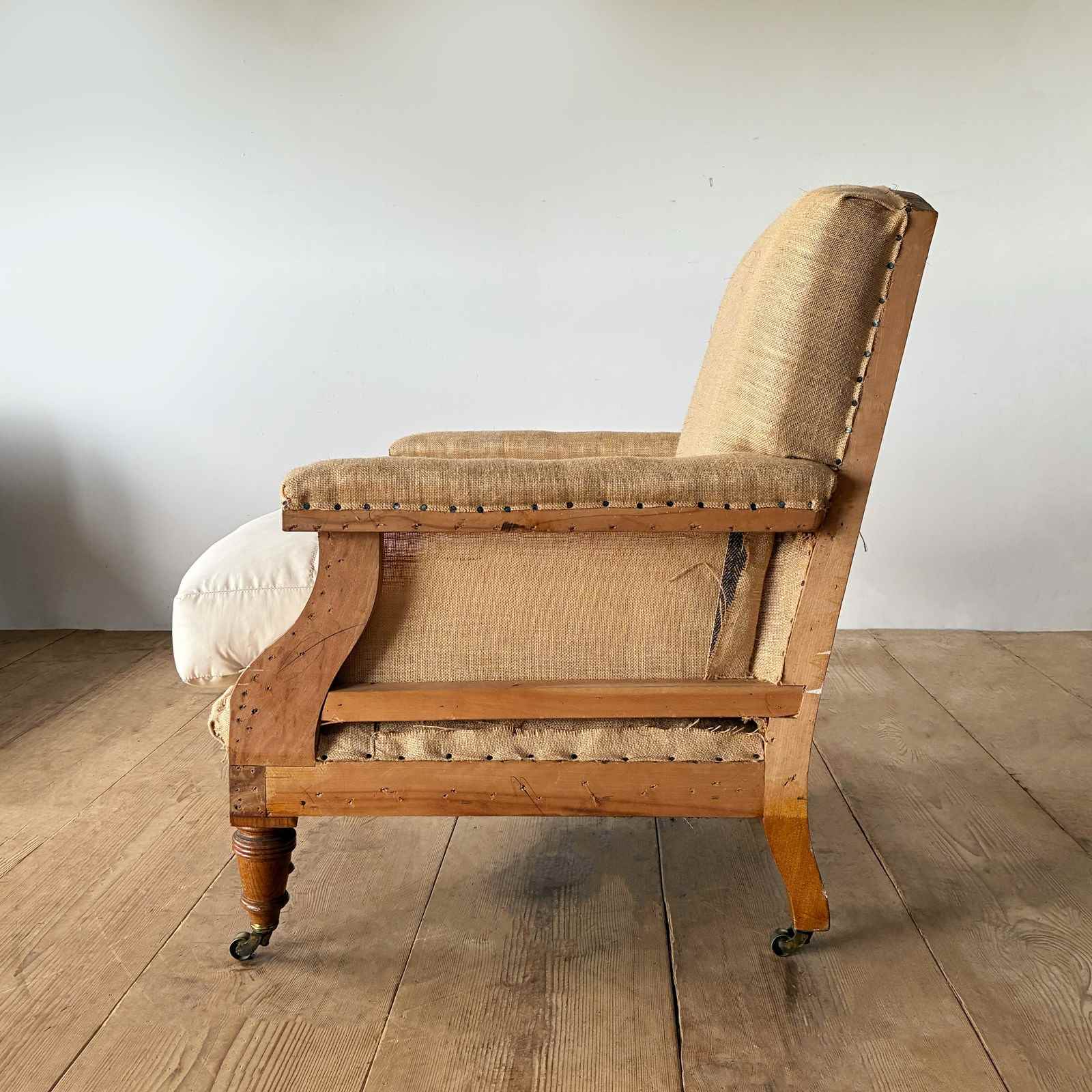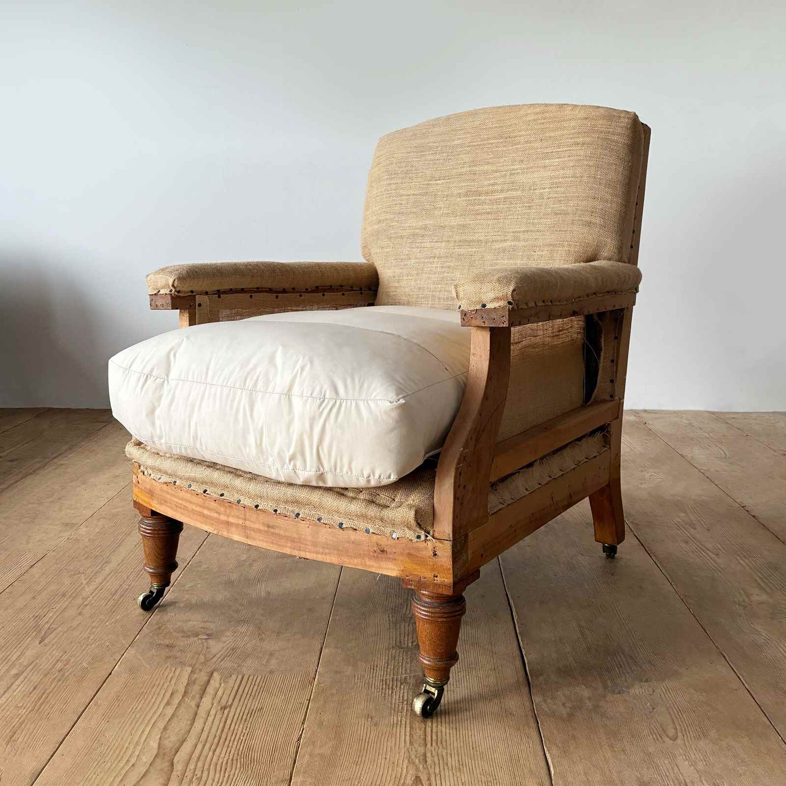 19th century Howard style armchair, fully restored and ready for top cover.