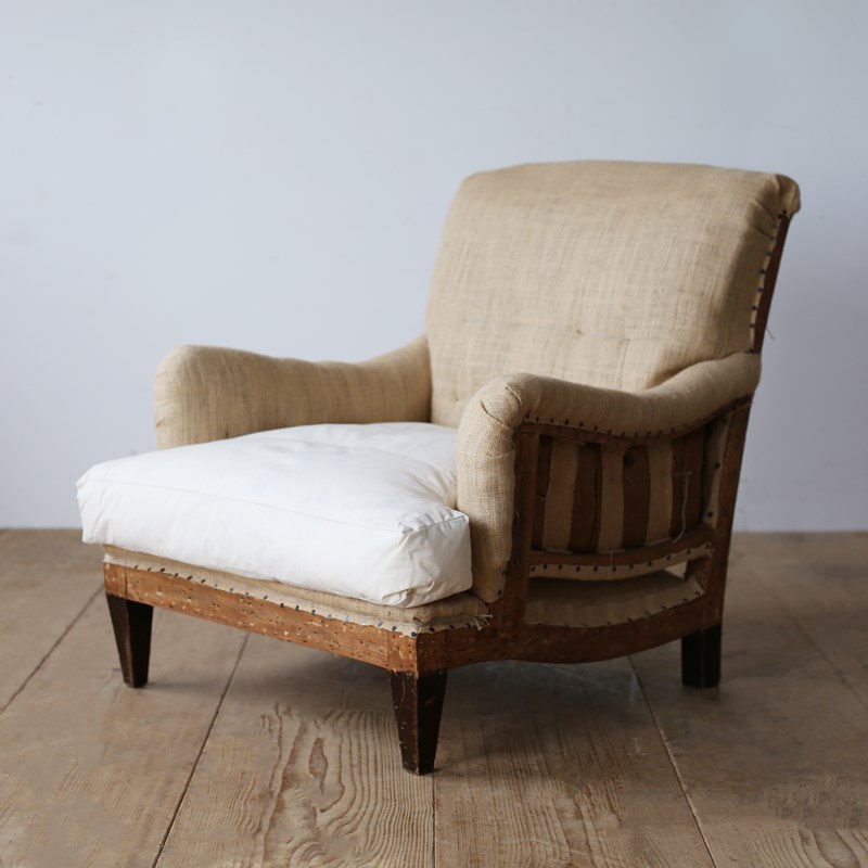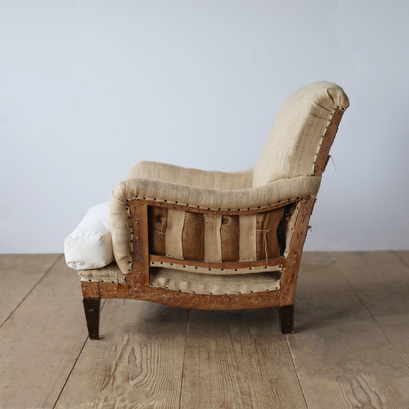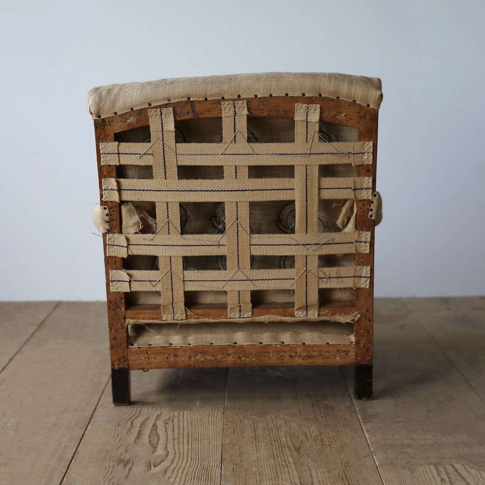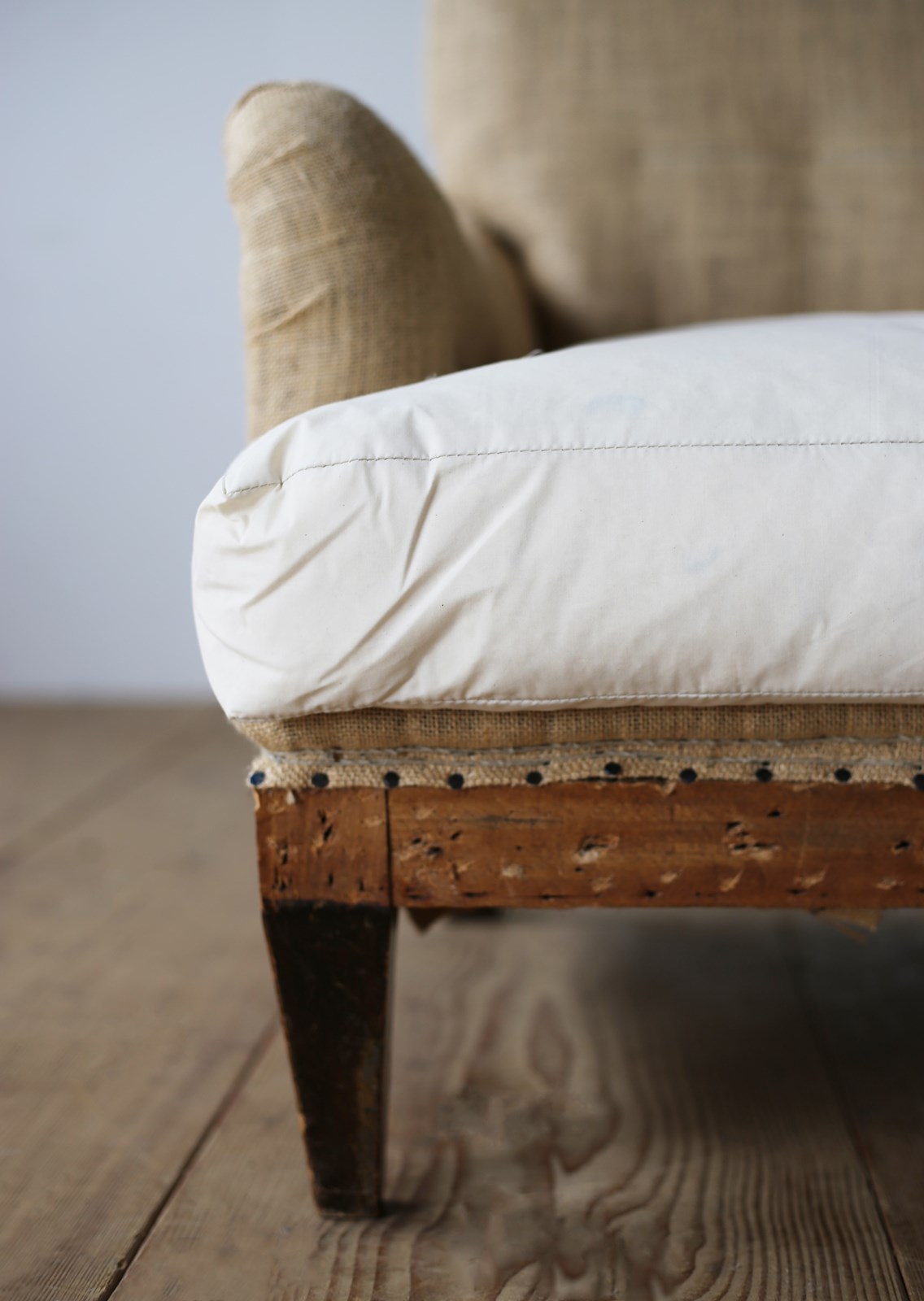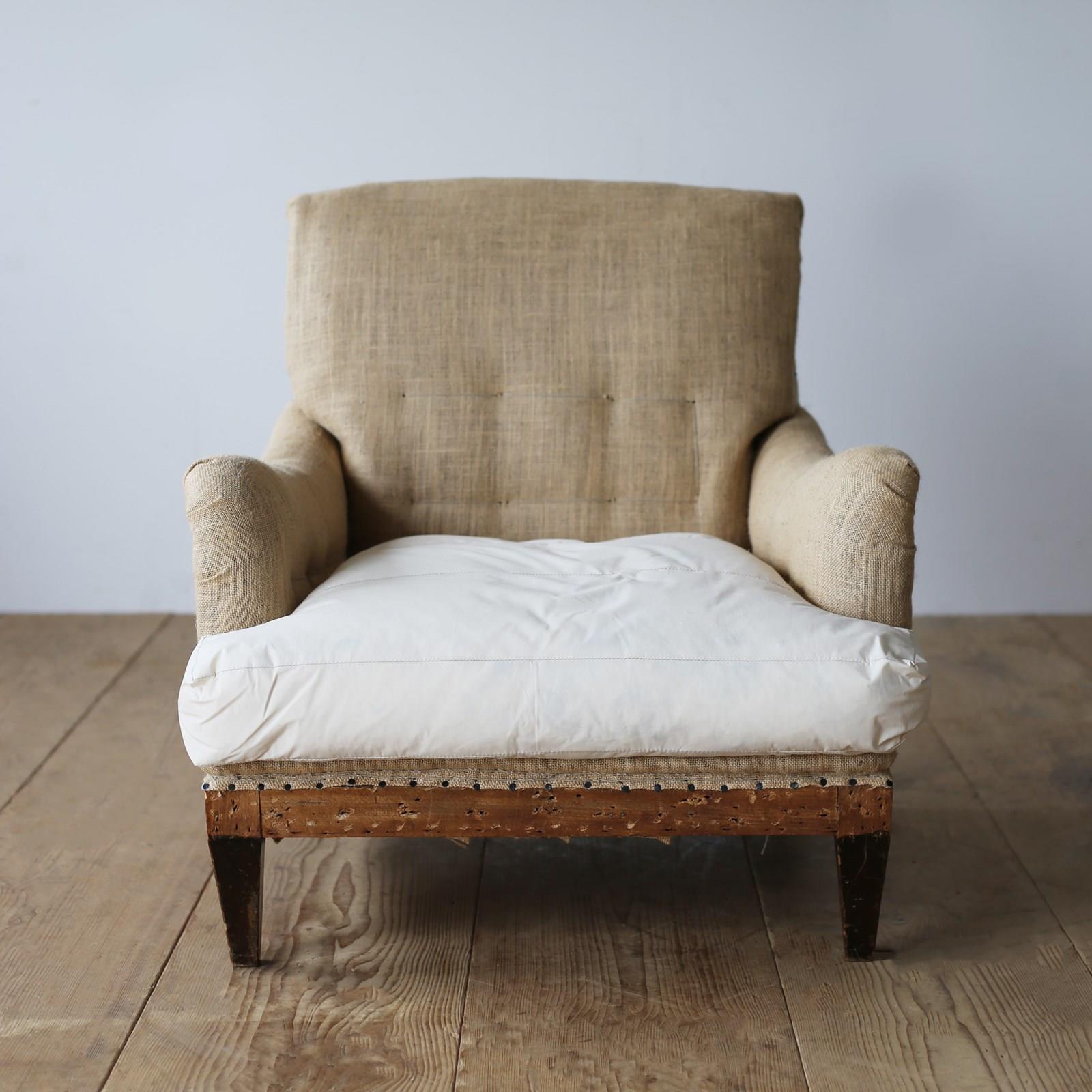 19th century Howard style armchair on tapered legs. Fully restored and ready for top cover.