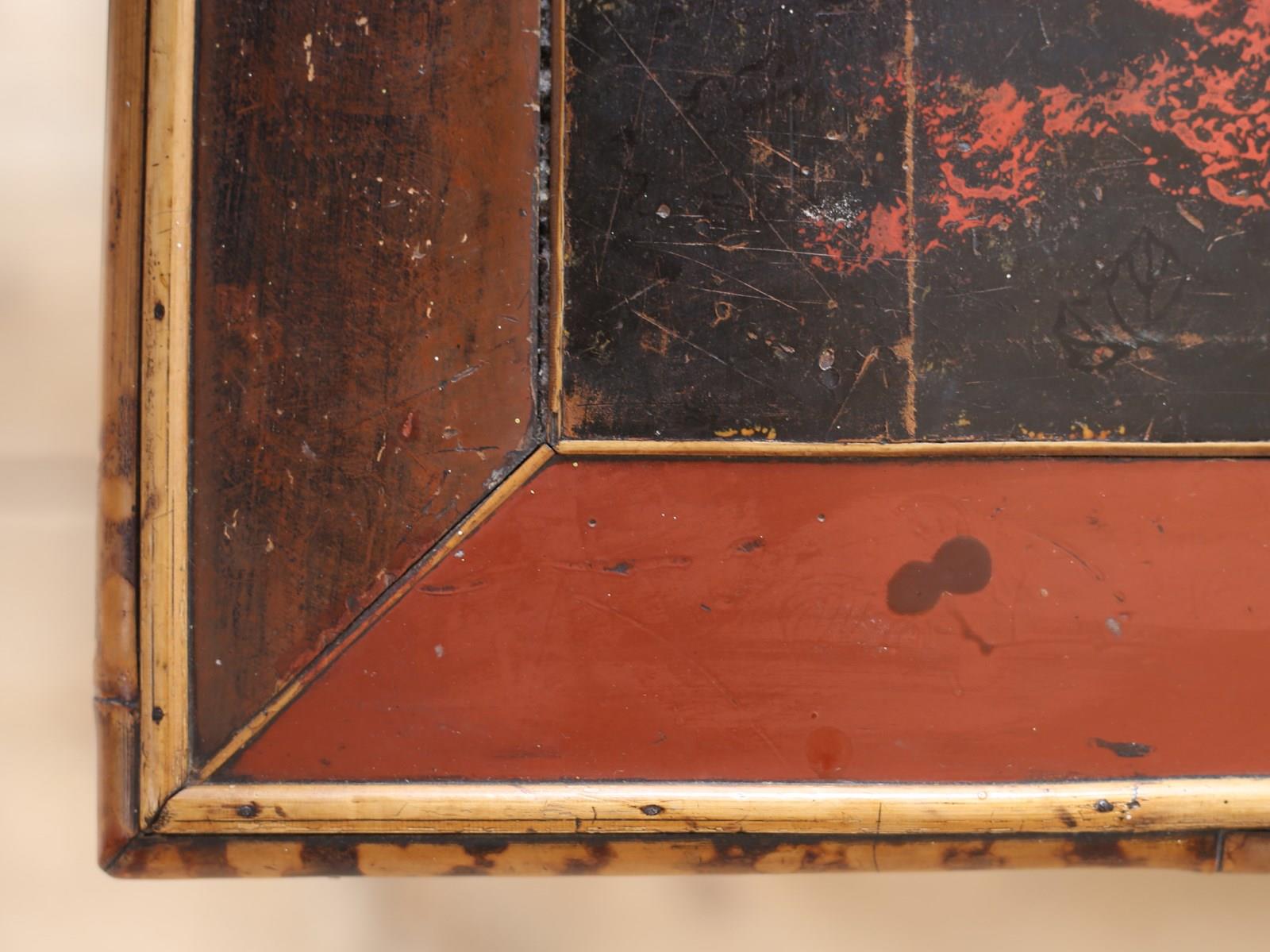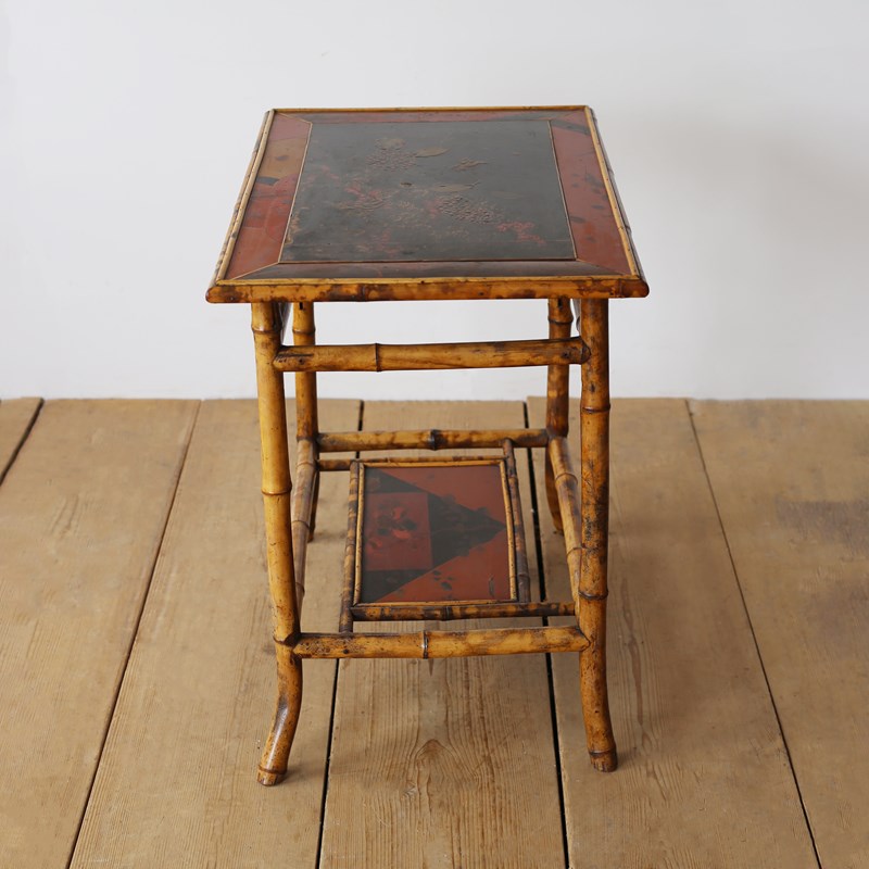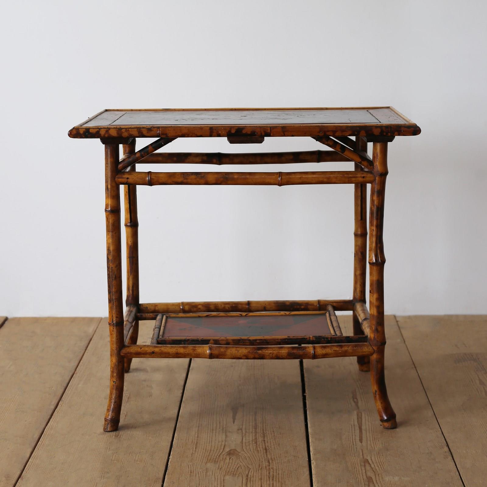 19th century lacquered top bamboo lamp table.