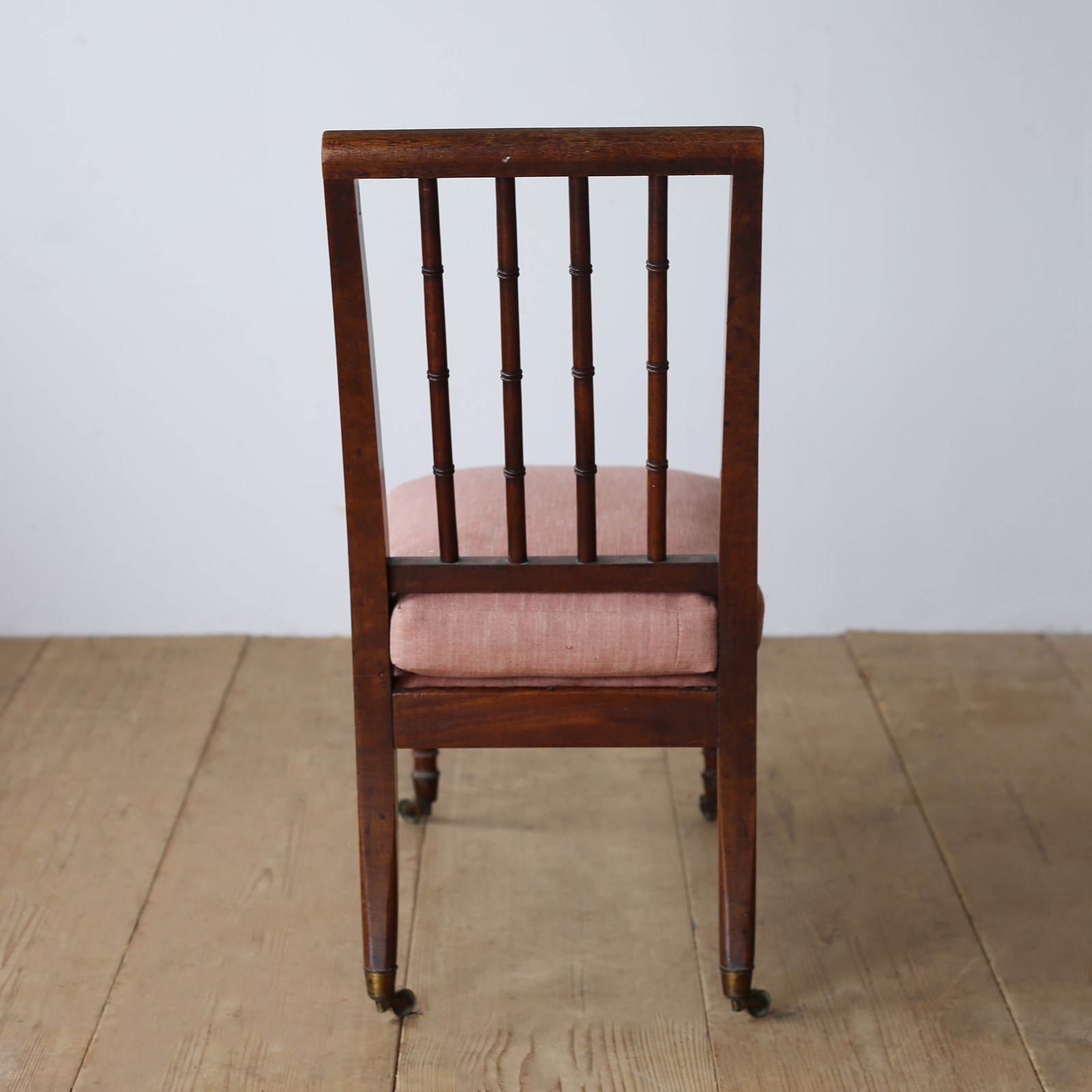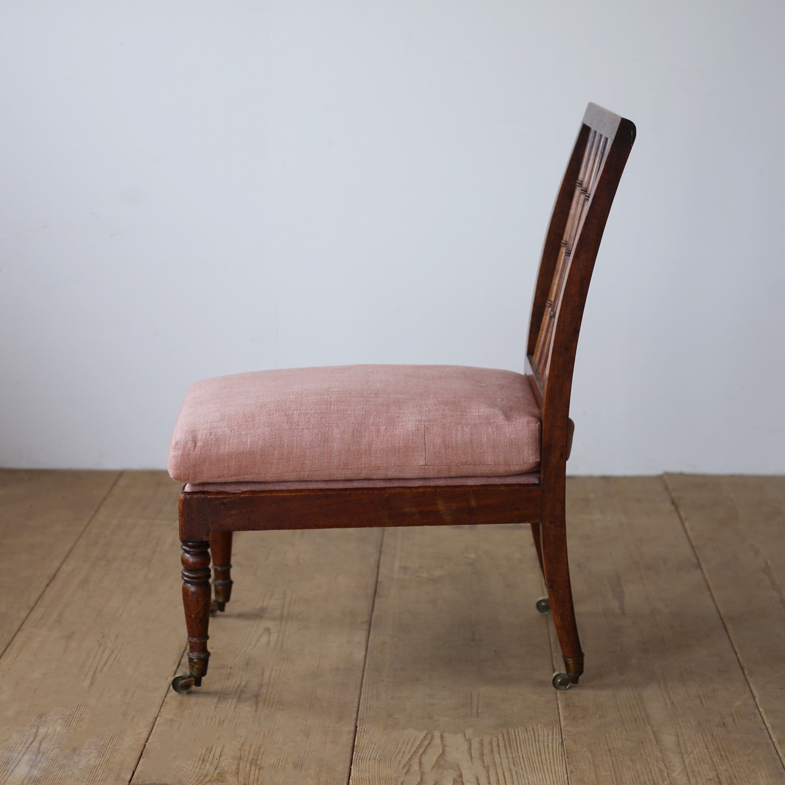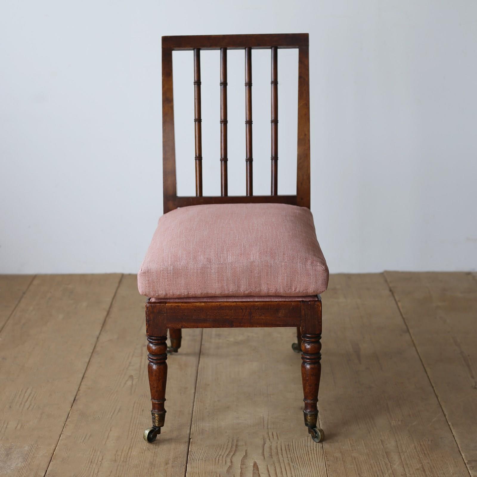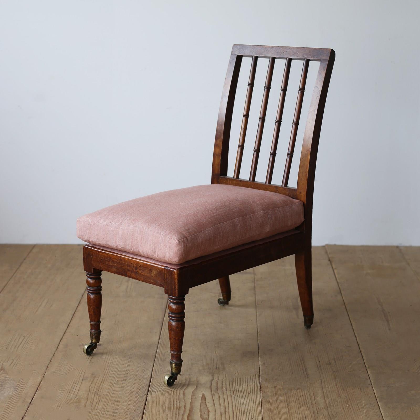 Early 19th century slipper chair on turned back supports and original castors.