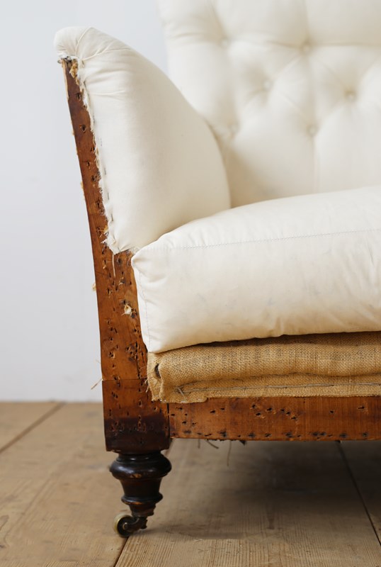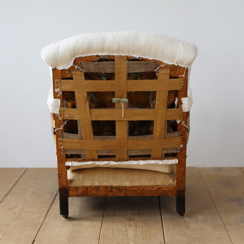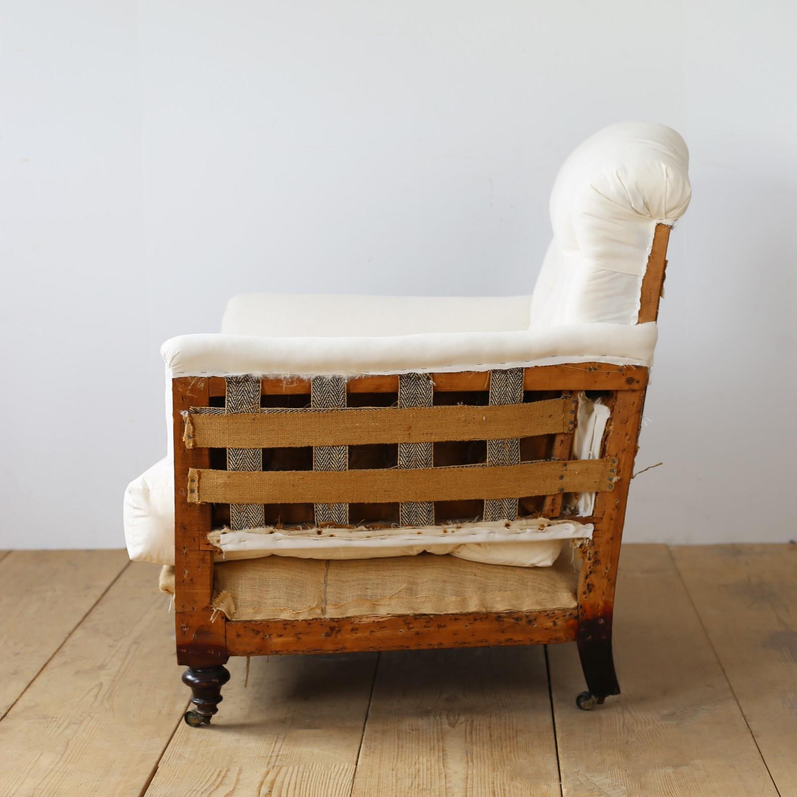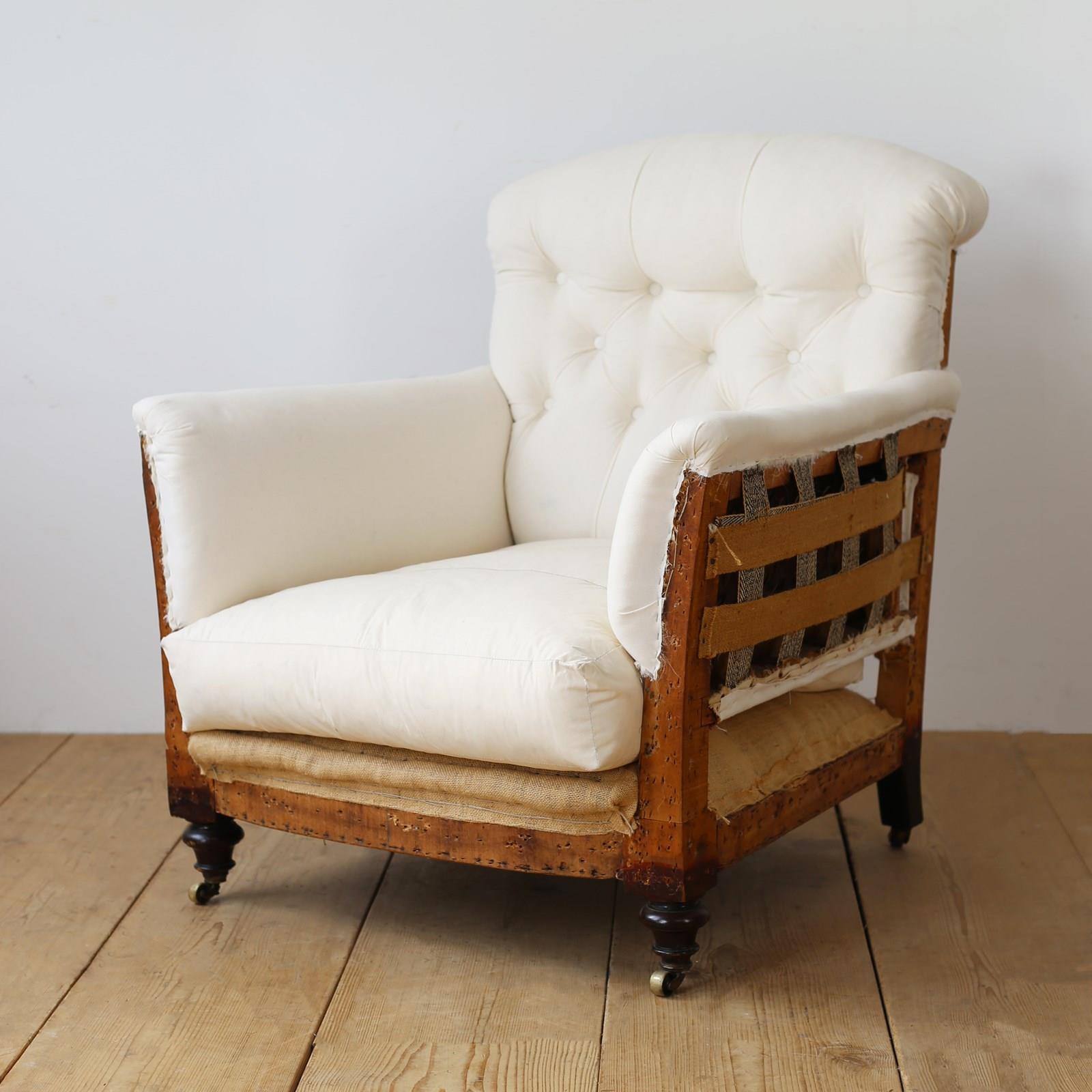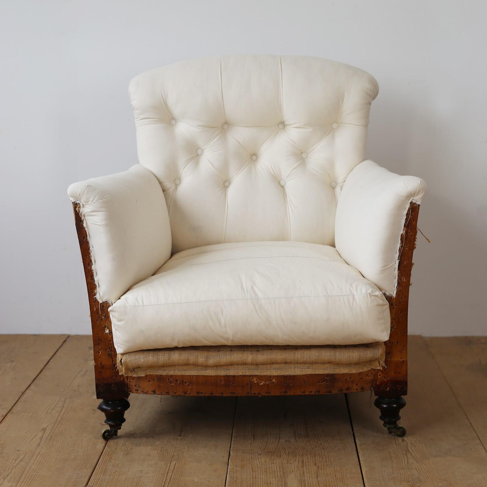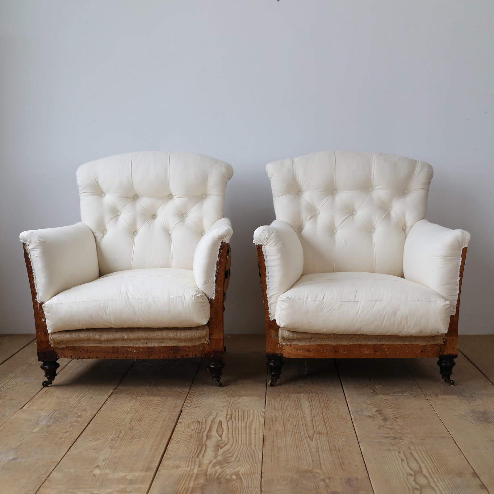Pair of 19th century button back armchairs, fully restored from the frame up and ready for top cover.