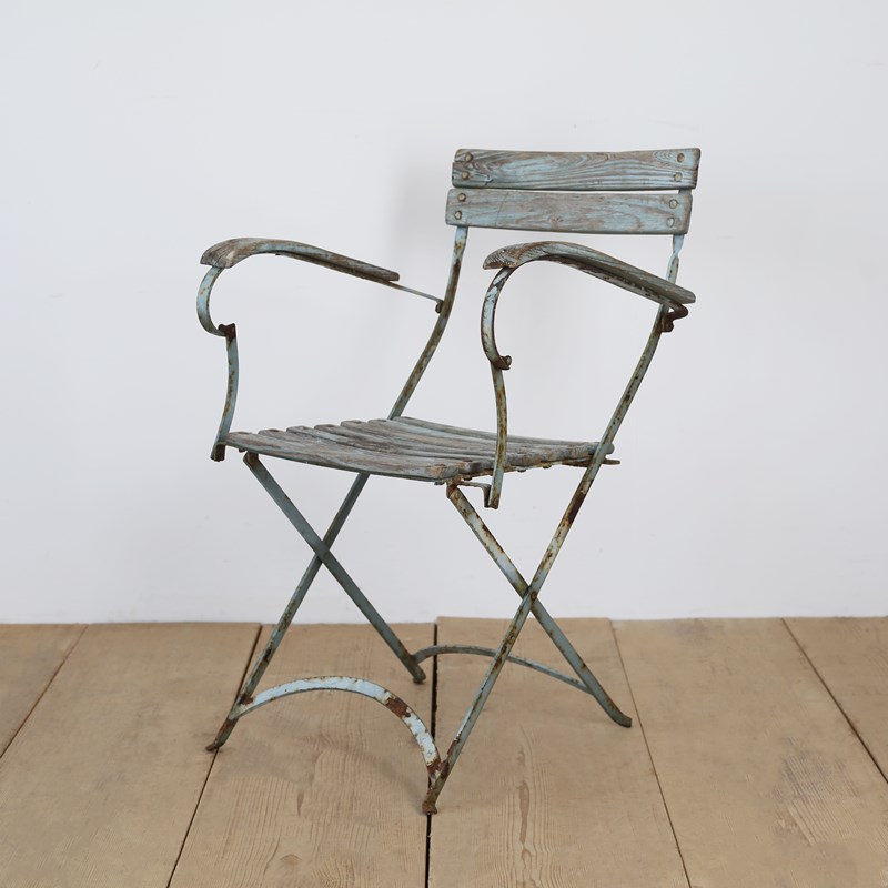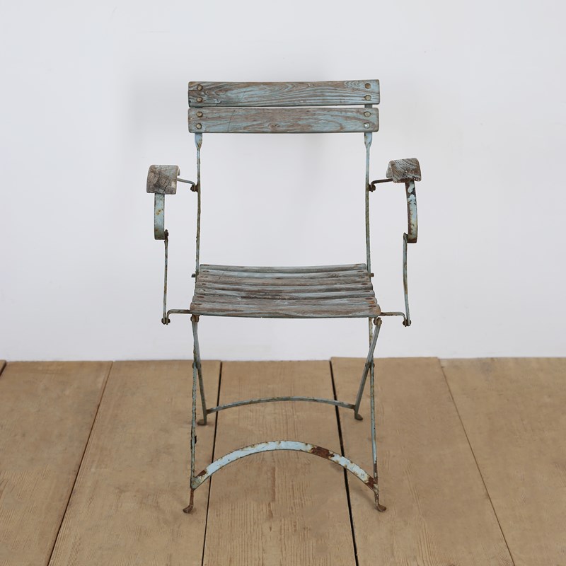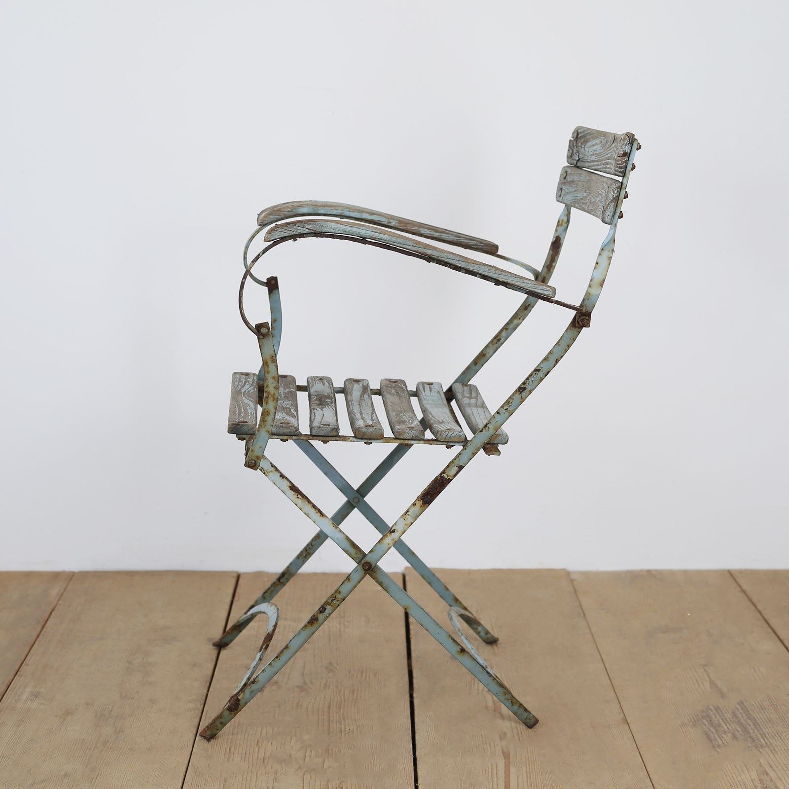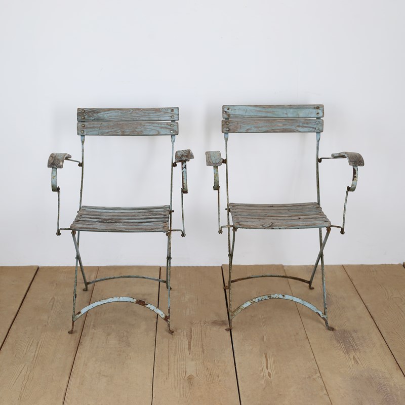 Pair of early 20th century garden chairs in a lovely distressed finish.