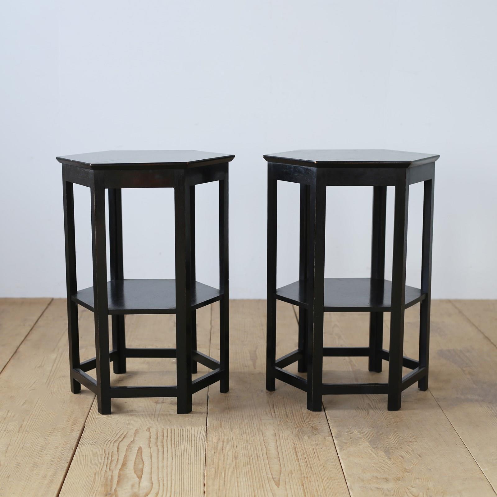 Pair of Arts and Crafts hexagonal tables, with makers mark.