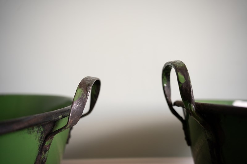 A Near Pair Of Large Green Galvanised Garden Planters
