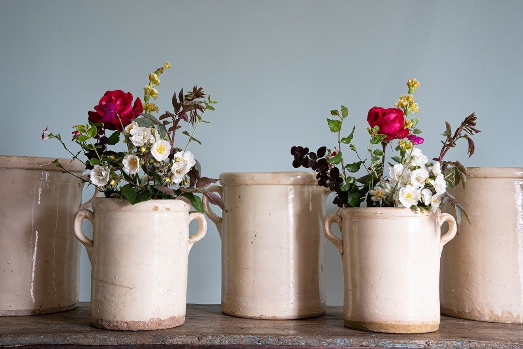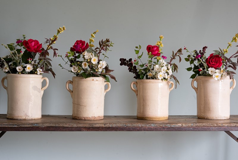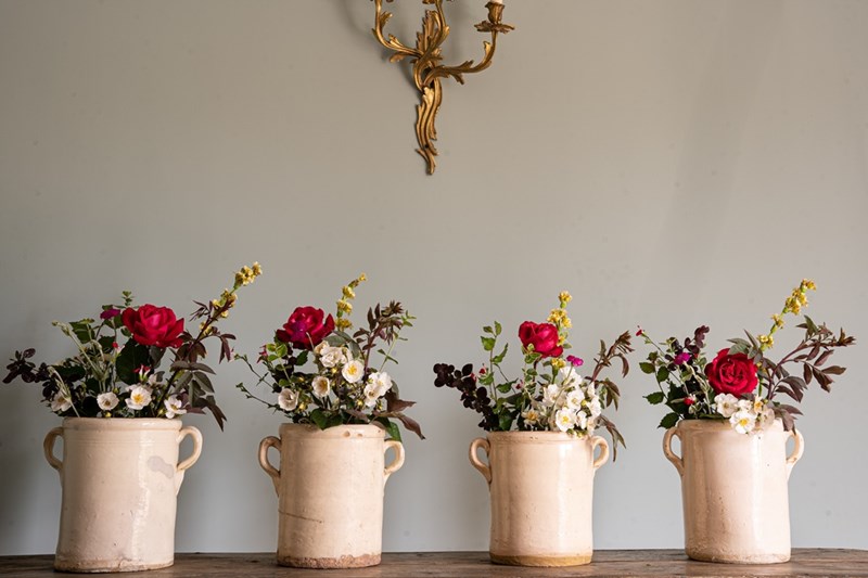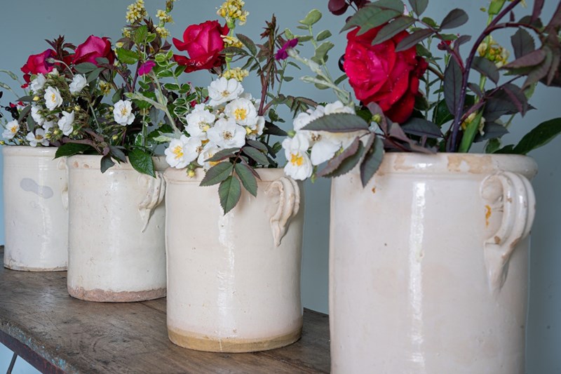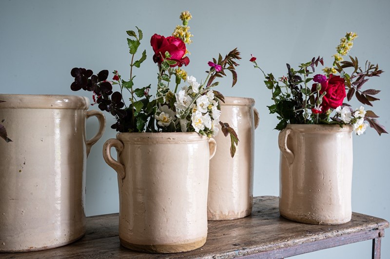 Beautiful neutral coloured antique Italian glazed pots or vases, for use both indoors and outdoors. Handmade from the Puglia region of Italy in the late 1800’s, these antique ceramic pots or vases are also known as anchovy pots. Traditionally used to store and preserve foods and oils.