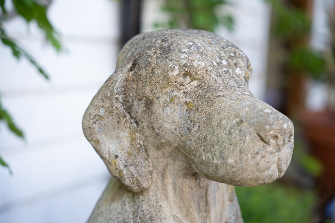 I’d like to call this decorative garden dog statue Brutus as he really is a very stocky, handsome looking labrador! This garden statue has been nicely weathered and is looking for its forever home. Extremely heavy decorative piece for the garden.