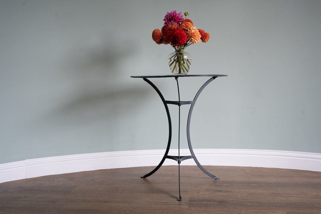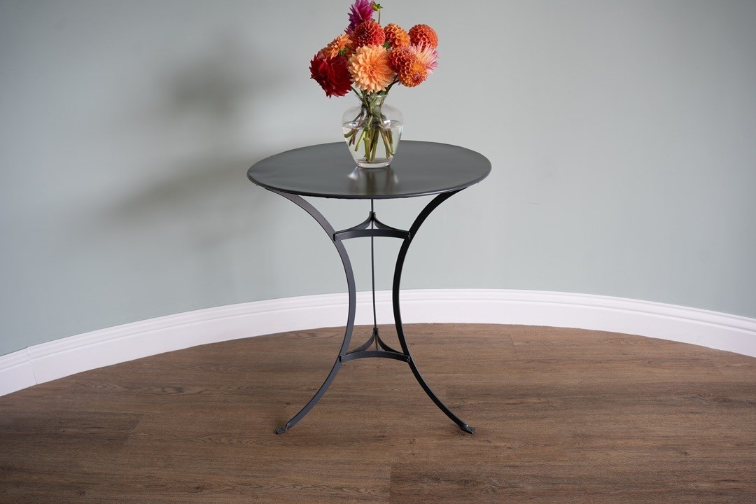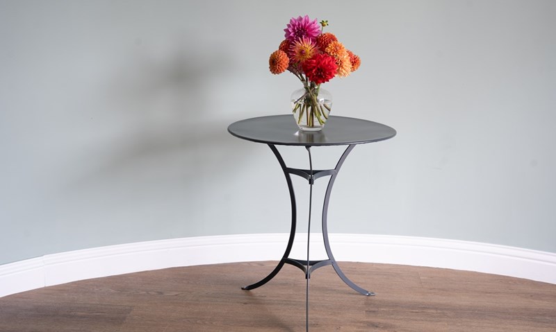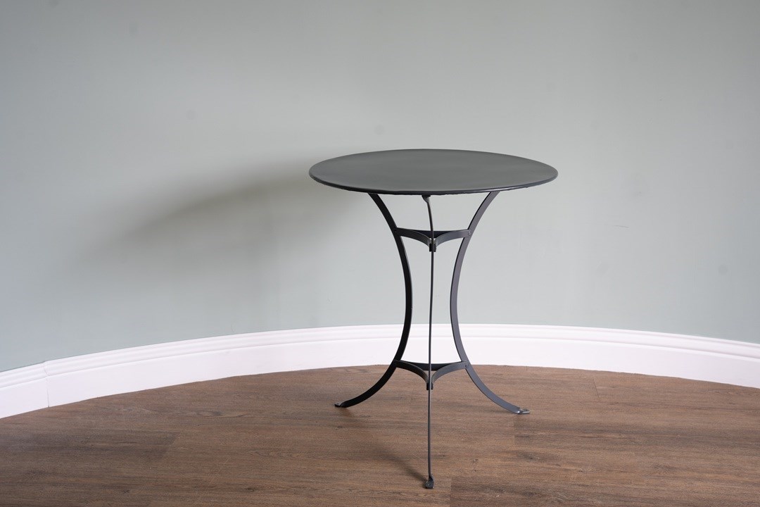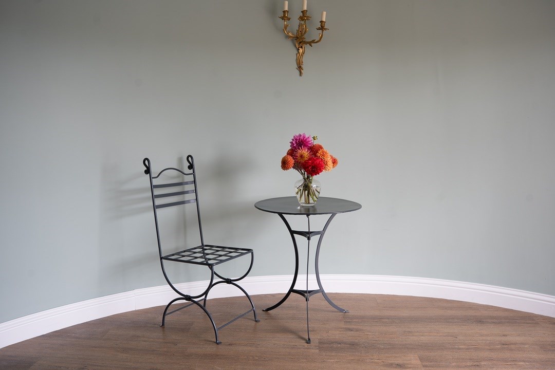 Attractive, French garden dining table ideal for two persons in that small spot for the garden, patio or balcony. We have restored this vintage bistro table in a dark grey colour to make it usable for everyday outdoor living. Excellent condition.