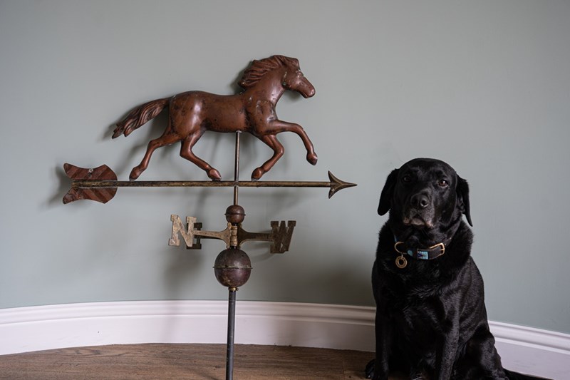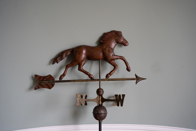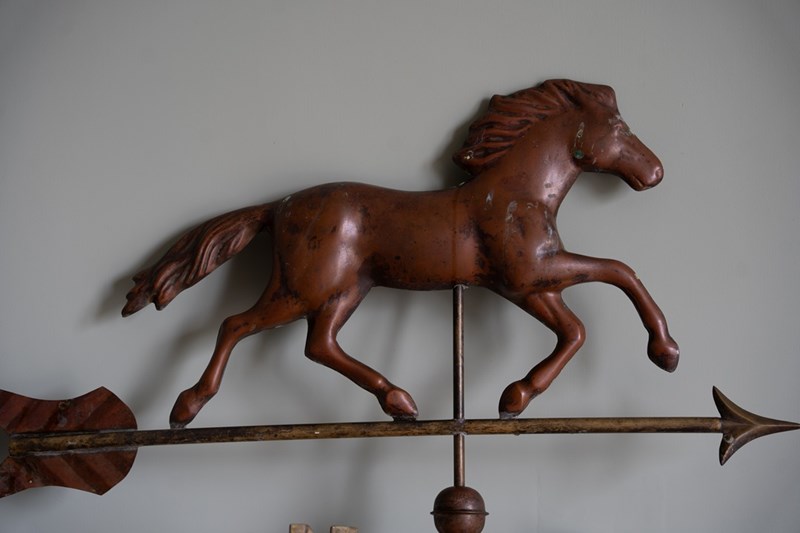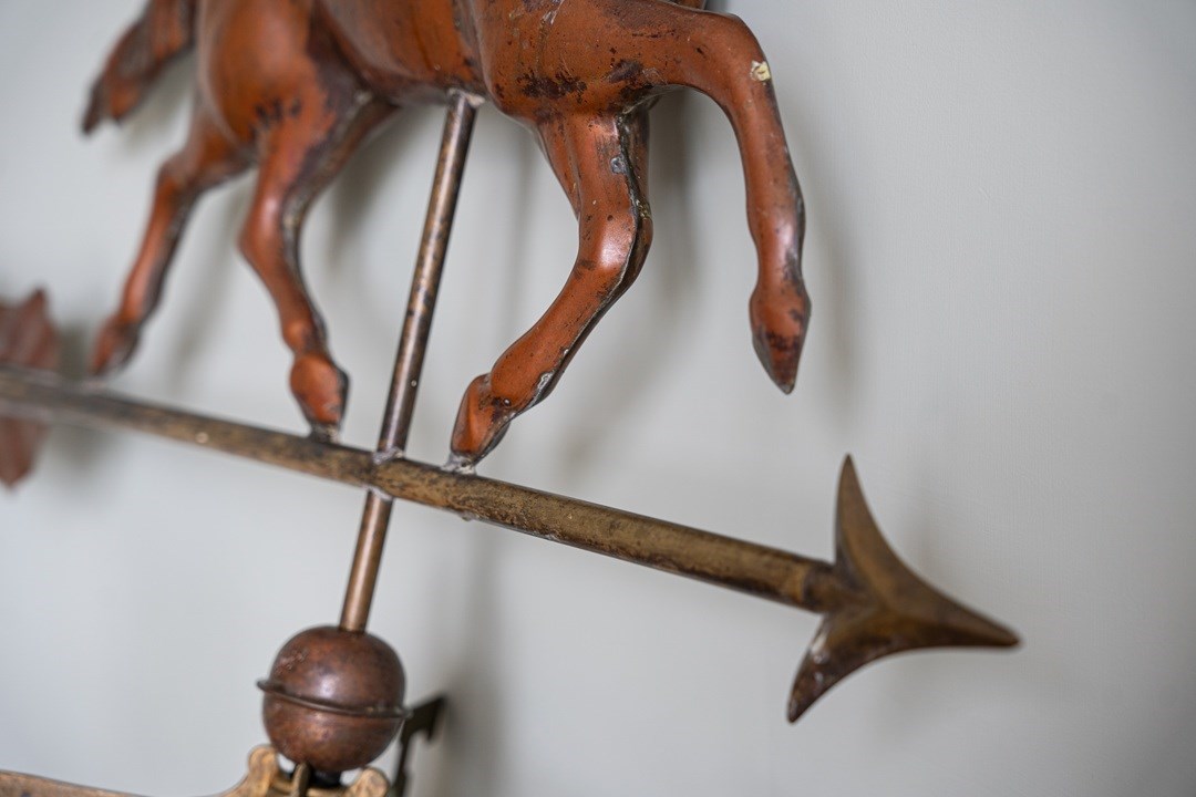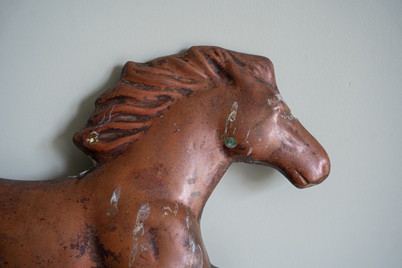 Copper weathervane for the house, outhouse or barn. This comes complete with all fittings. Add a bit of equine character to your property! Not a particularly old or heavy piece.