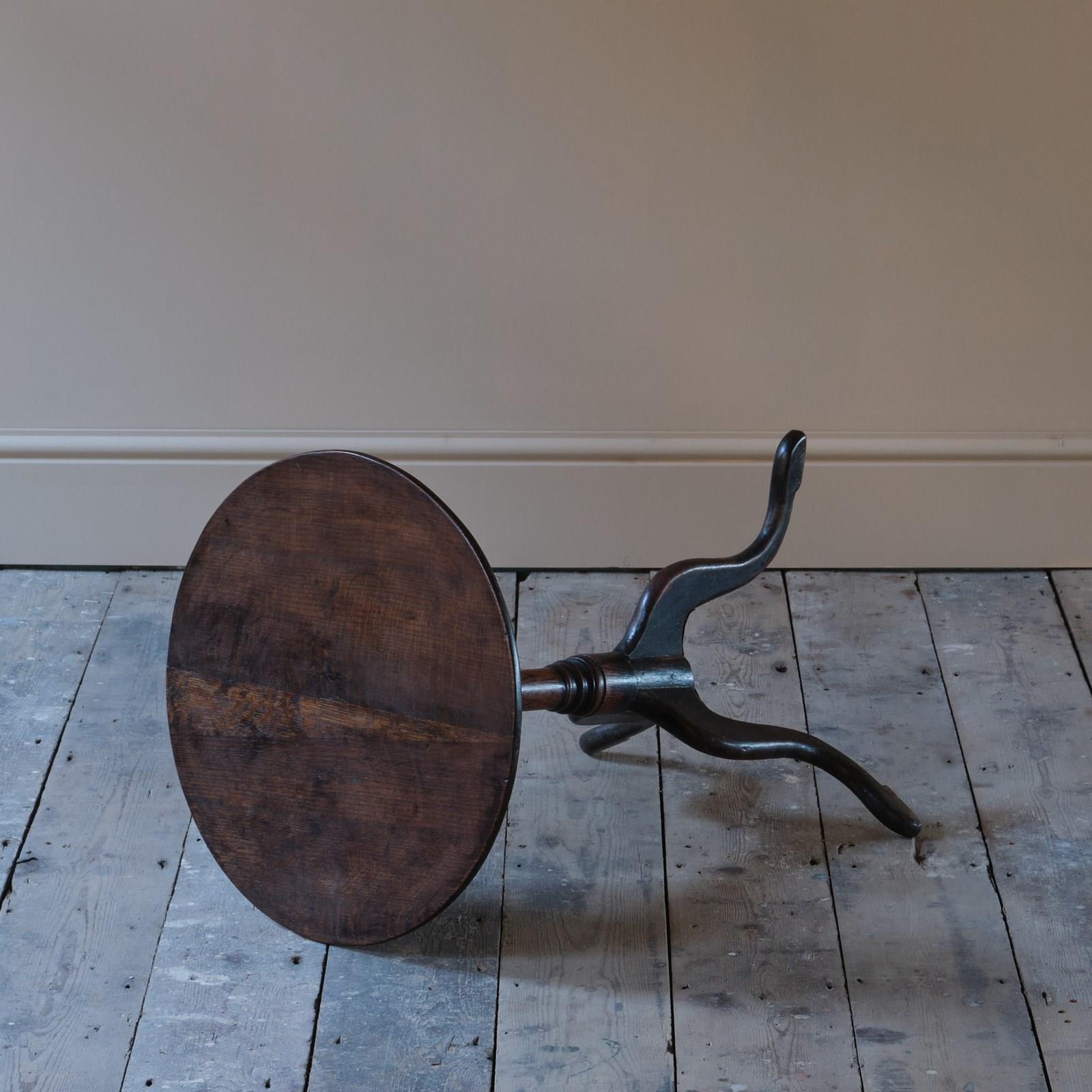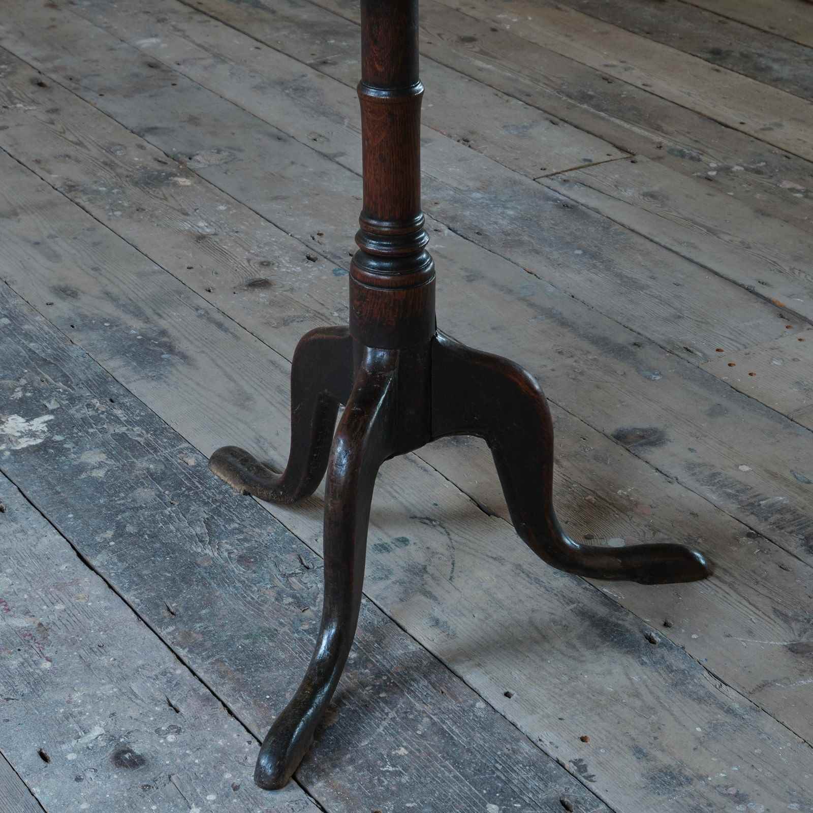 An 18th century vernacular oak tripod table. The whole with a beautifully aged time worn patina.