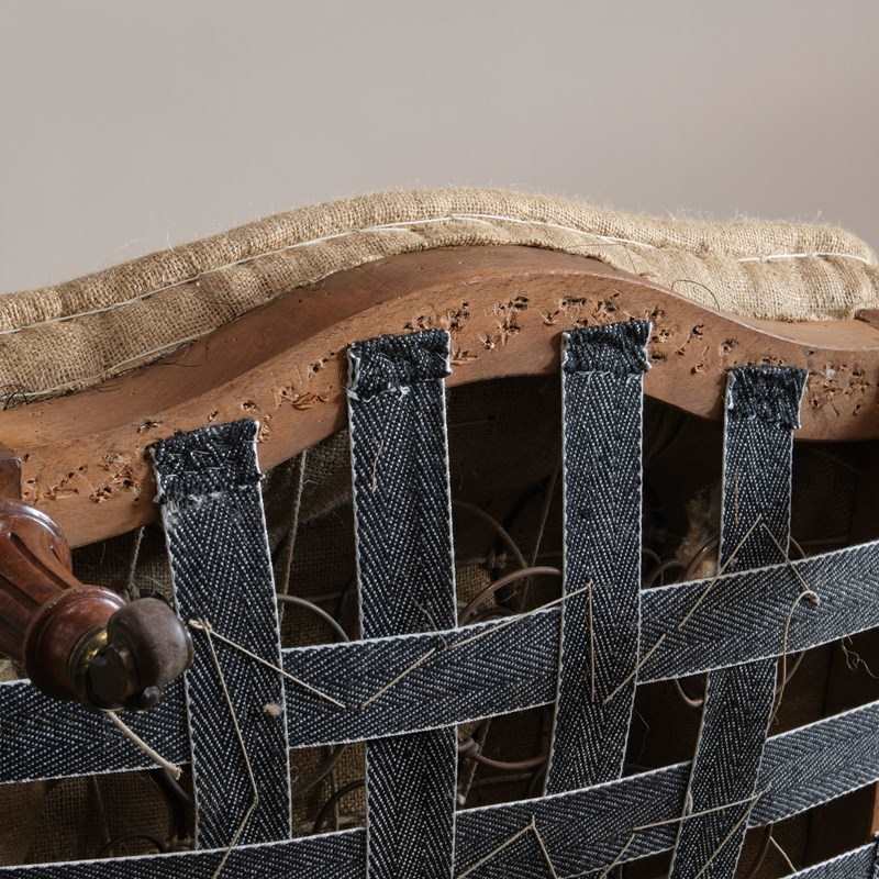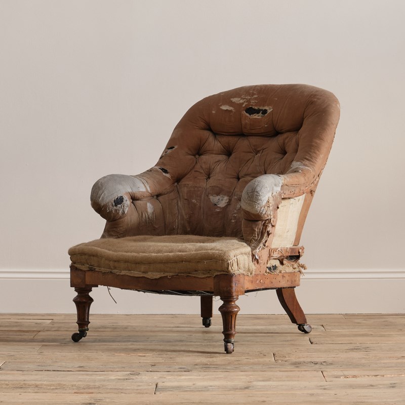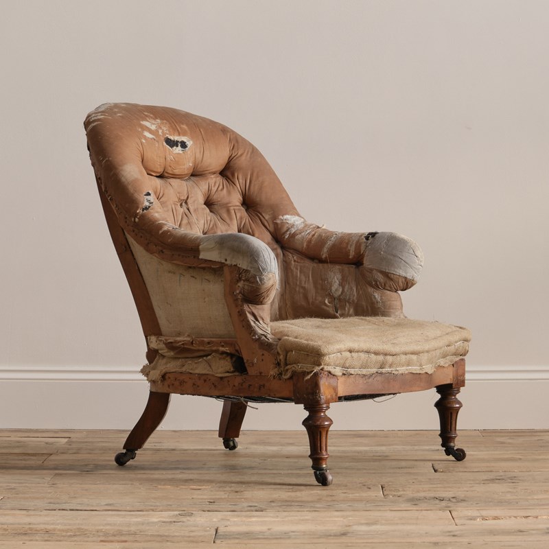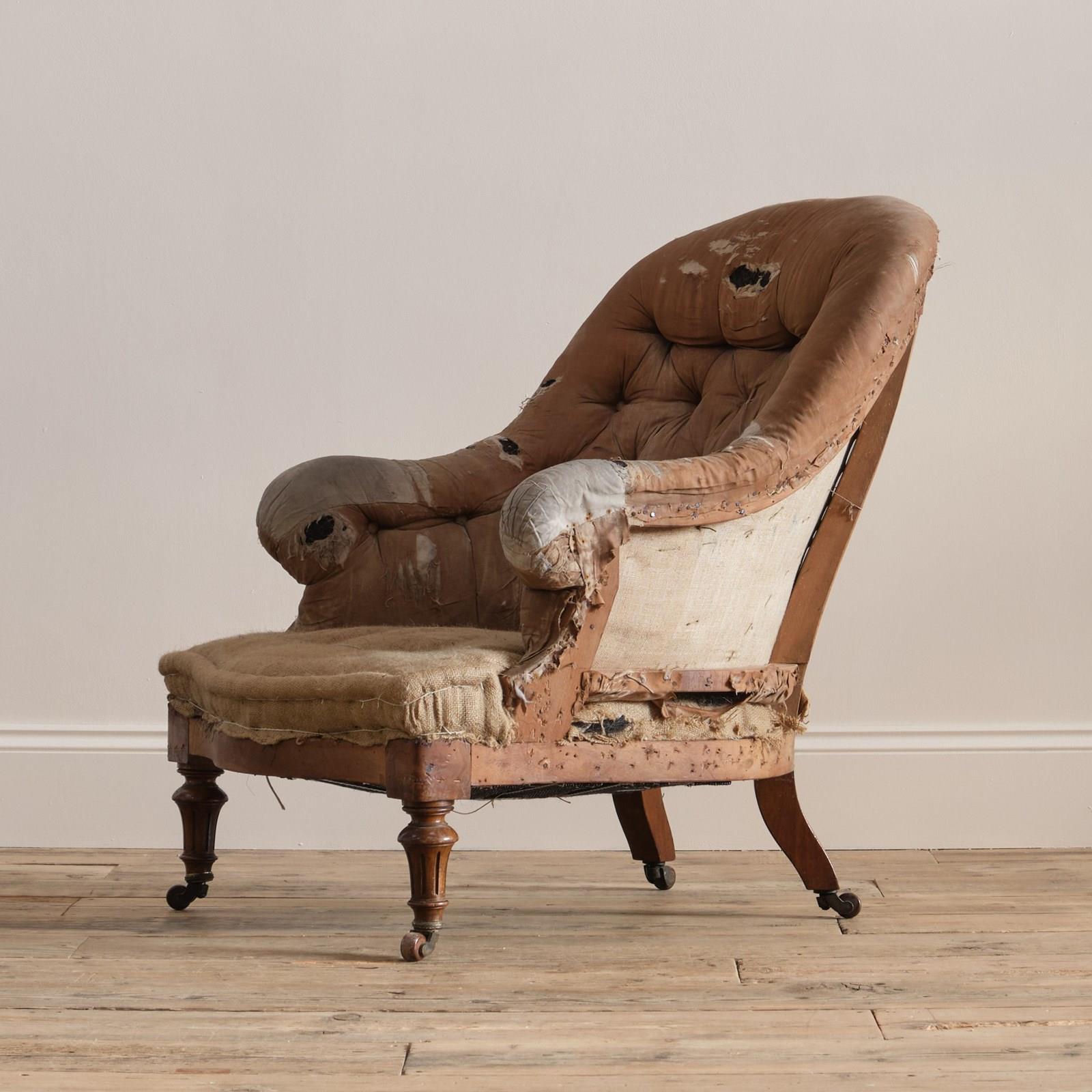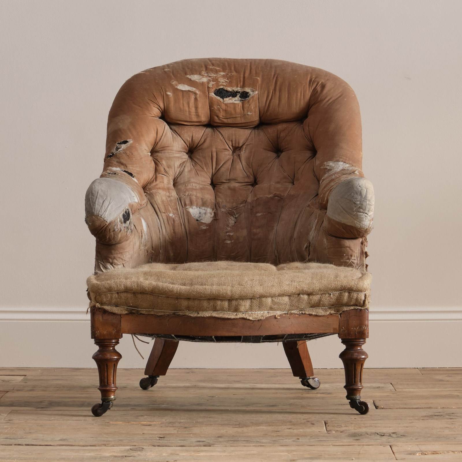 Structurally in good solid order and retaining its original buttoned back upholstery.