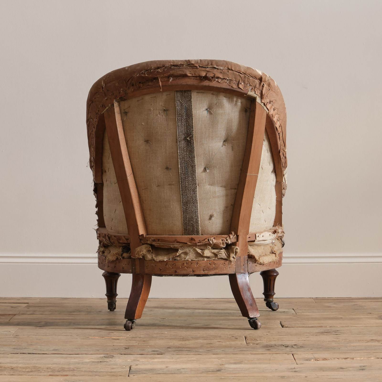 A shapely 19th century country house tub back armchair. Raised on walnut legs with the original casters. Probably by Gillows c1870