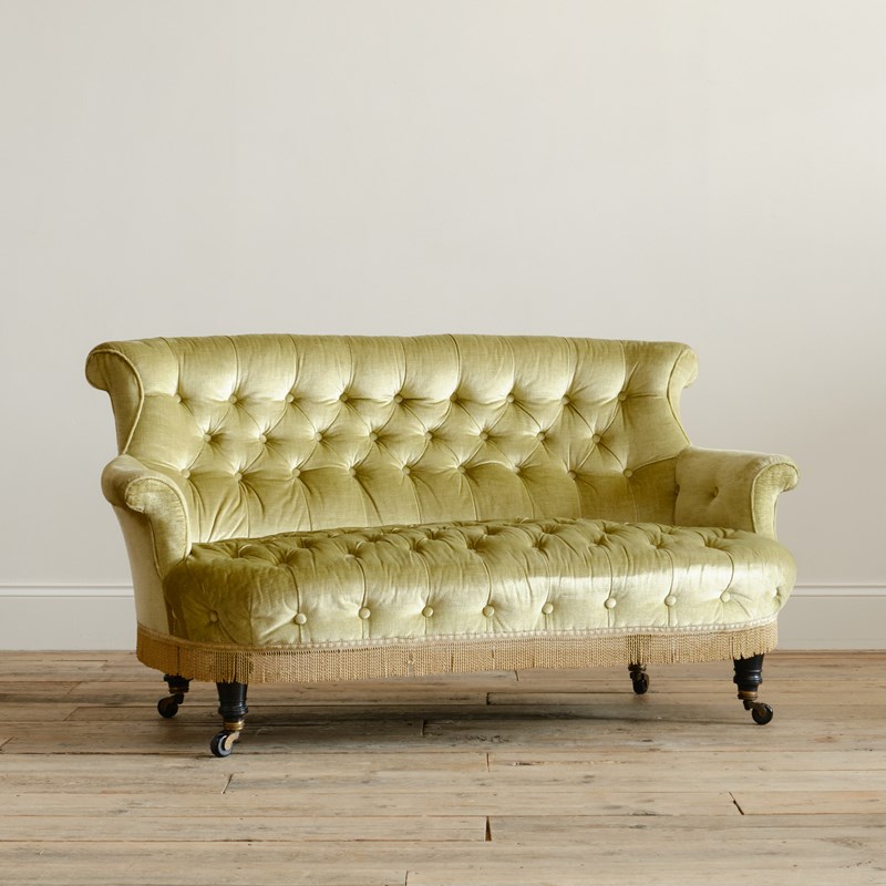 19Th Century Country House Sofa In Sage Velvet
