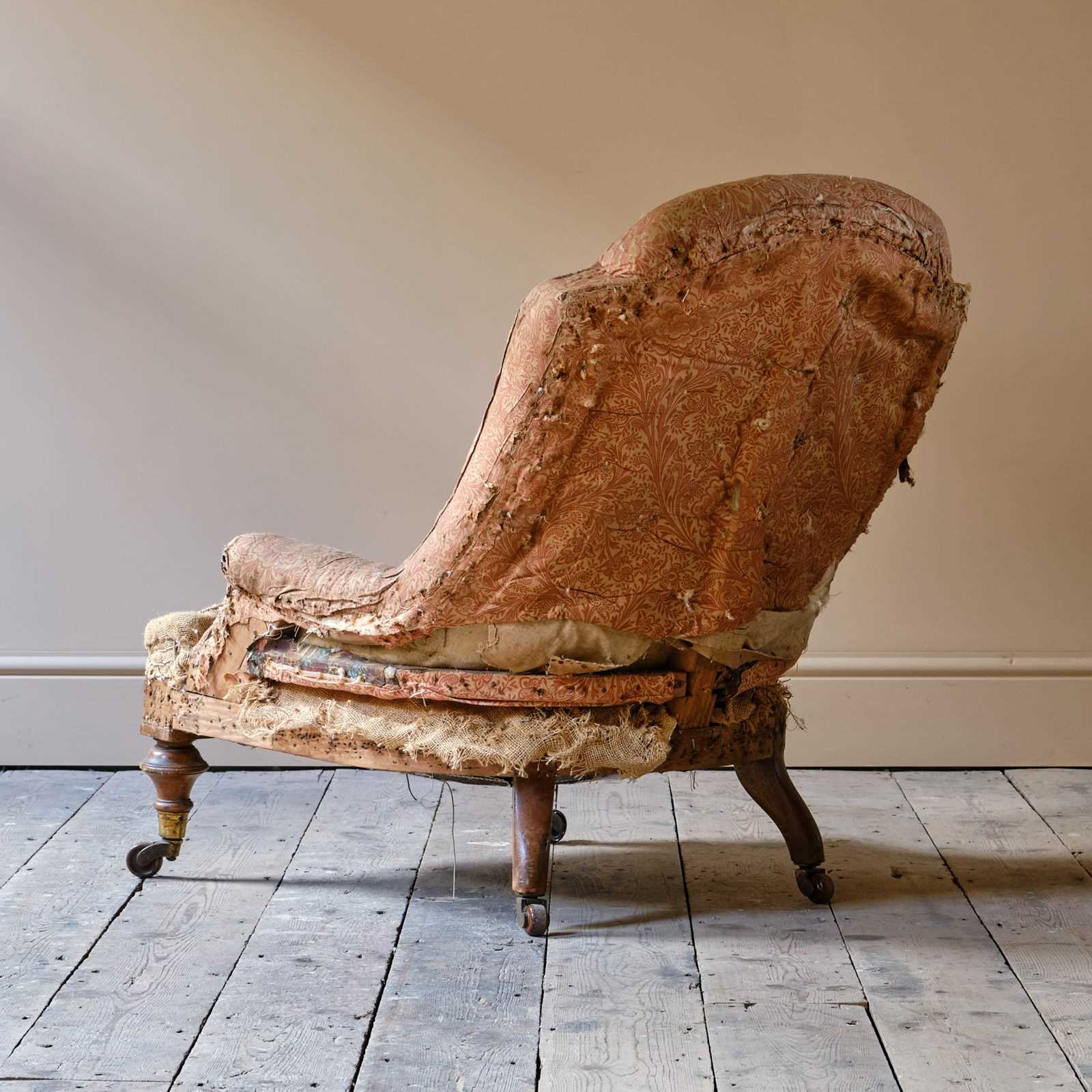 Overall in good condition. There are a few loose joints on the back that will be restored during upholstery.