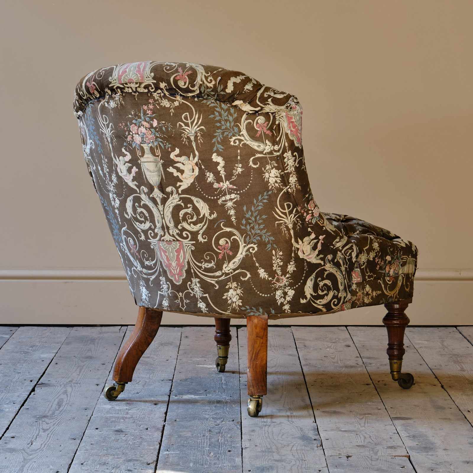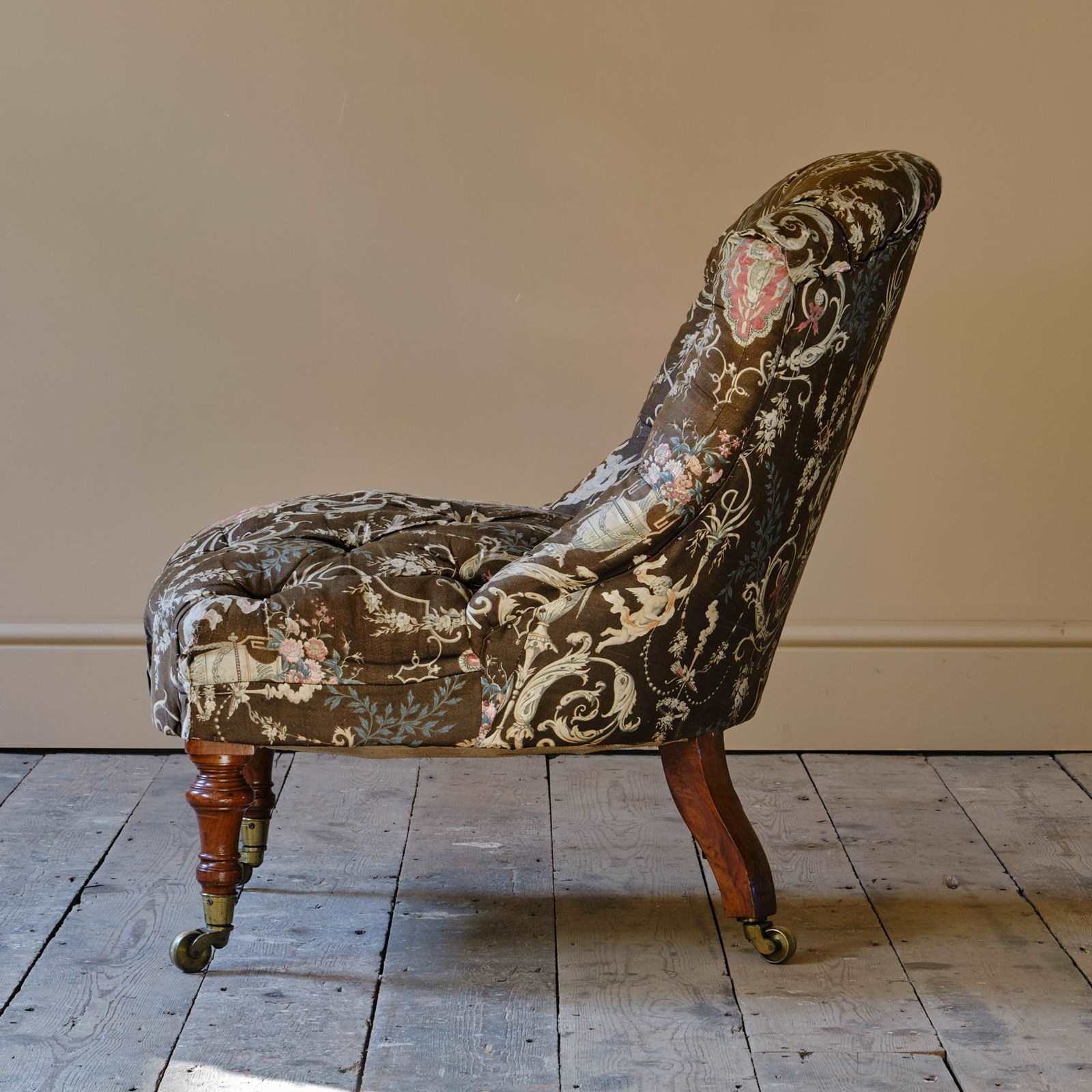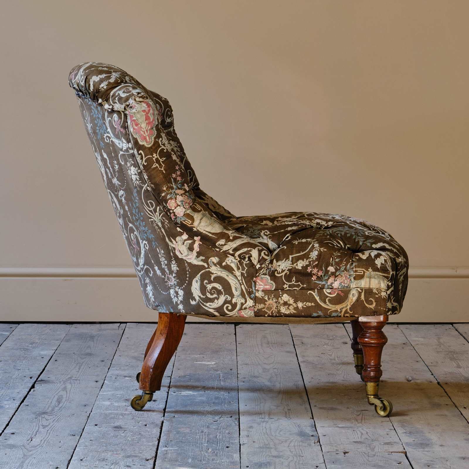 19Th Century Gillows Slipper Chair In Original Fabric.