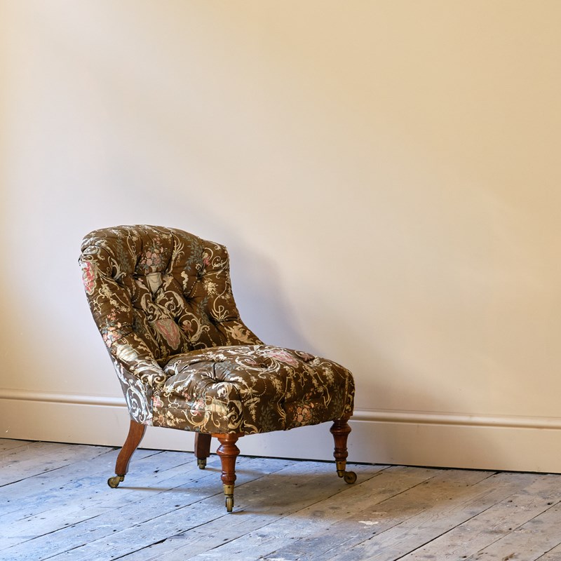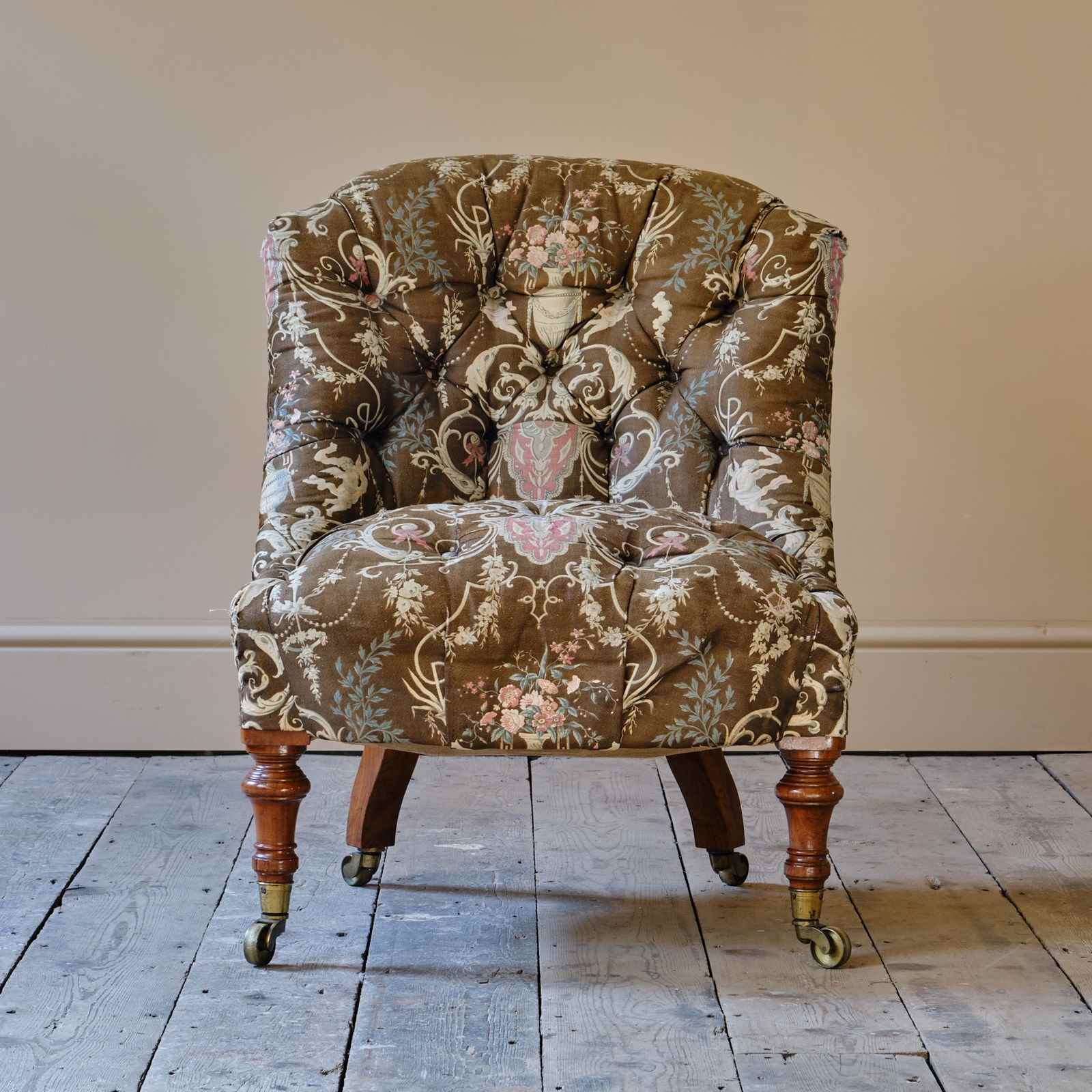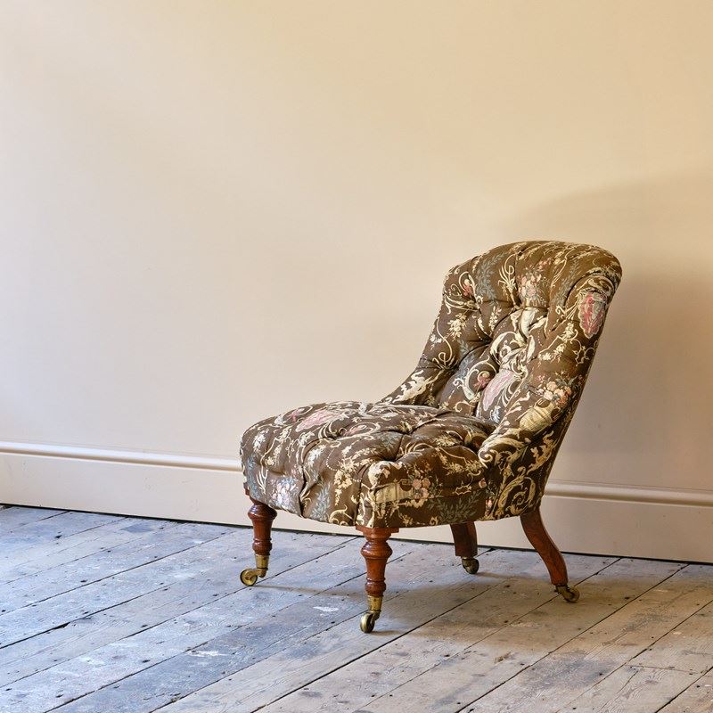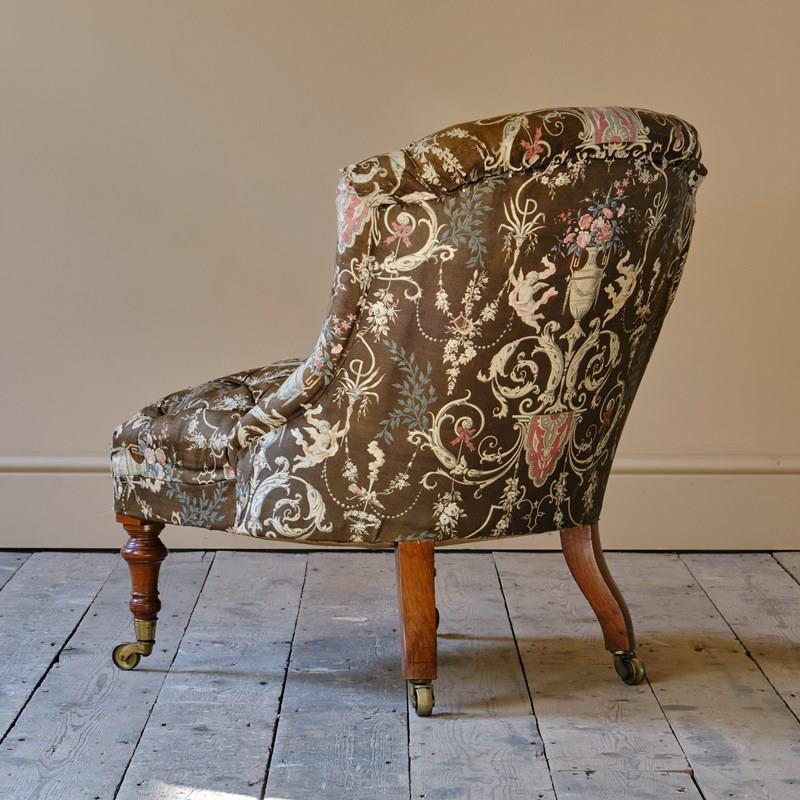 19Th Century Gillows Slipper Chair In Original Fabric.