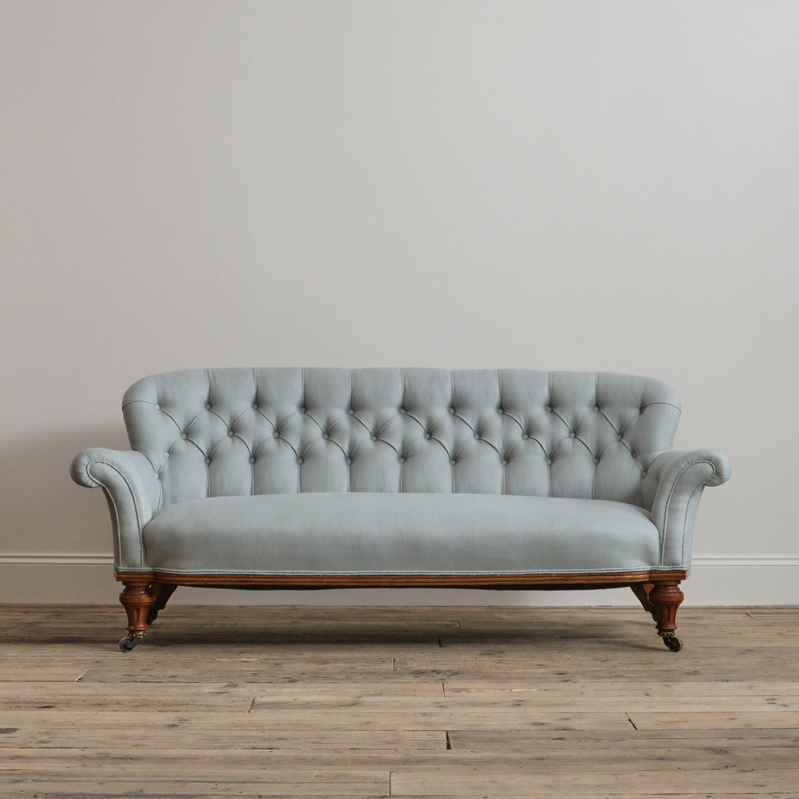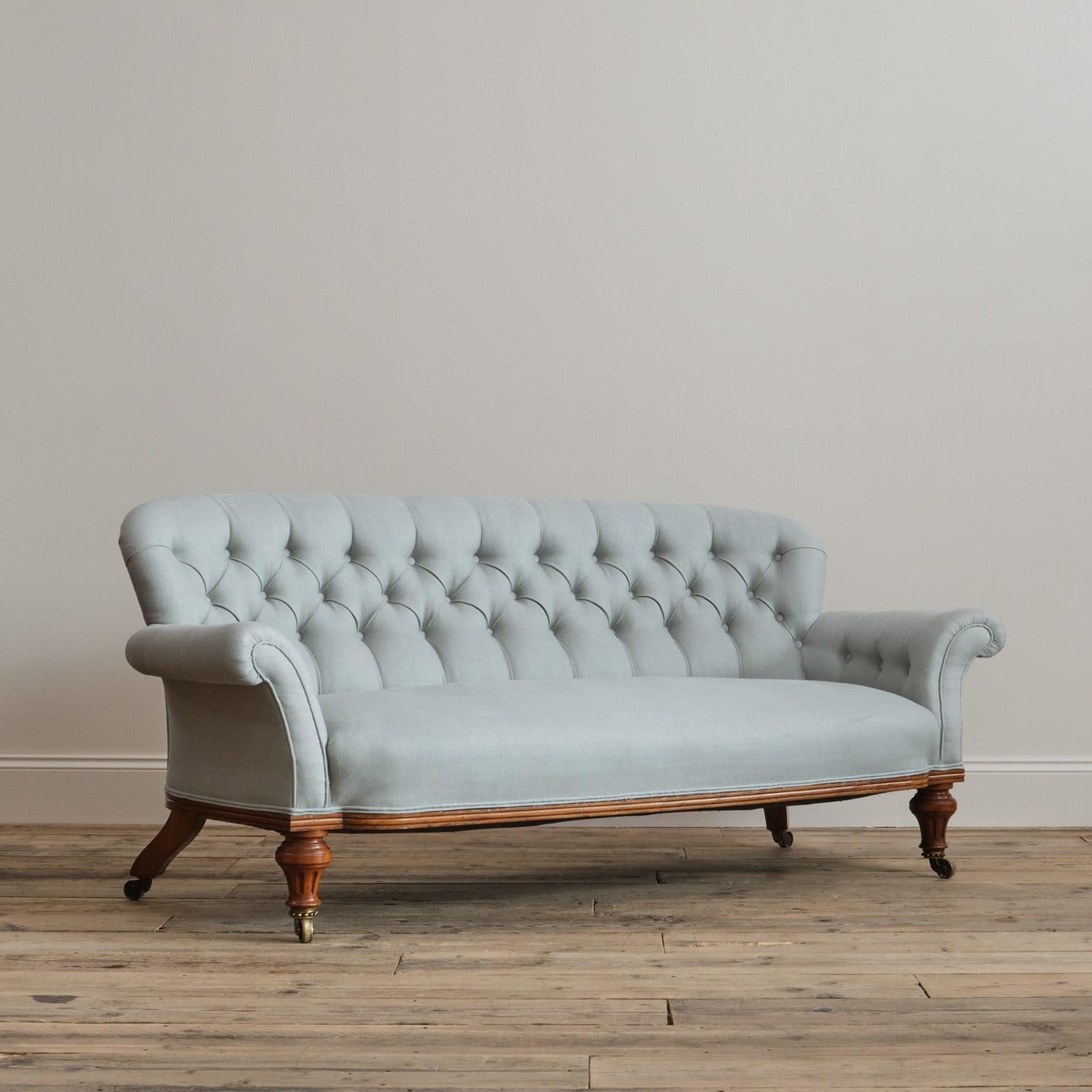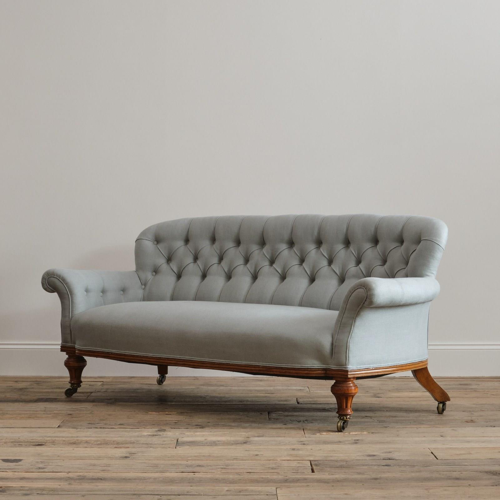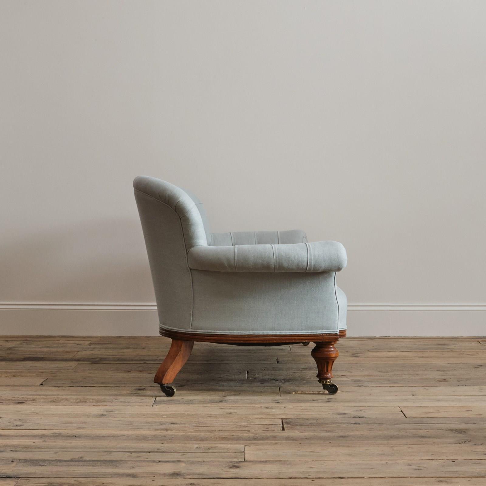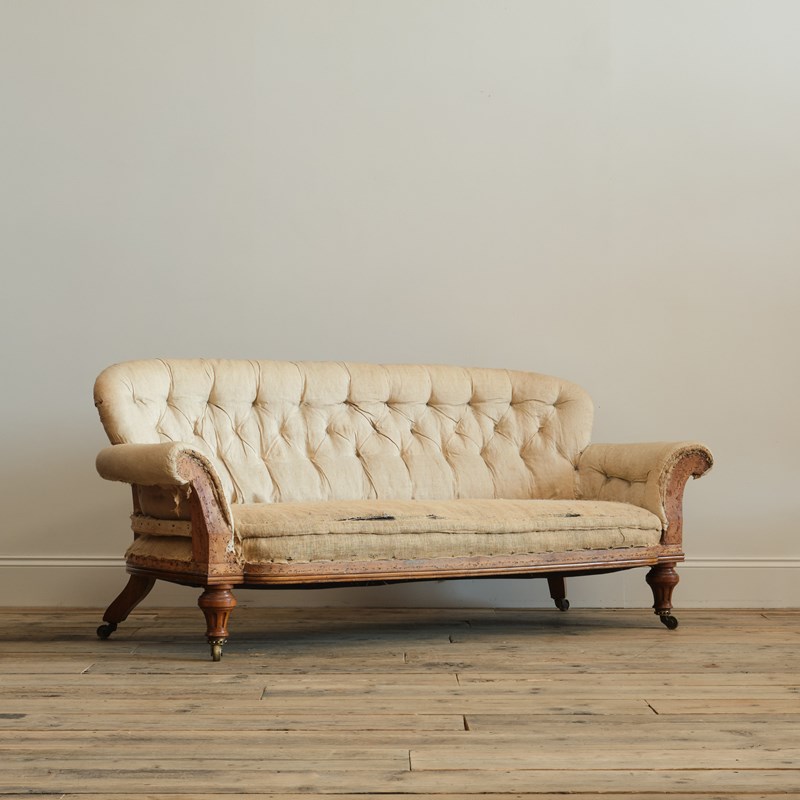 Structurally in good solid order and retaining the original buttoned back and arm upholstery. The seat also retains the original fillings that have been reworked previously with new hessian.