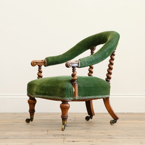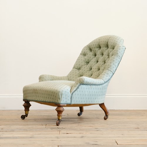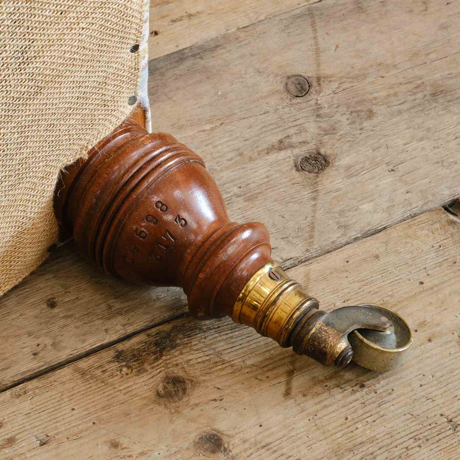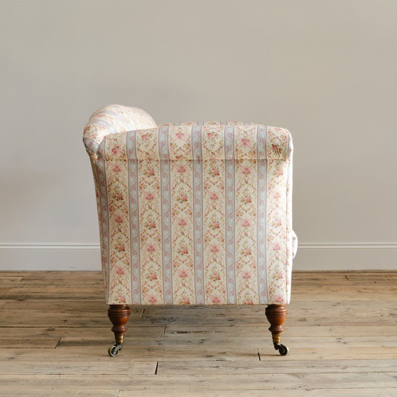 Newly traditionally upholstered from the frame up and covered in Howards blue striped cotton lining ready for use as is or ready for your choice of top covering.