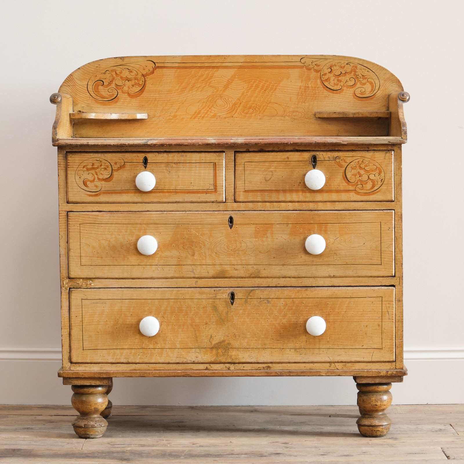 19Th Century Pine Washstand Chest Of Drawers In Original Paint