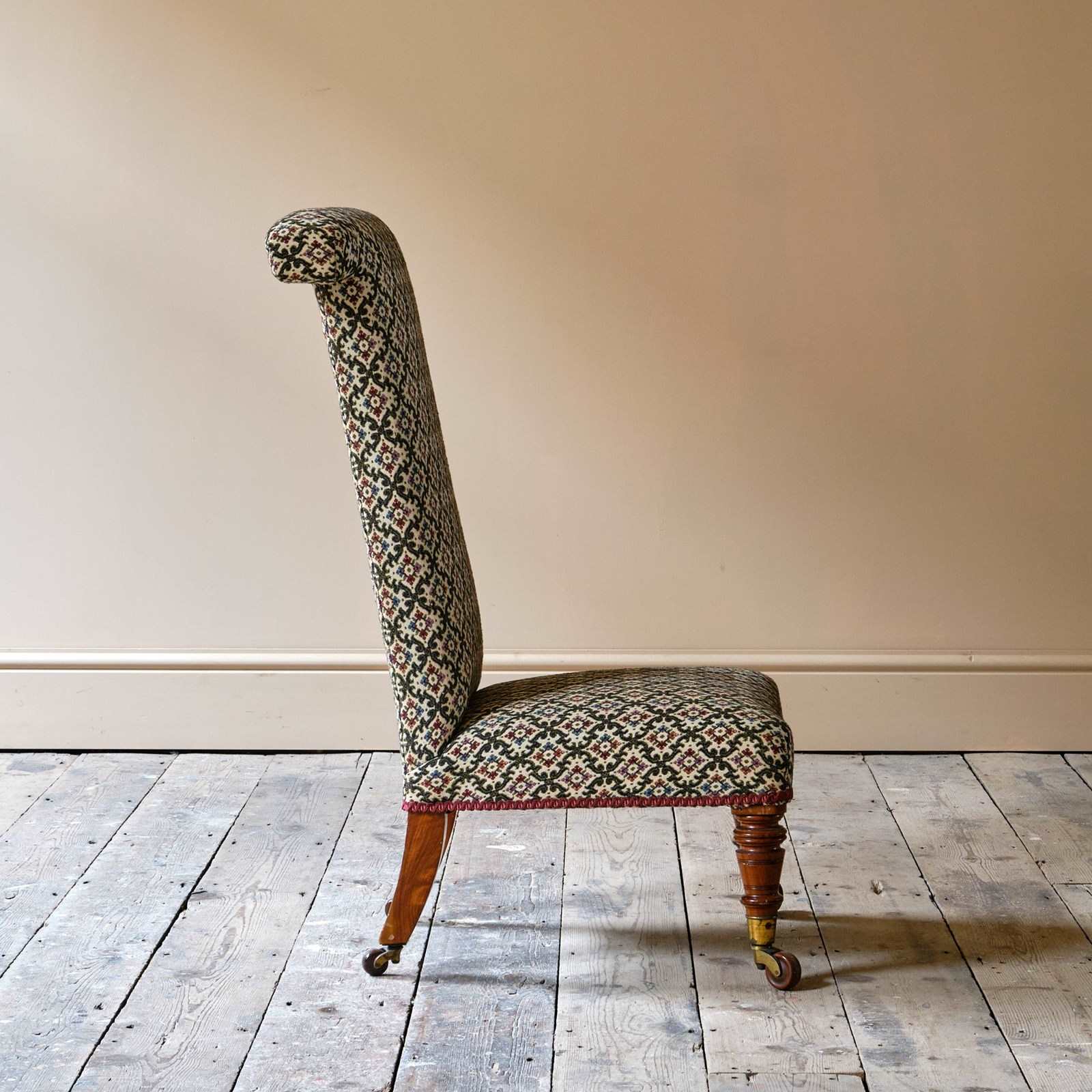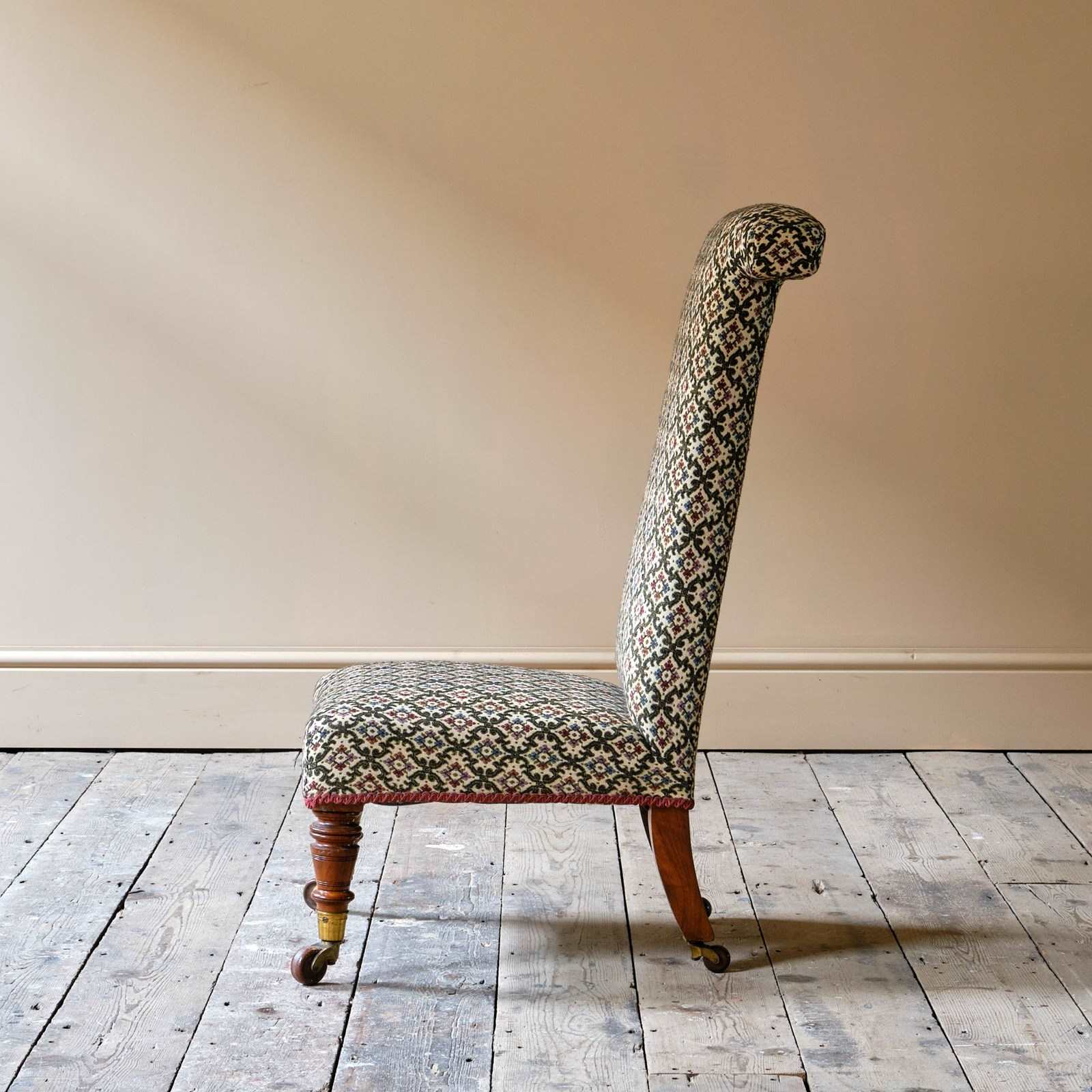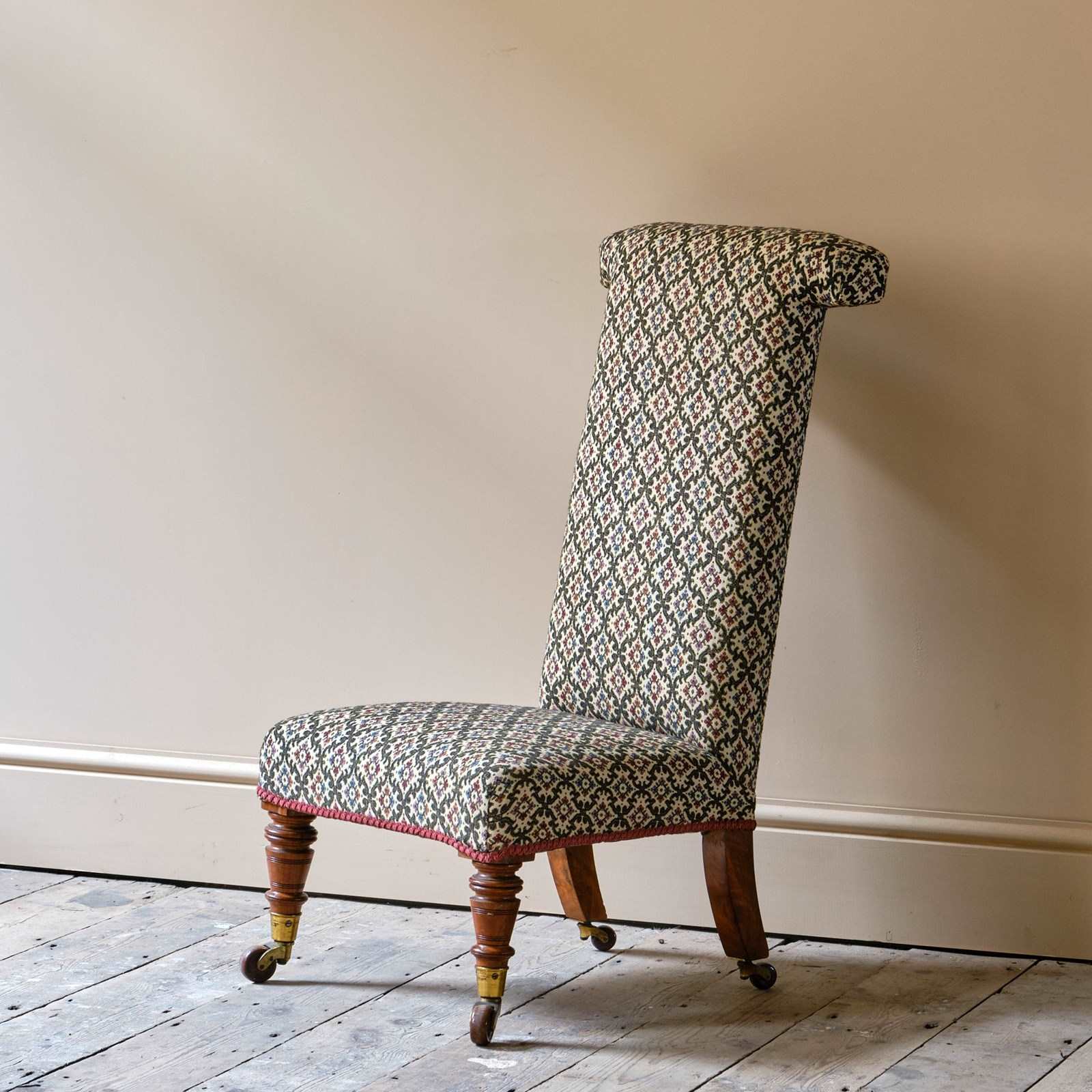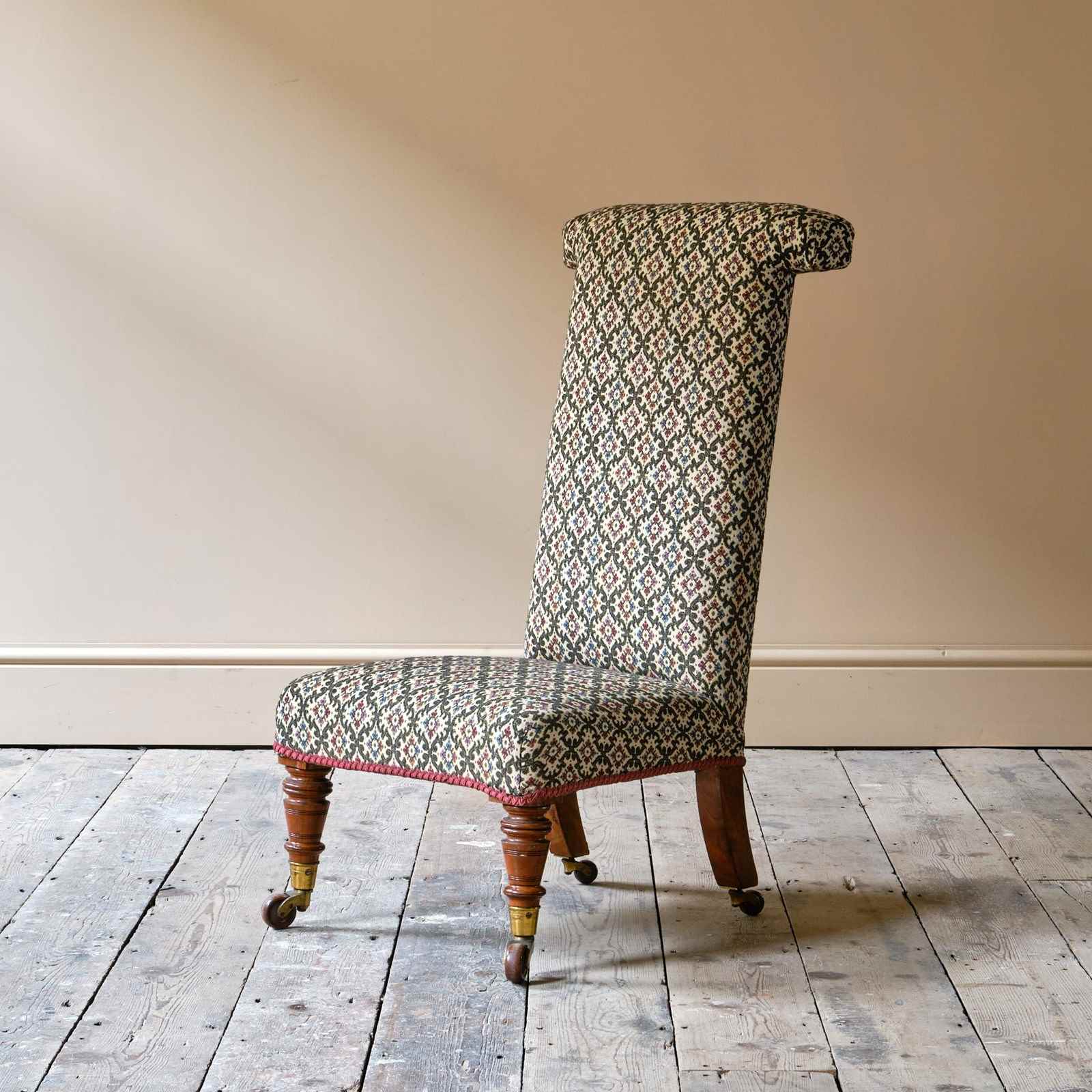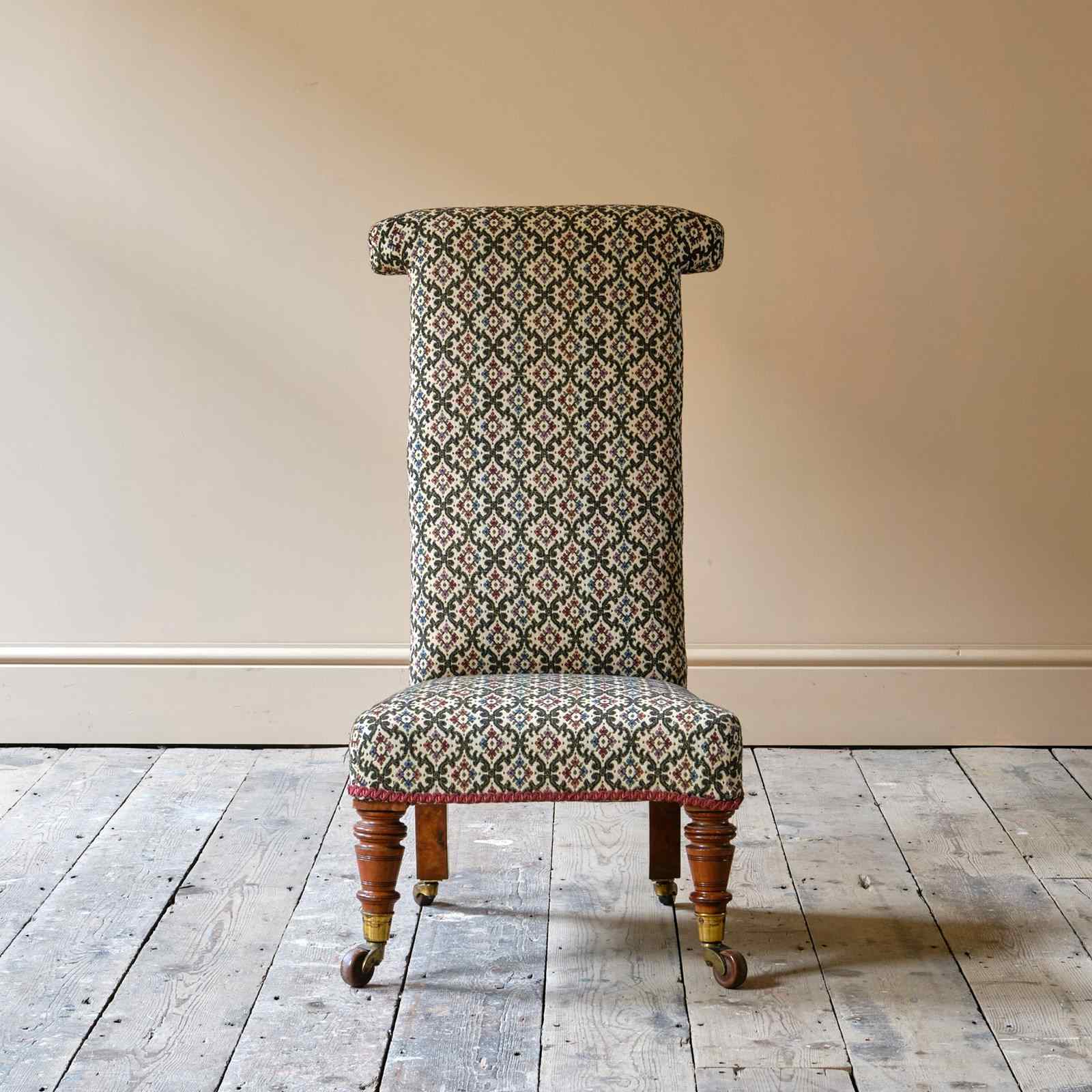 A good quality 19th century Prayer Chair. Raised on walnut legs and the original Cope & Collinson brass casters.
