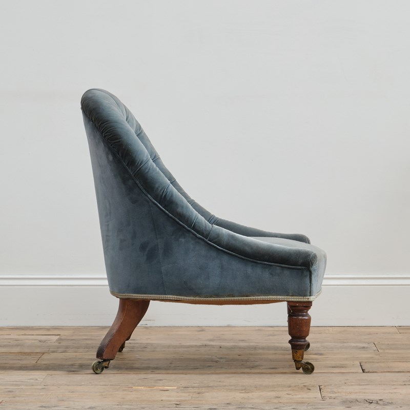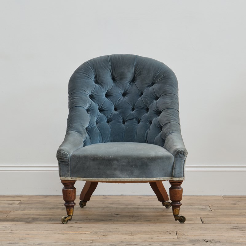 Shown here in a soft blue velvet which is in presentable order and usable as is with some wear as you may expect.