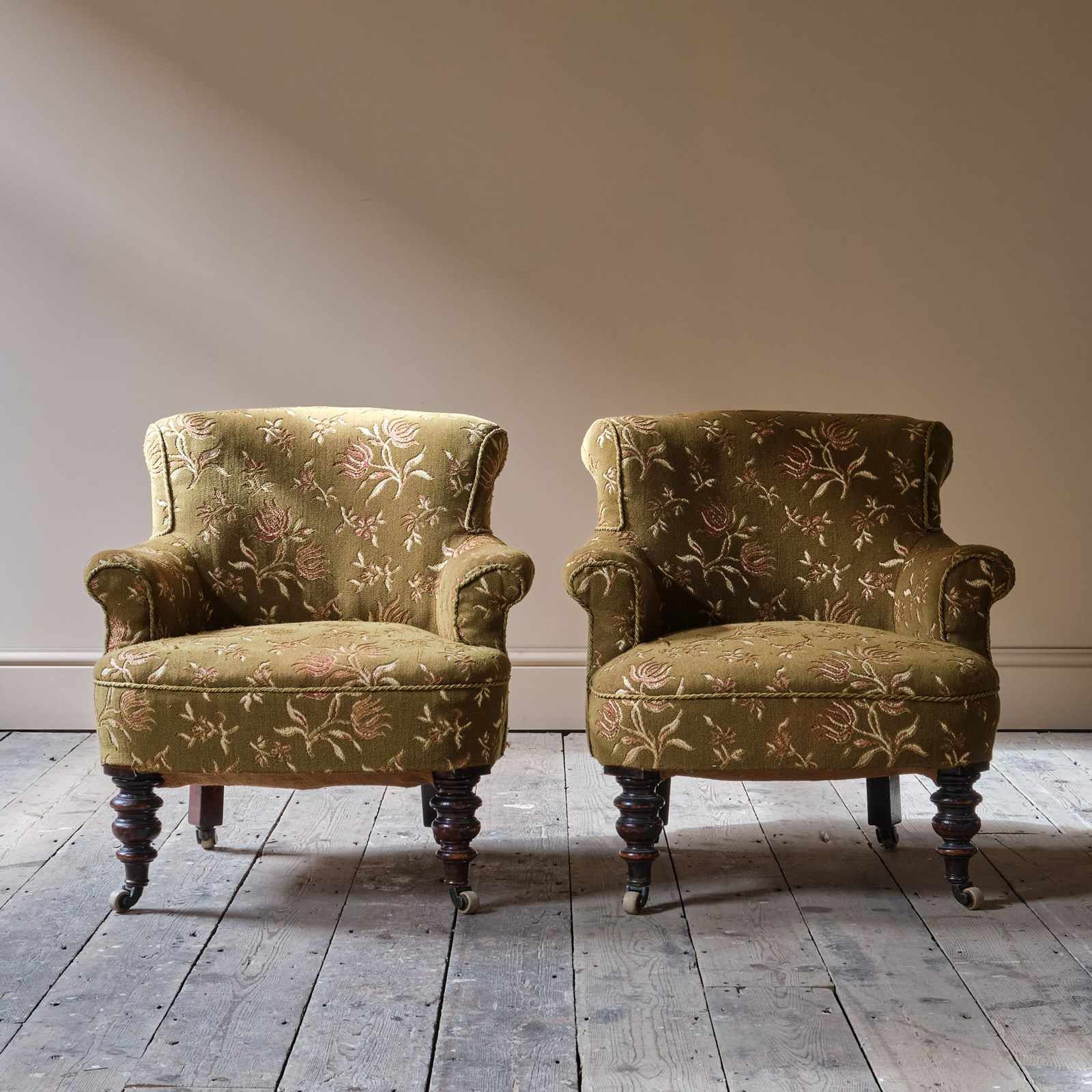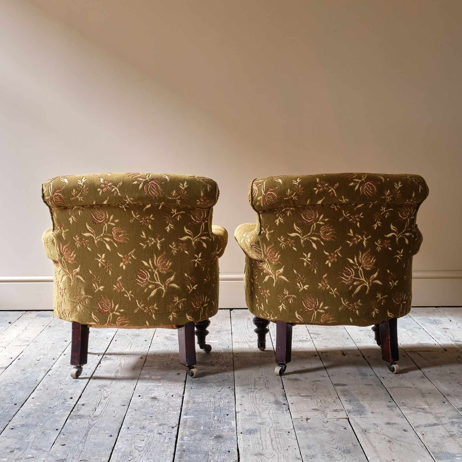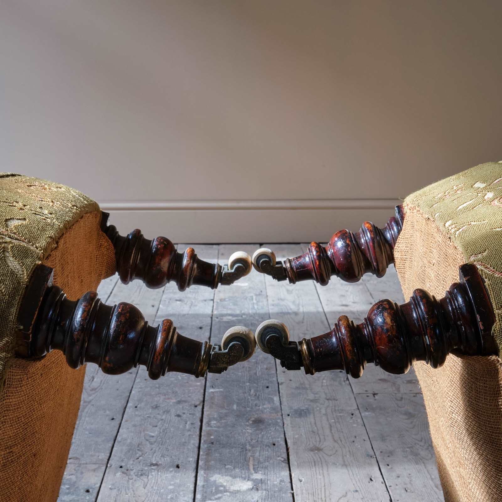 Raised on turned legs at the front and straight legs at the back. All on original ceramic castors.