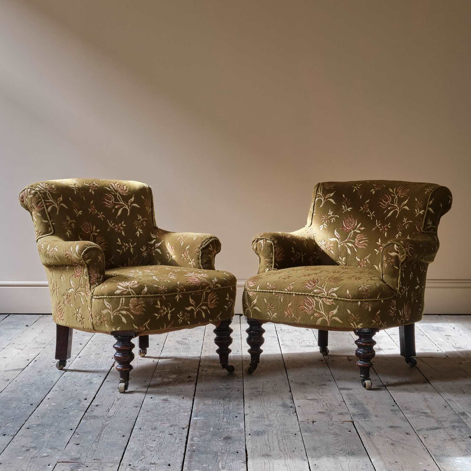 A Pair of compact Country House Tub Chairs. The highly versatile size is ideal for alcoves or bedroom/nursery setting.