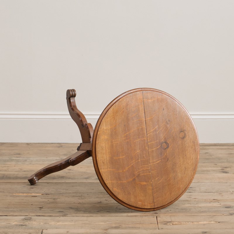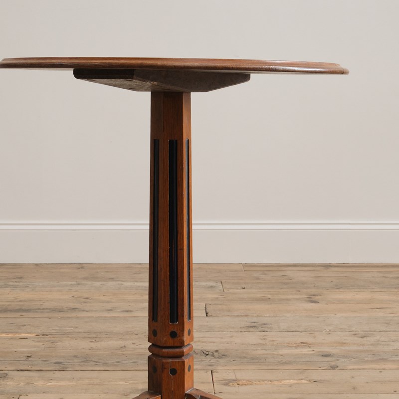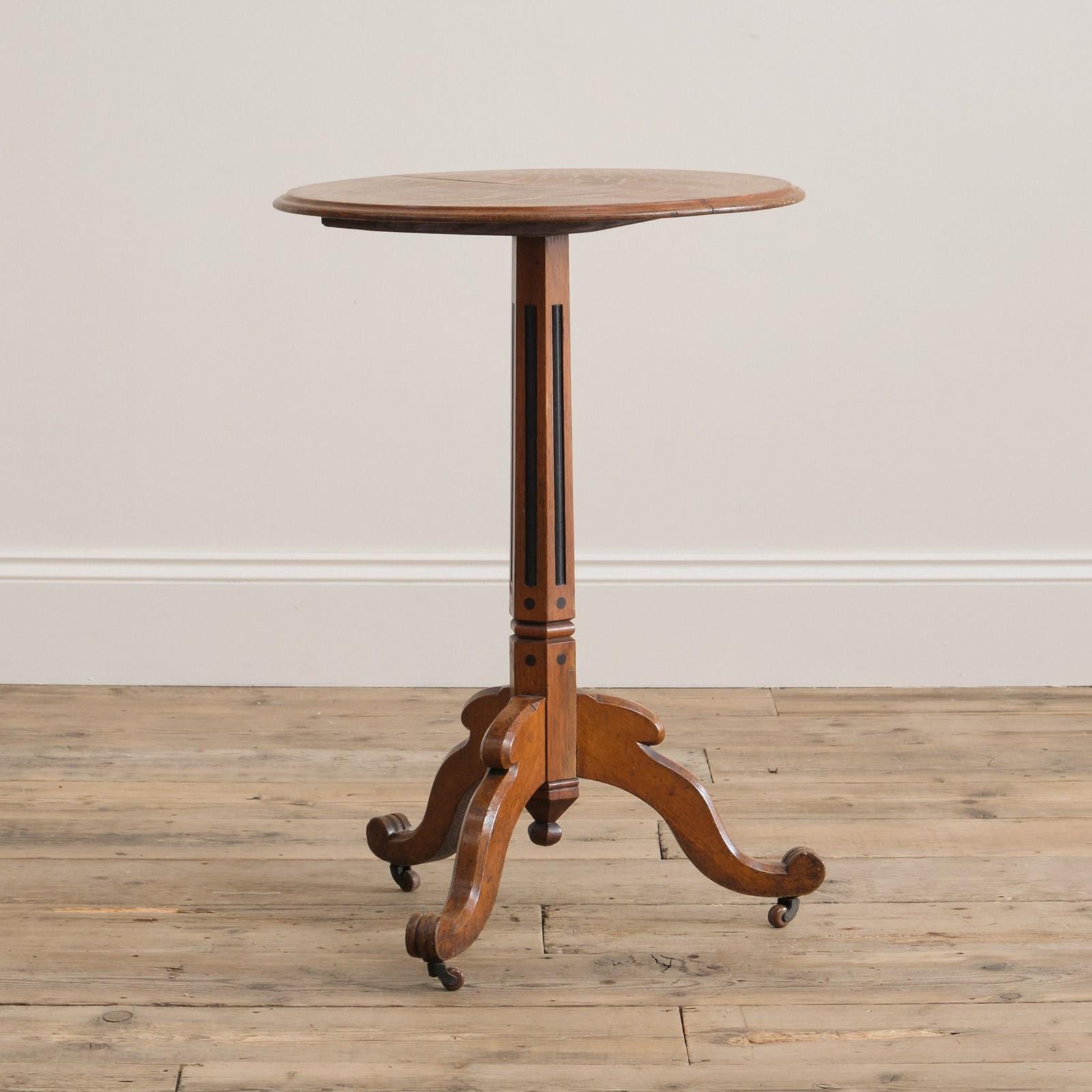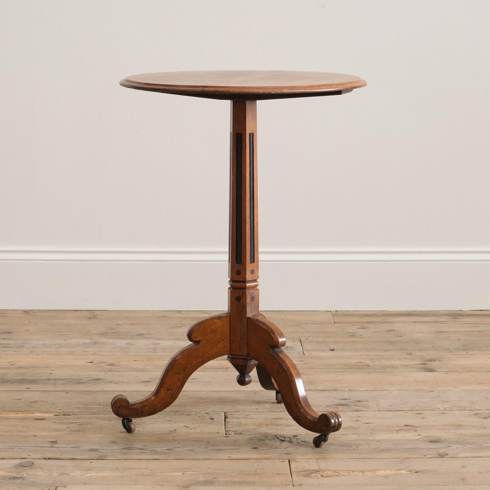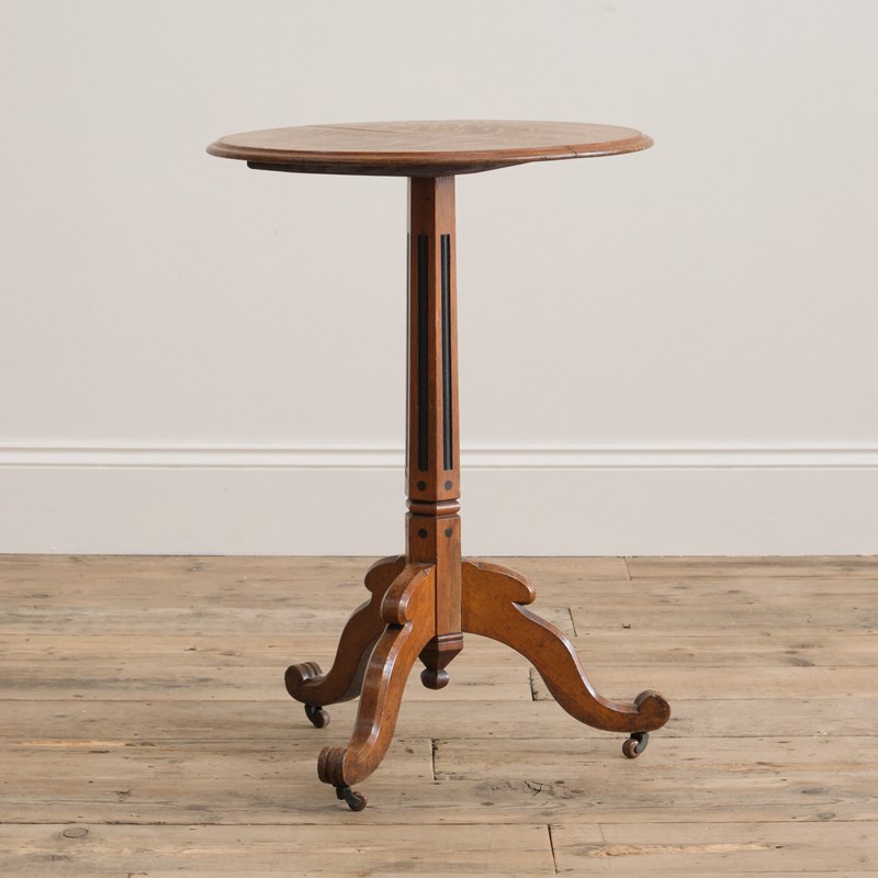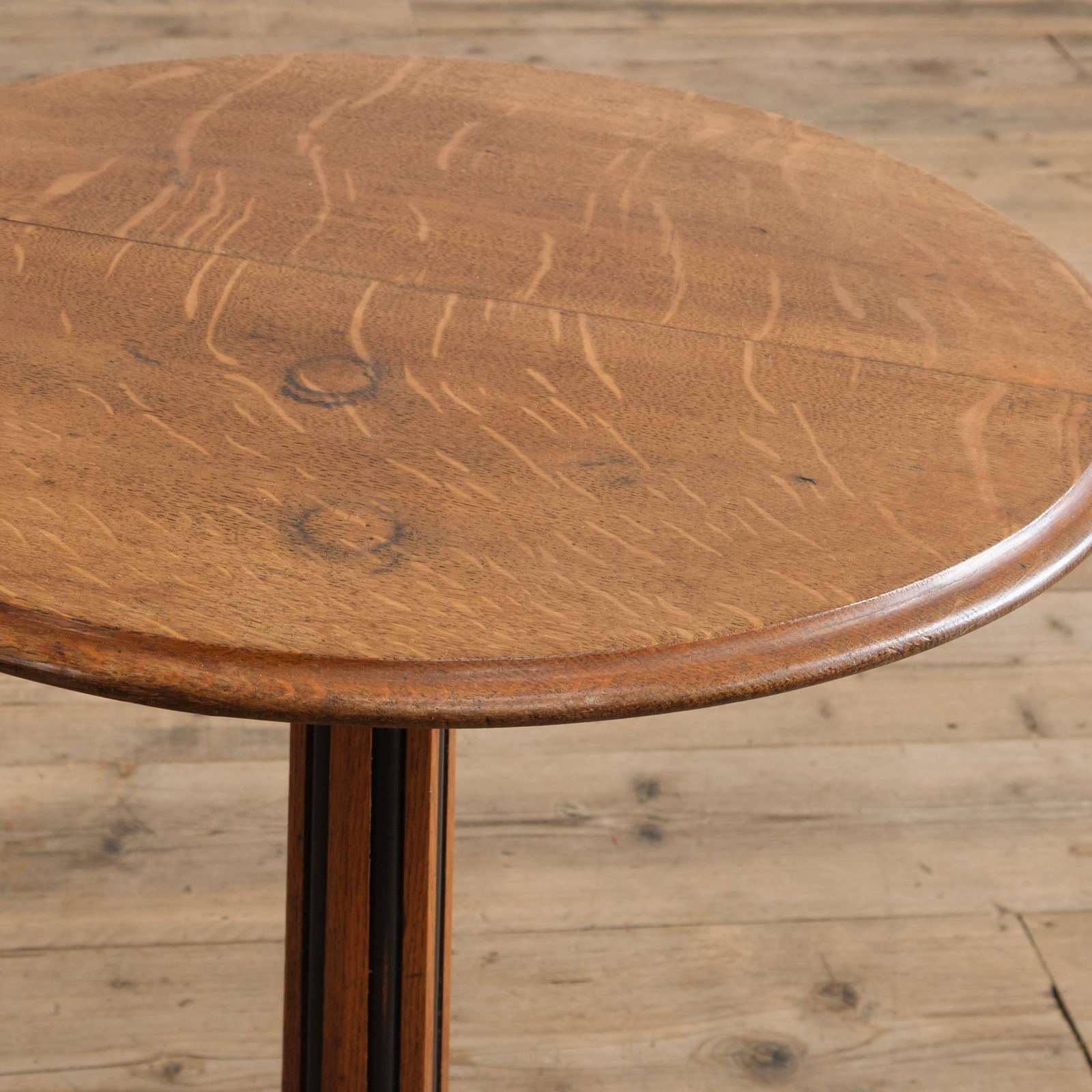 A good quality Aesthetic Movement side table constructed in oak with ebonized detail to the stem. Raised on shapely legs and casters.