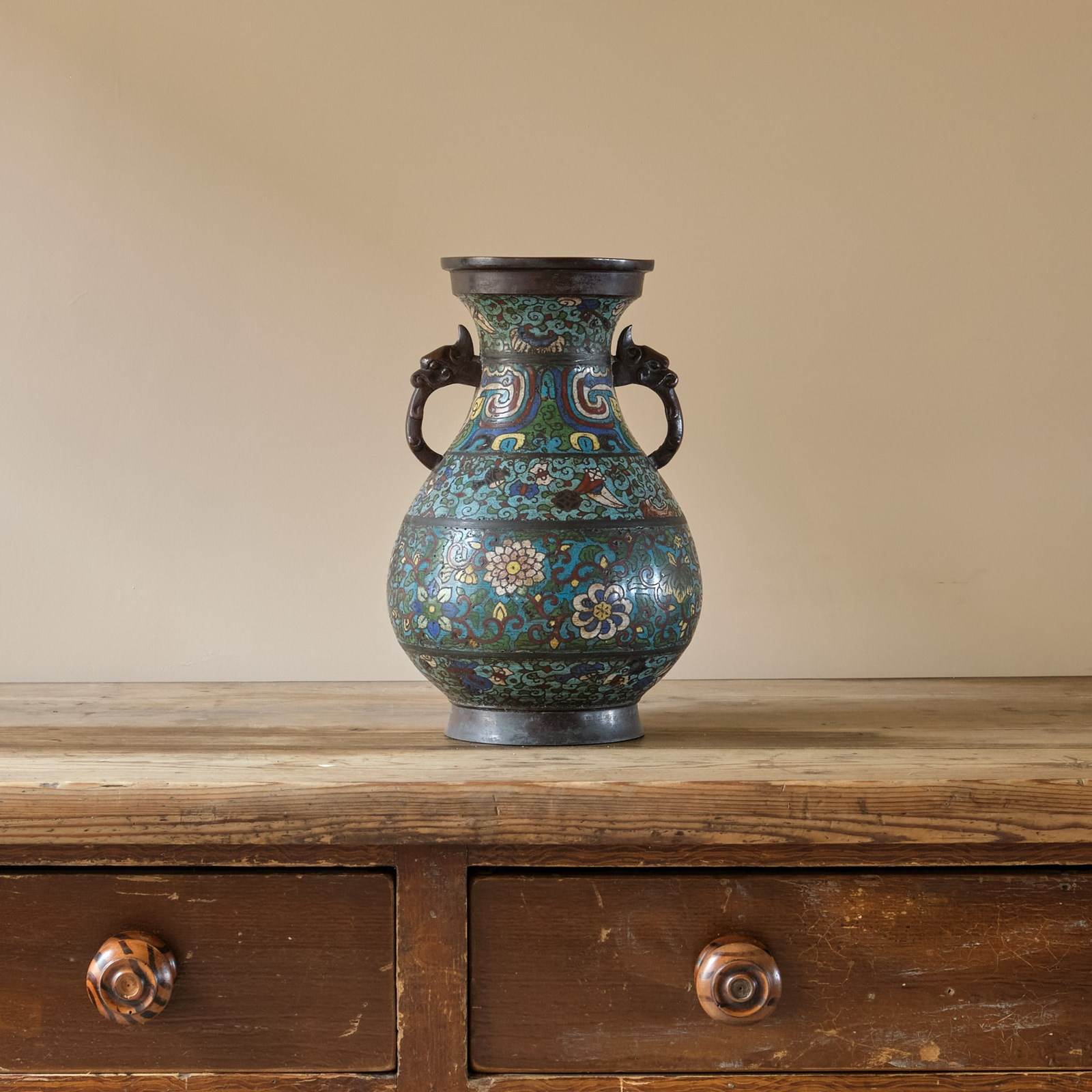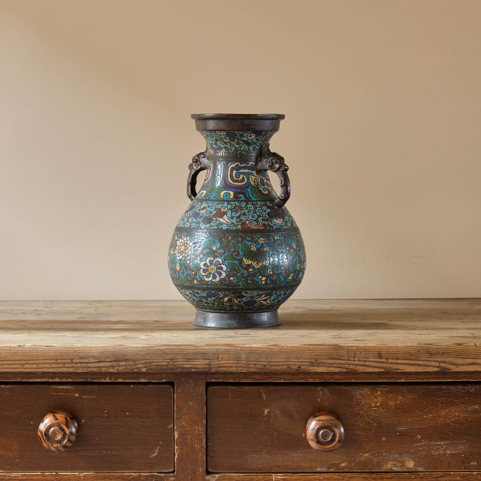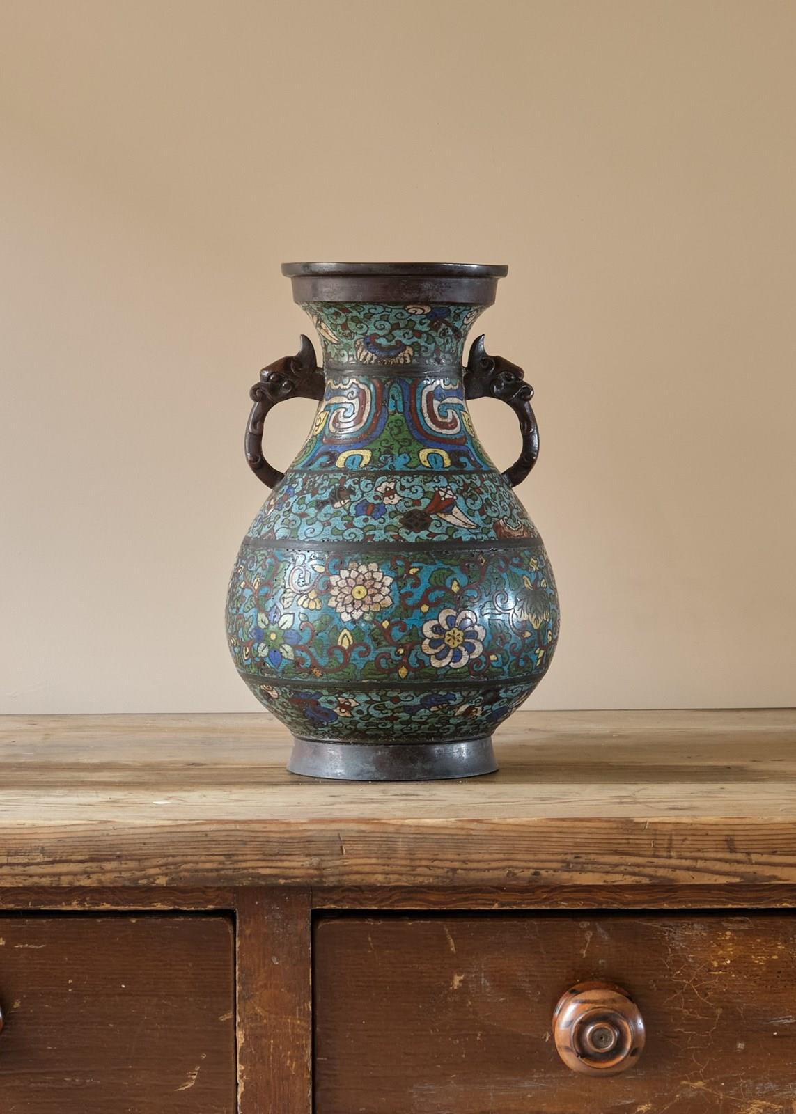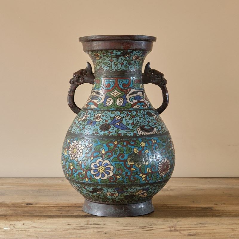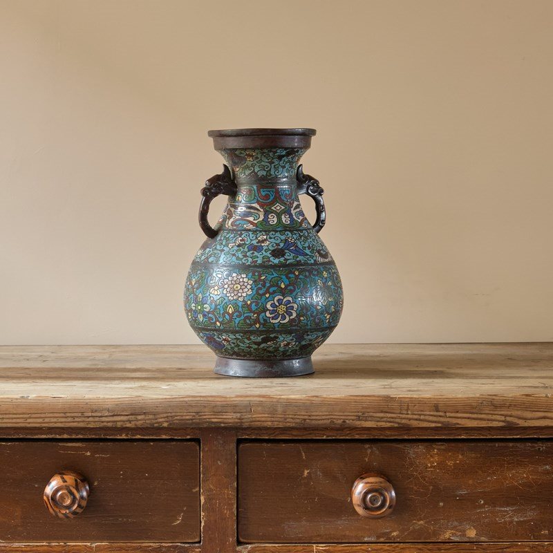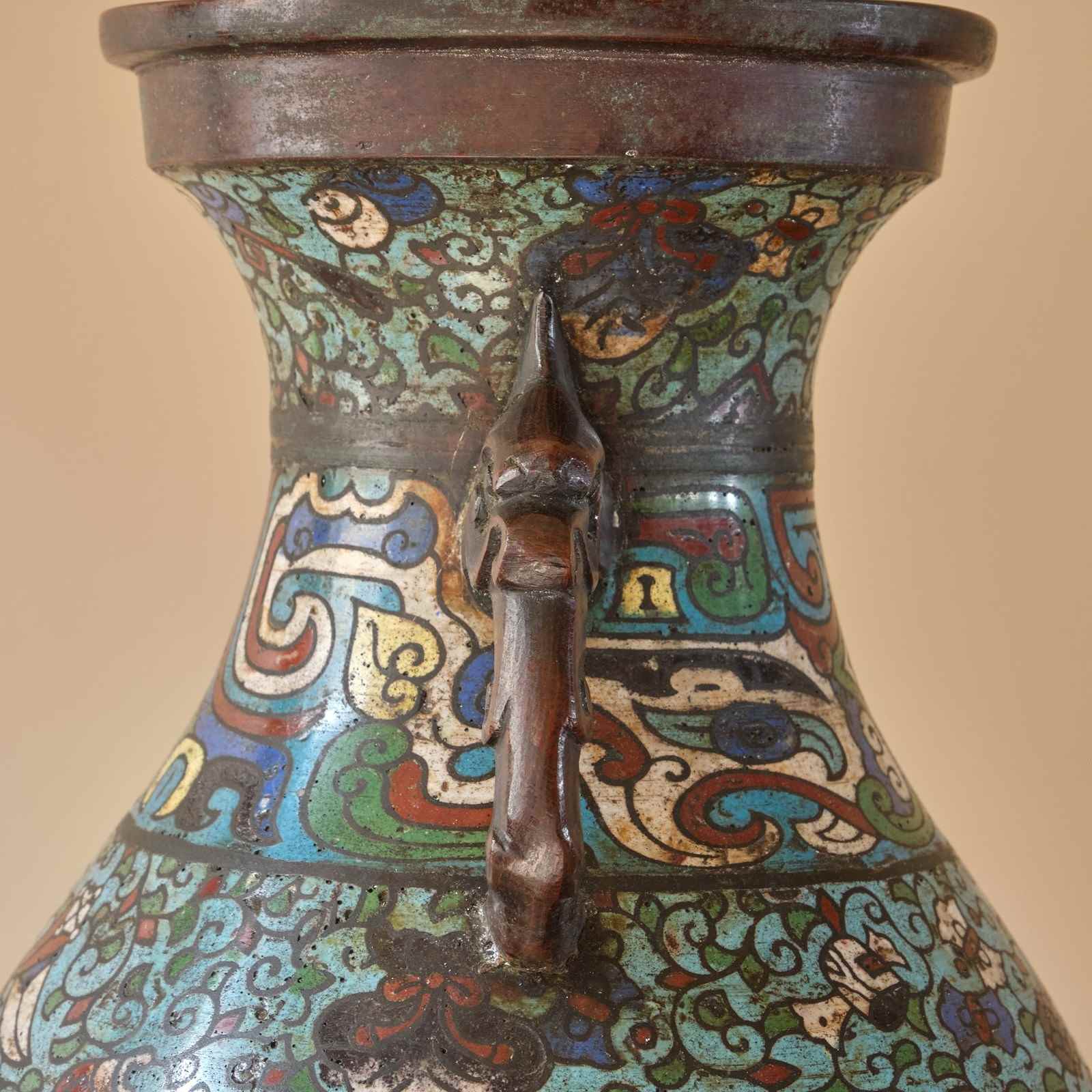 Antique Eastern Champleve Enamel And Bronze Vase
