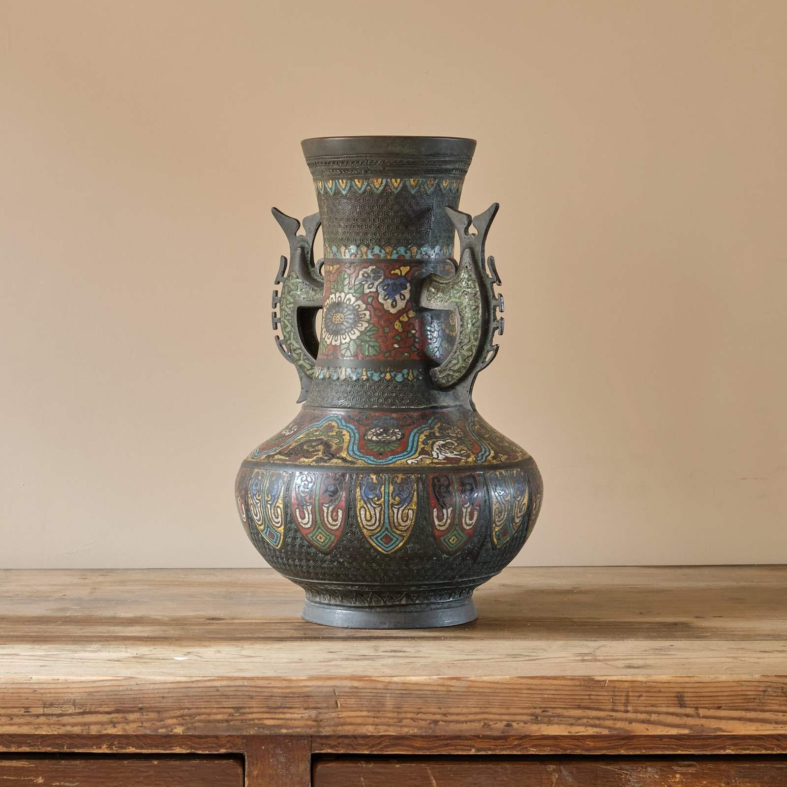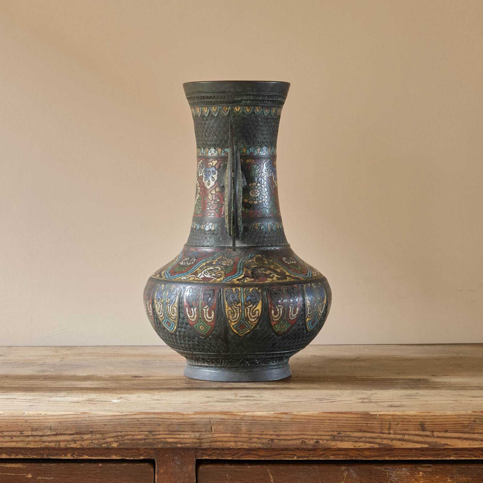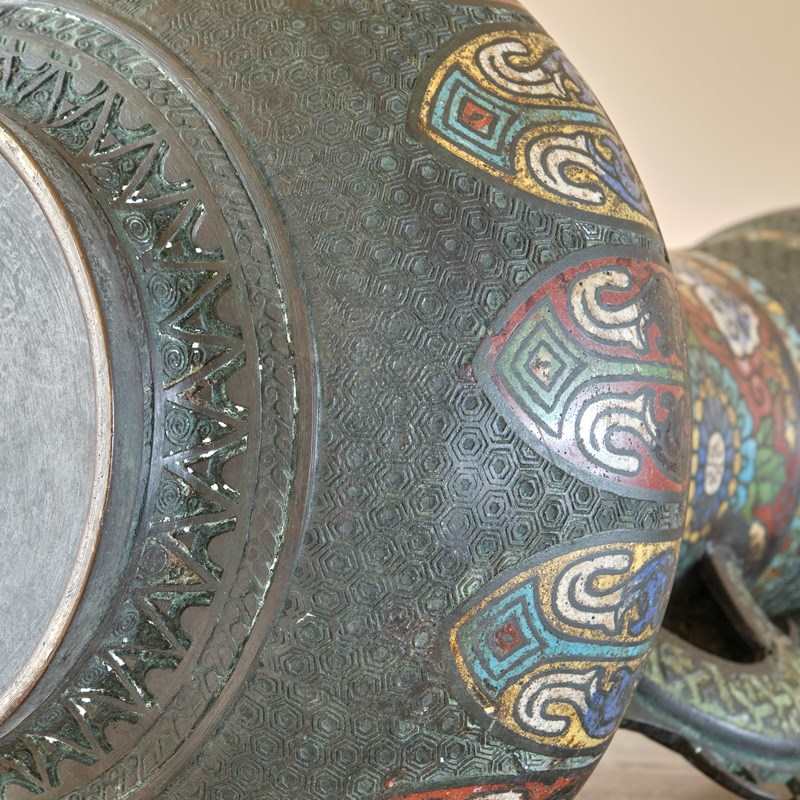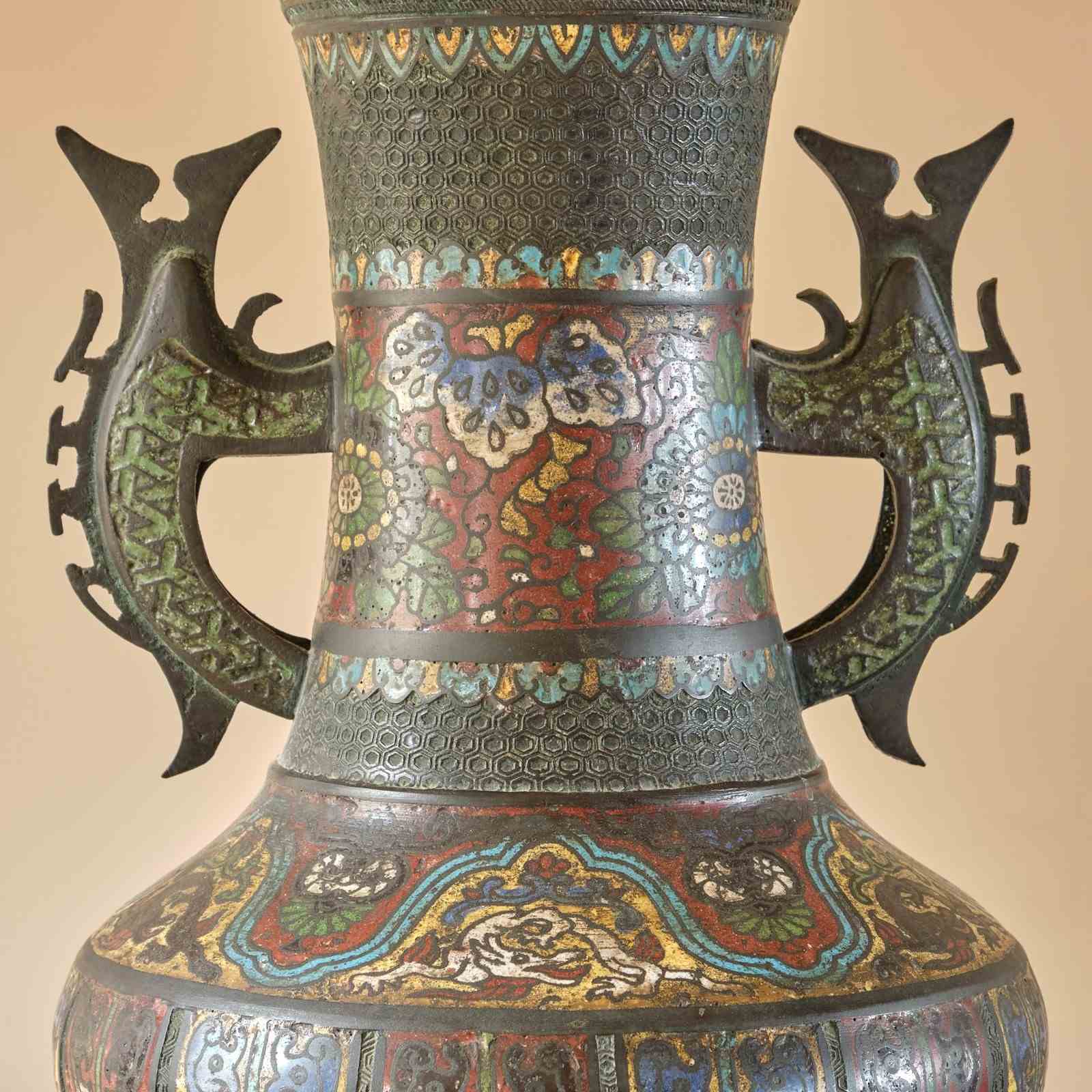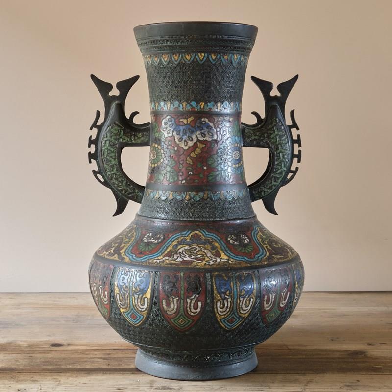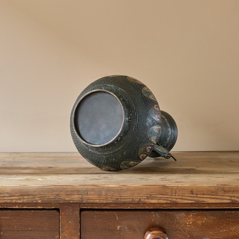 A highly decorative Antique Eastern Champleve Enamel and bronze Vase. Probably Japanese c1920