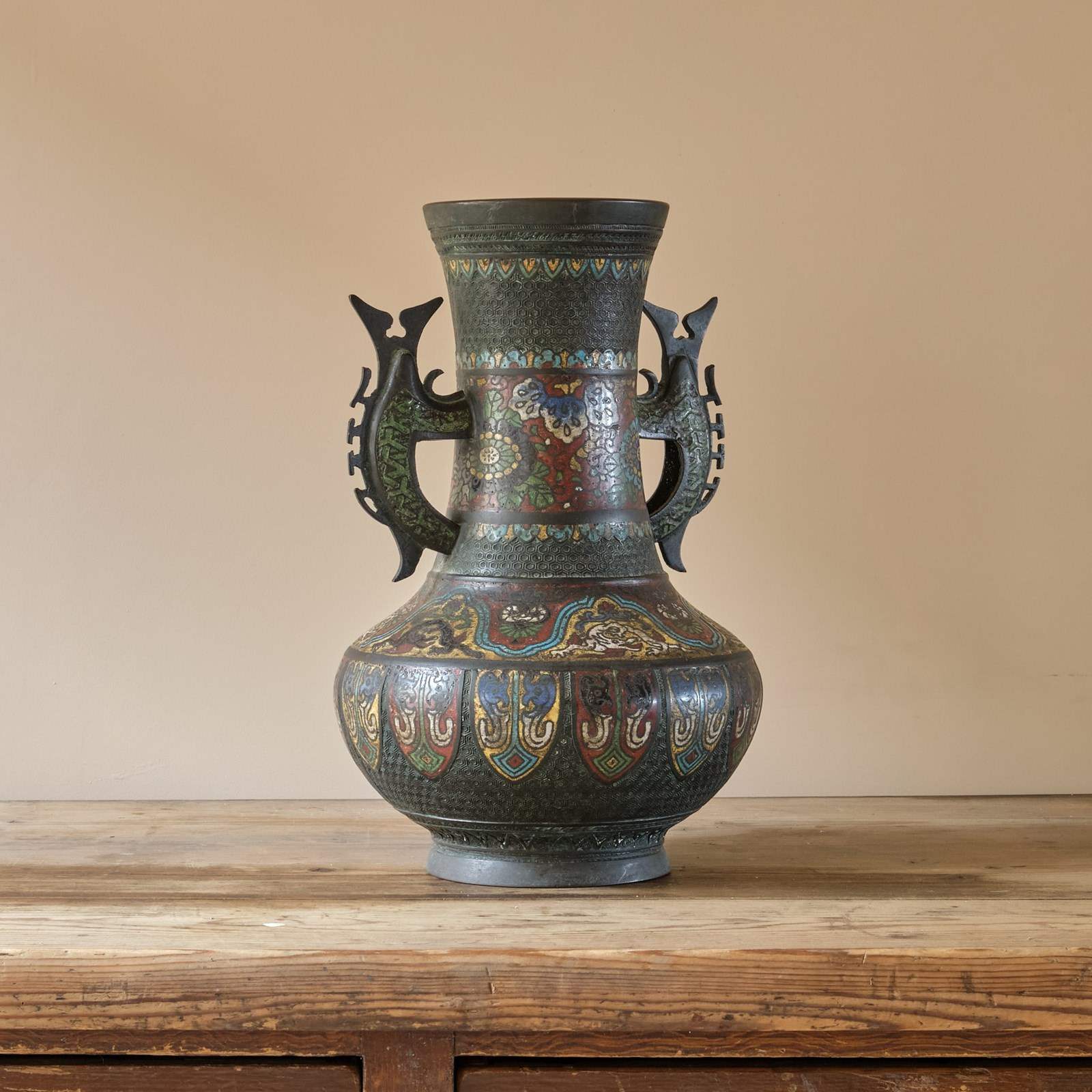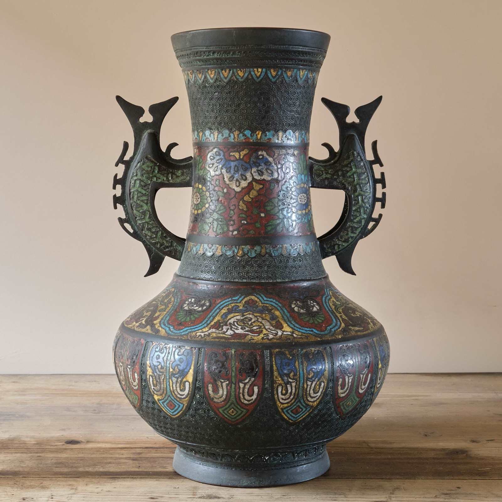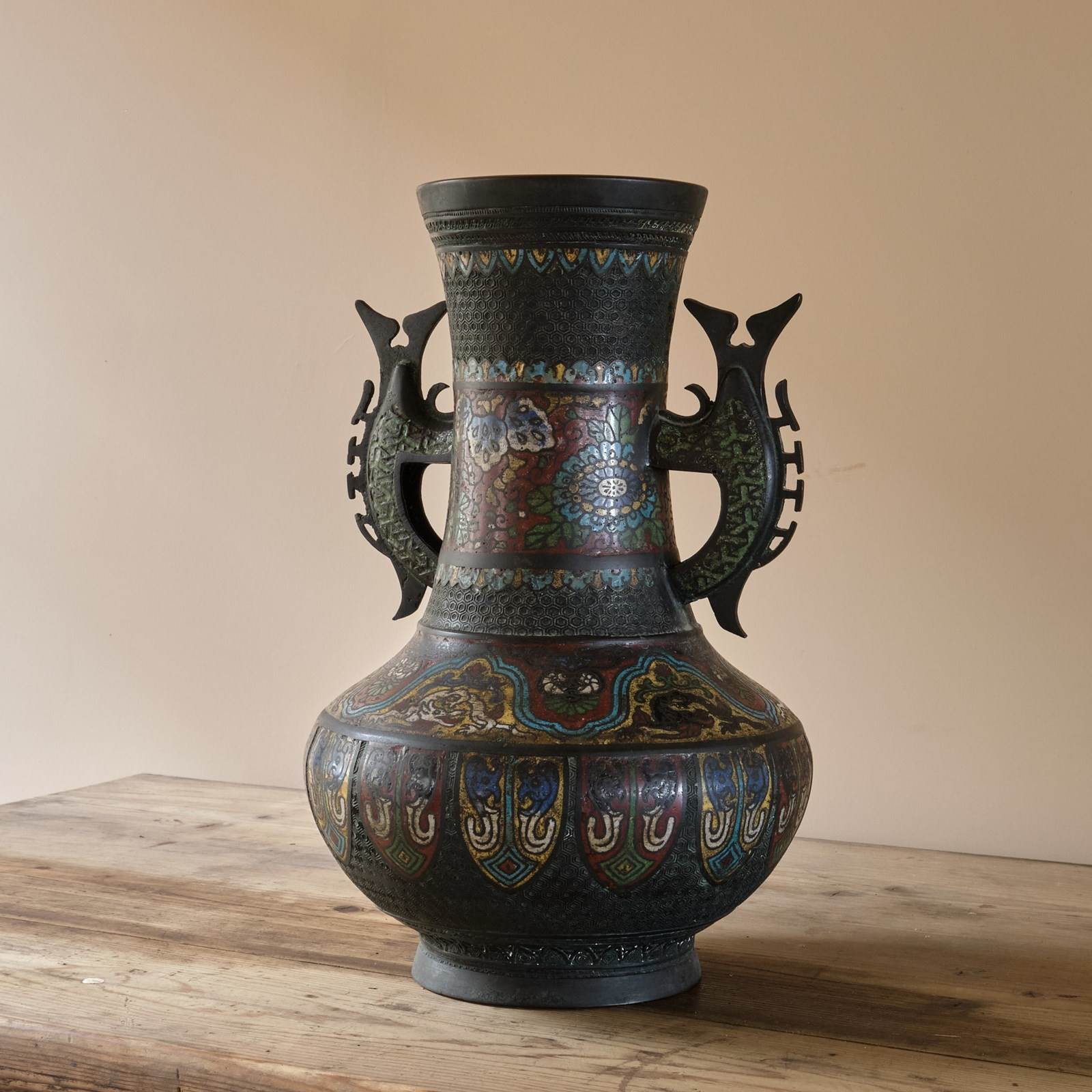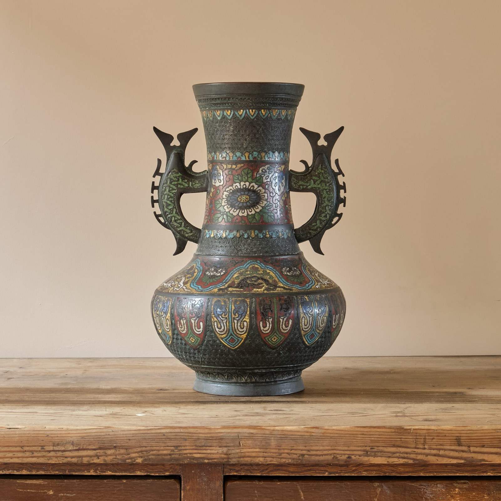 A highly decorative Antique Eastern Champleve Enamel and bronze Vase. Probably Japanese c1920