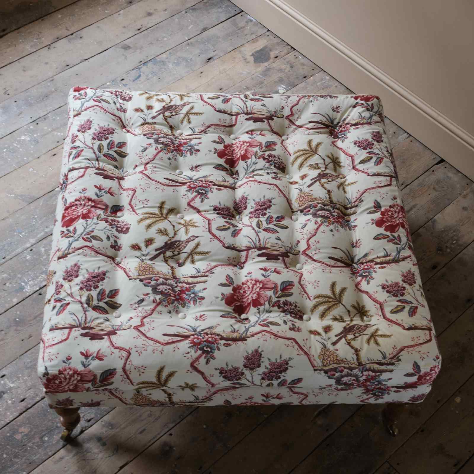 Bespoke Made Square Country House Footstool In Pierre Frey