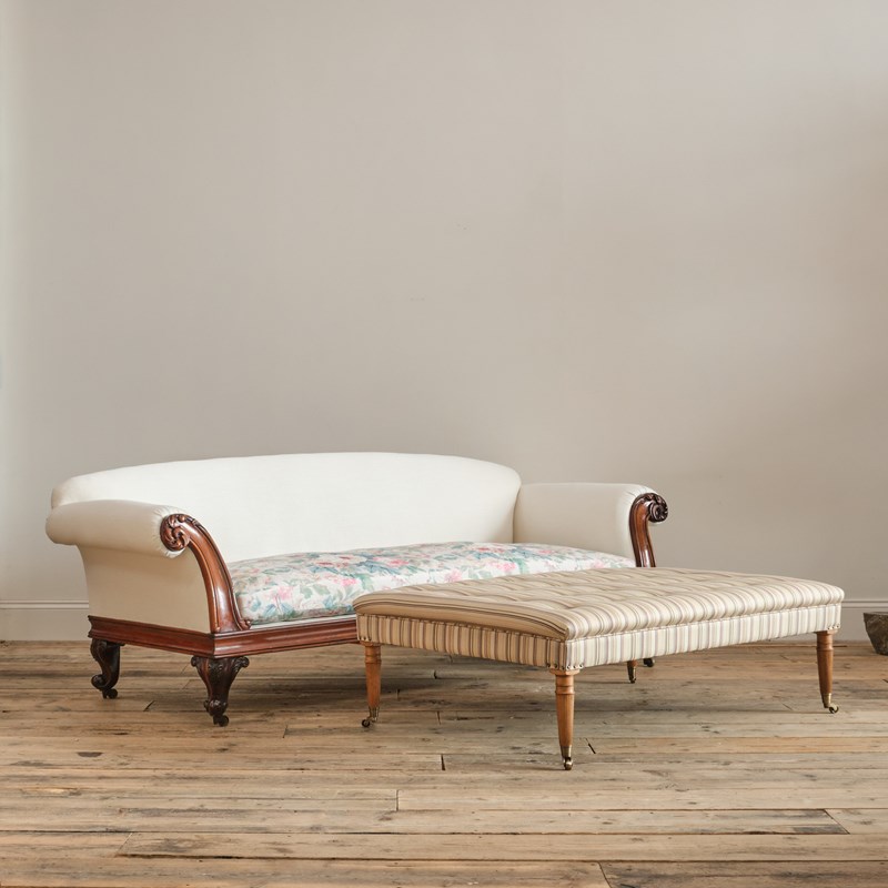 We also offer a bespoke service so please feel free to reach us via the 'Enquire' button and simply let us know the required size you'd like and we can help let you know how many meters you'll require. Meterage varies depending on if the fabric is plain or has a repeat pattern. The legs are interchangeable so if you don't like the ones in the images or there not right for your interior then we can help with that too and we work with a local wood turner so we can have legs turned to a design you may have previously seen.