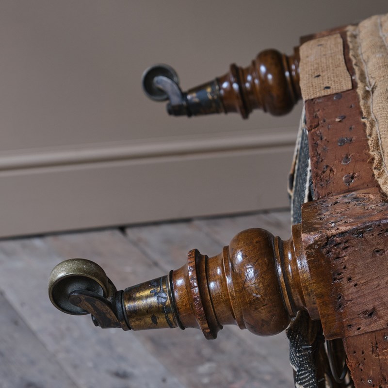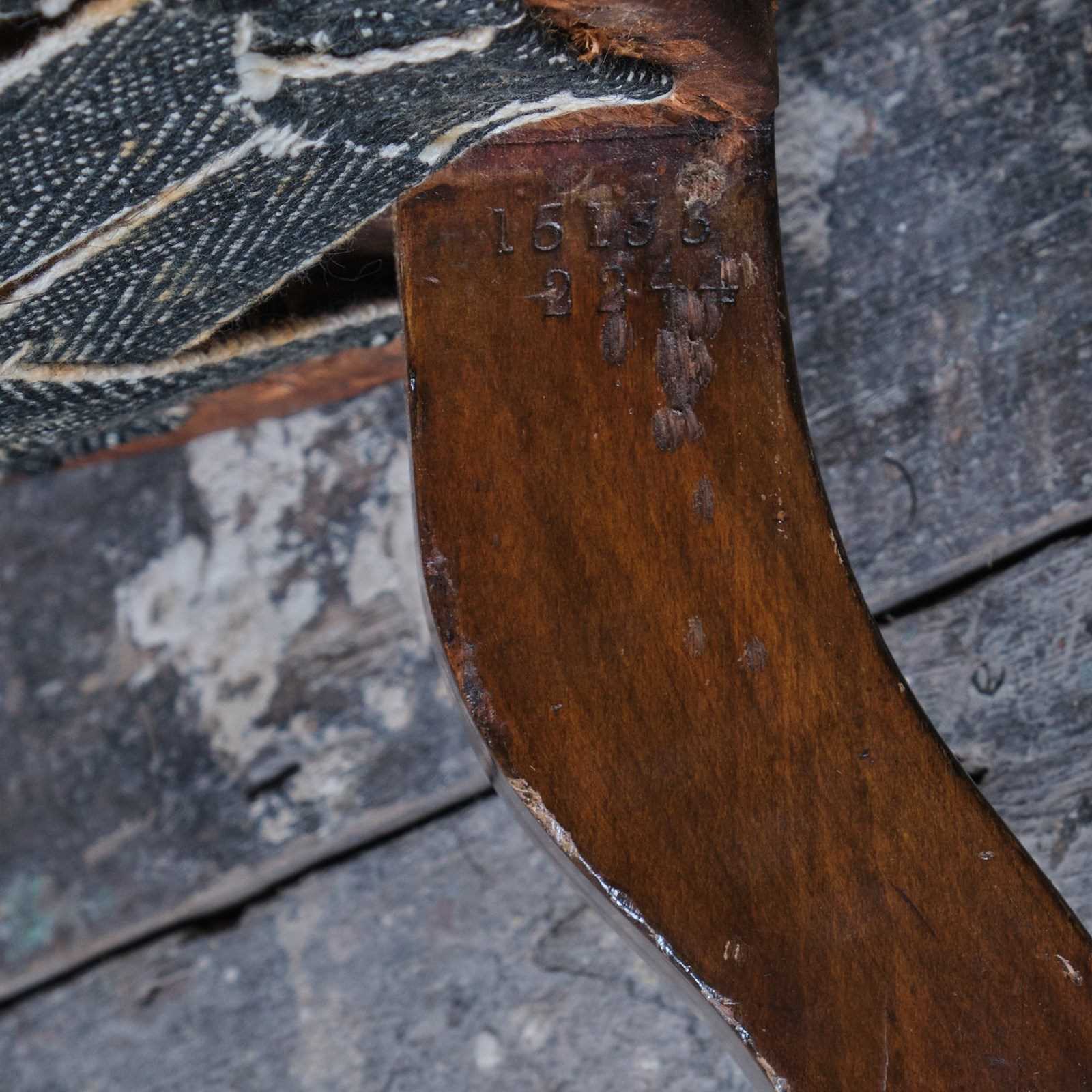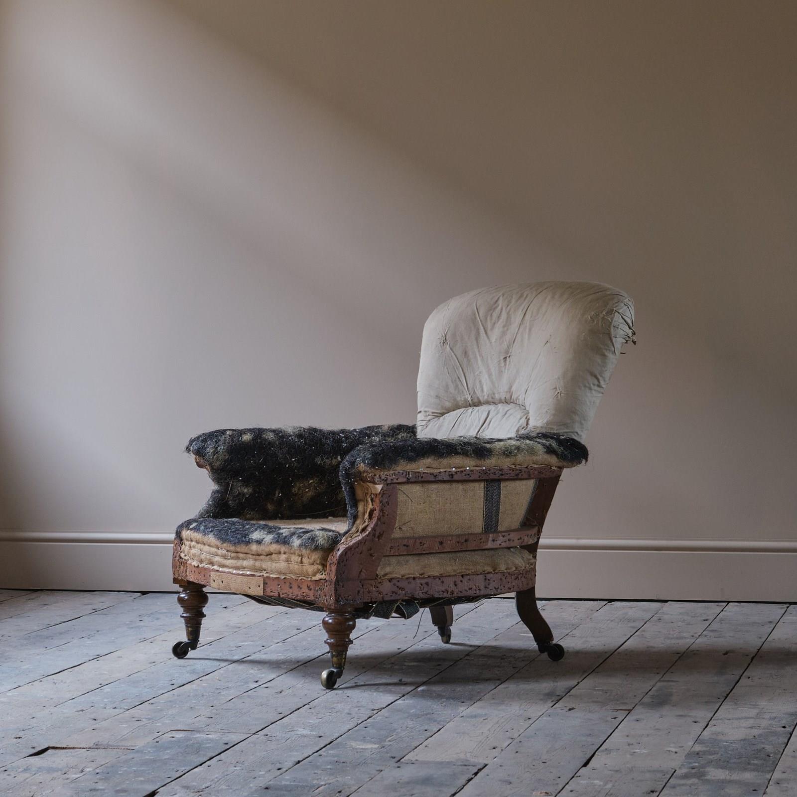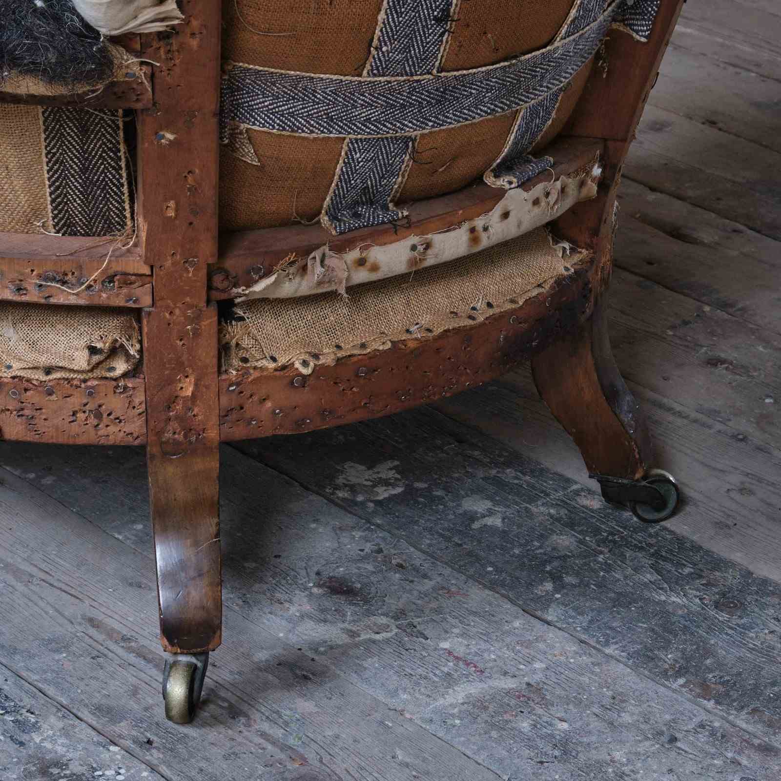 Structurally in good solid order and retaining the original innards with reworked arms. The seat appears to be a more recent addition.