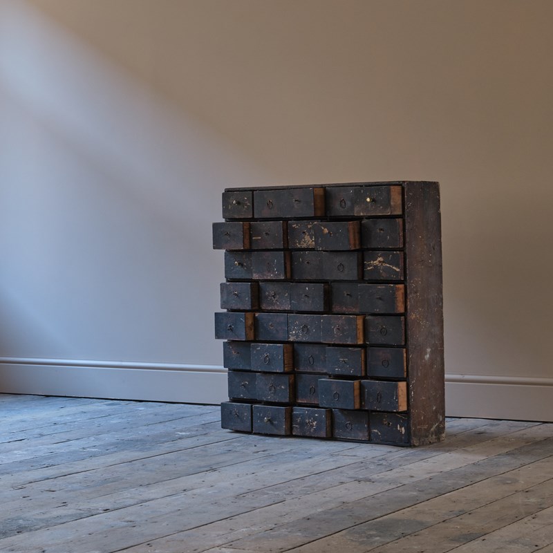 Georgian Pine Bank Of 40 Drawers In The Original Paint