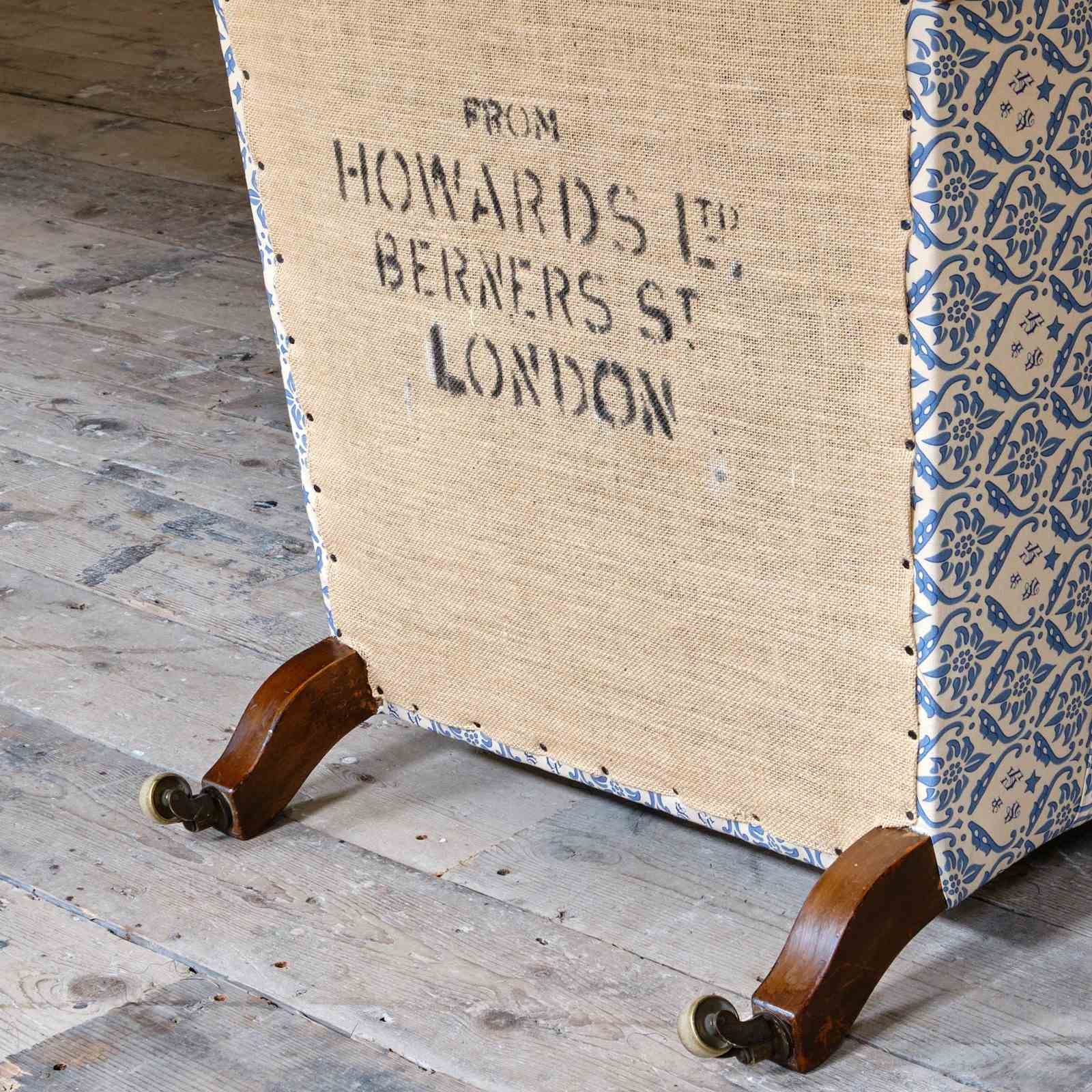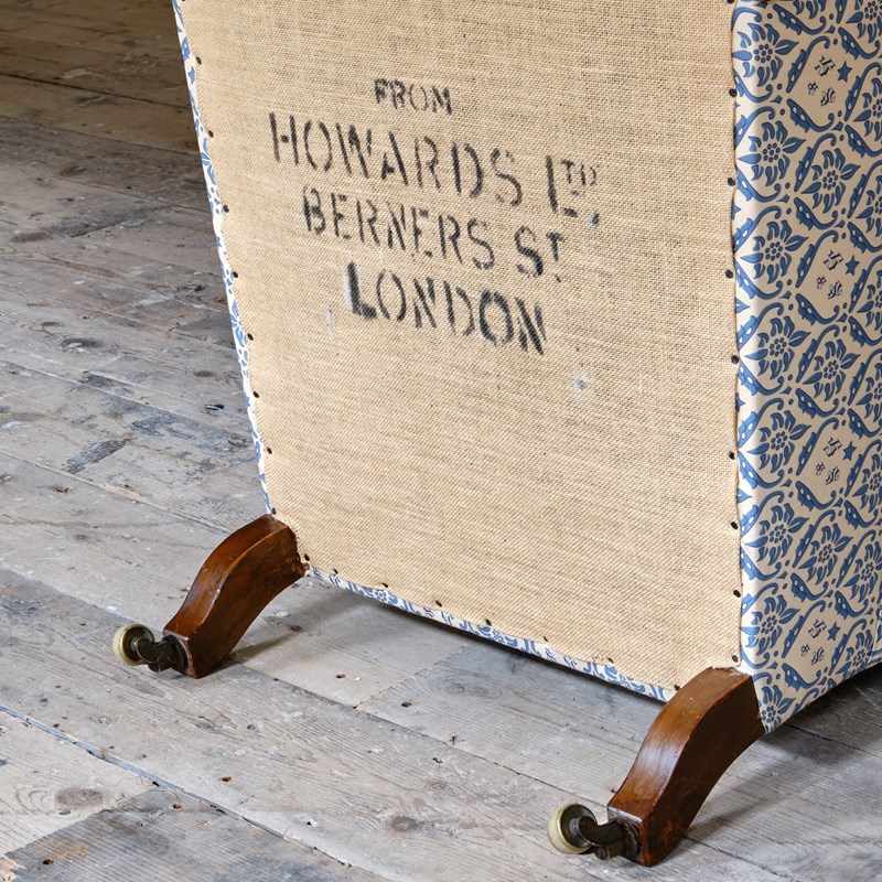 Fully restored from the frame up to a high standard with feather and down cushion. The whole chair has been covered in reproduction Howard cotton lining ready to use as is or for your choice of top covering.
