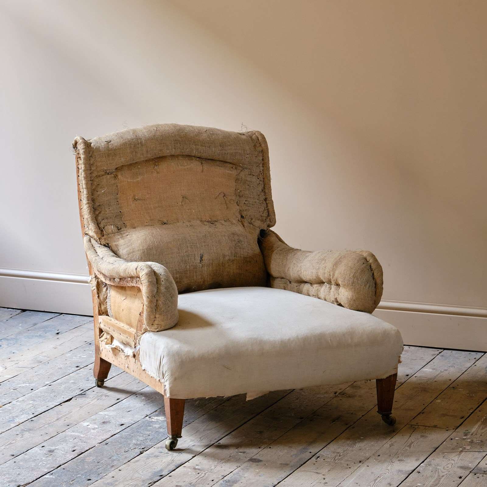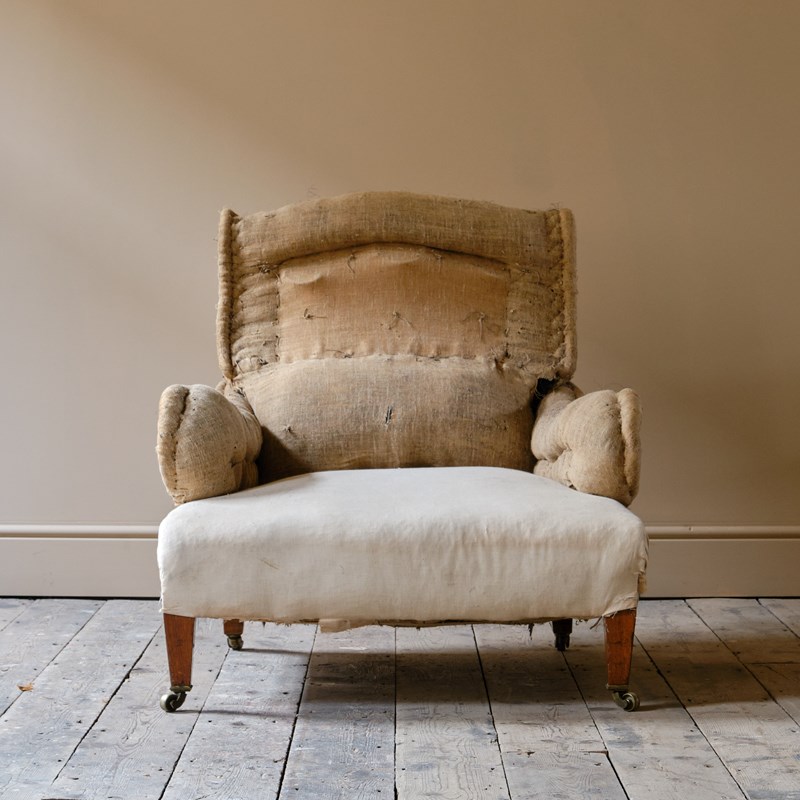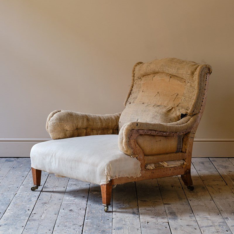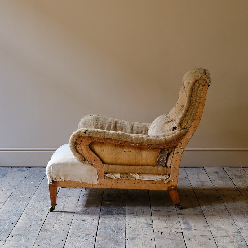 We can restore this chair with a number of different comfort options and we can supply Howard & Sons Monogram cotton lining.