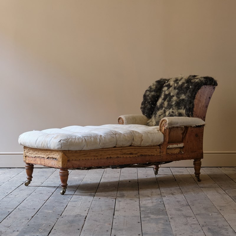 It retains its original horse hair innards to the back and wings. it also has the original down filled seat cushion and seat.