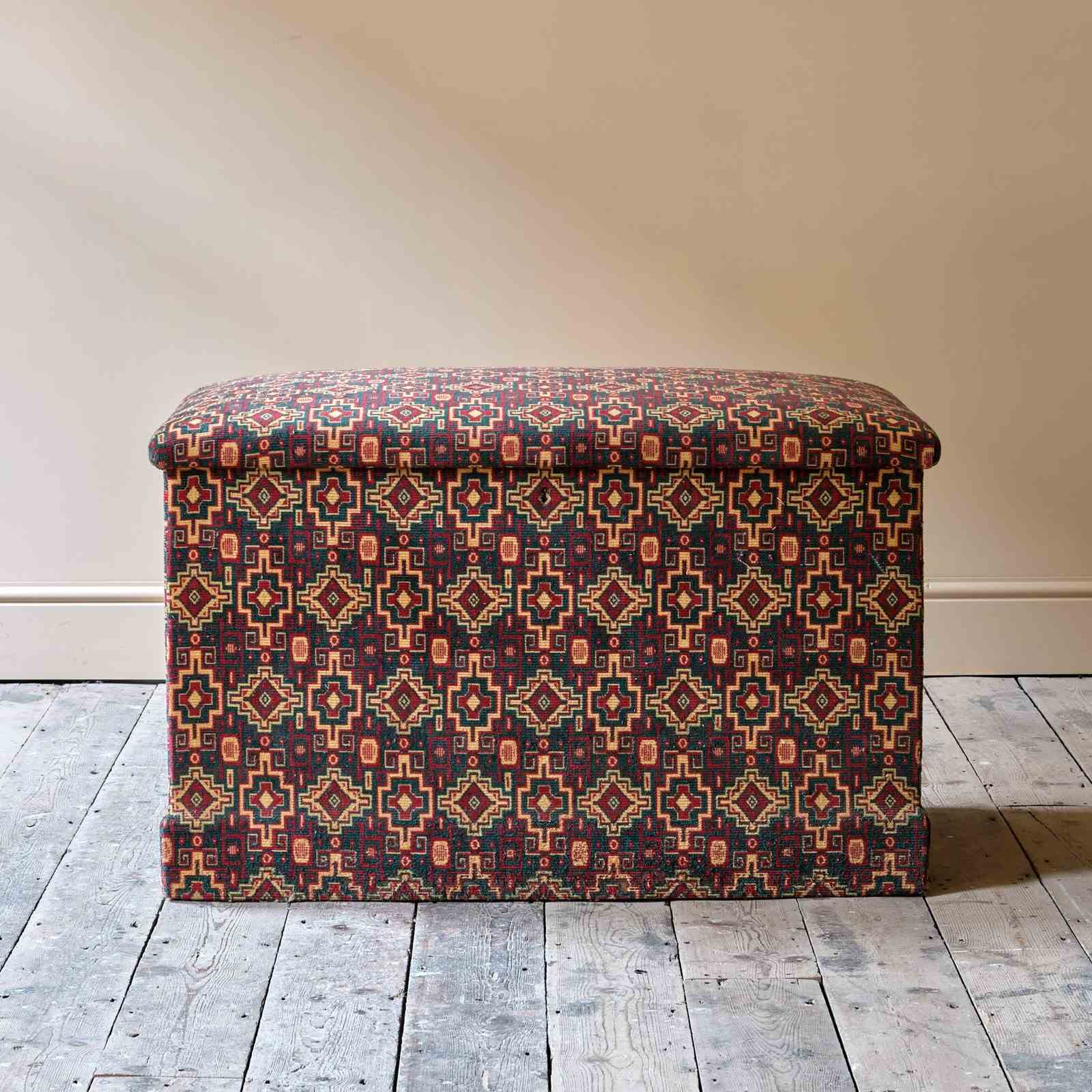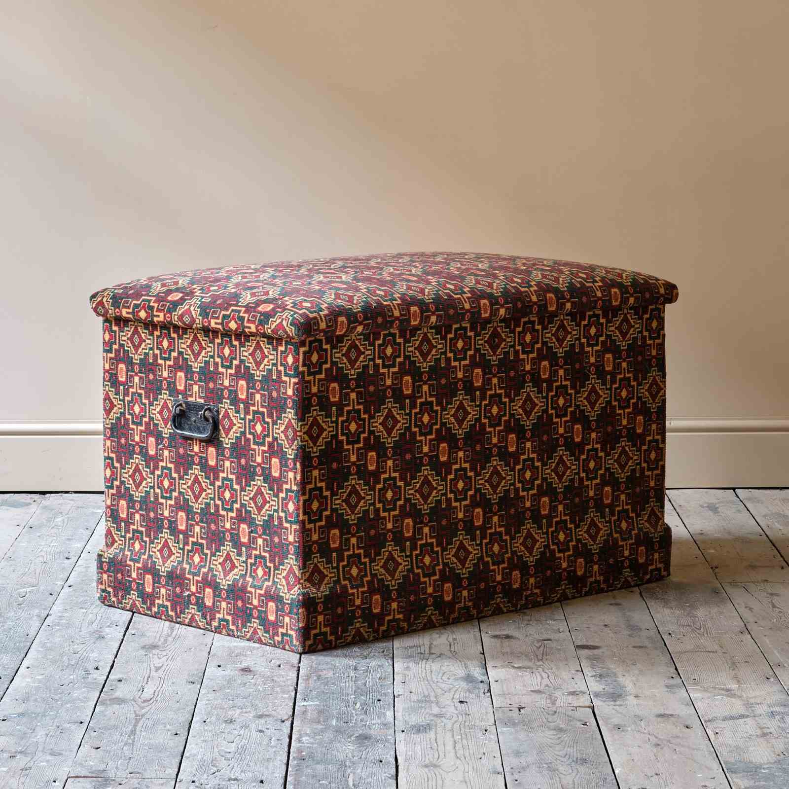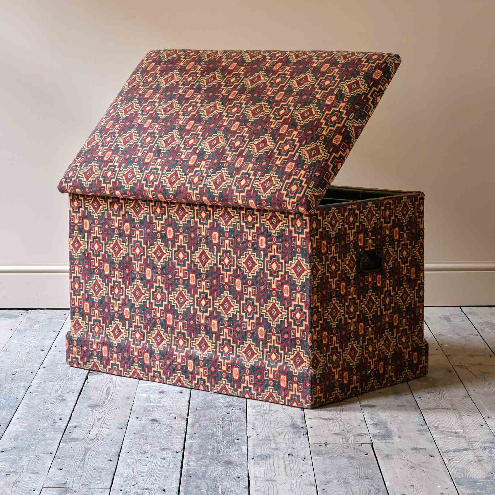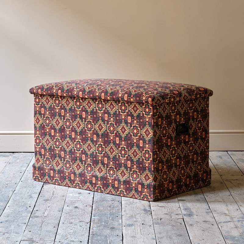 Large 19Th Century Upholstered Pine Storage Chest