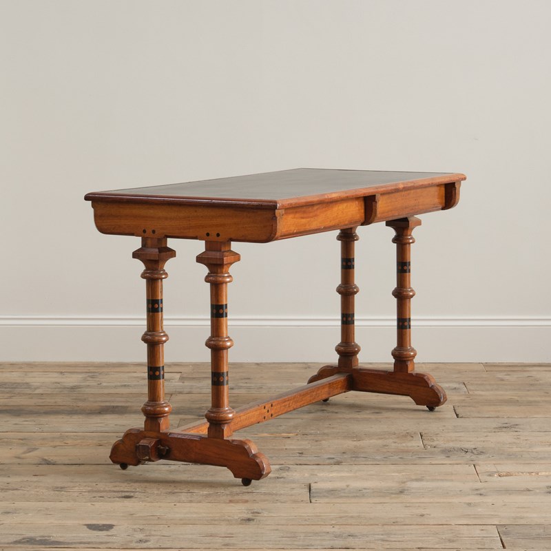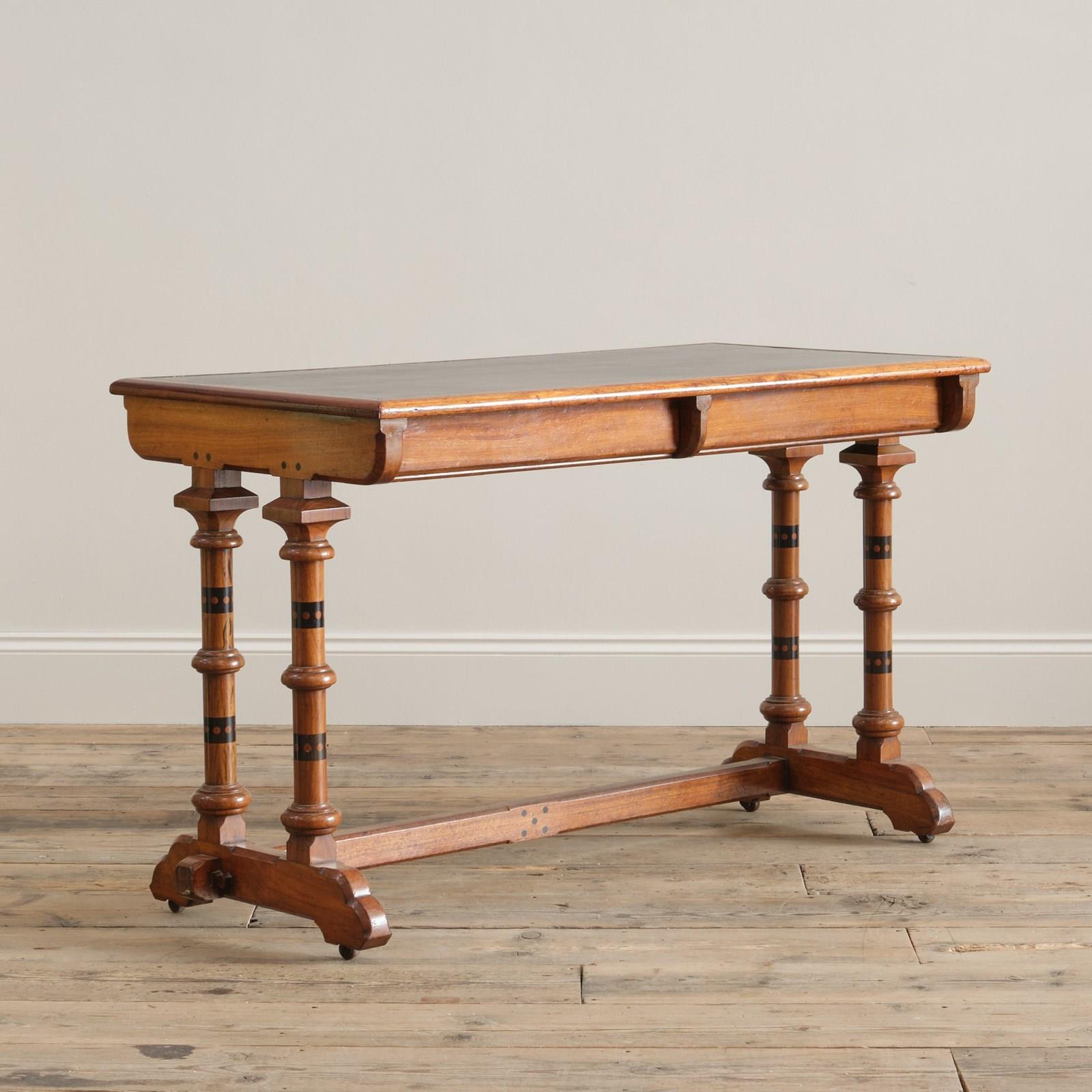 A Gothic Revival desk likely designed by Charles Bevan and made by Marsh & Jones of Leeds c1865.