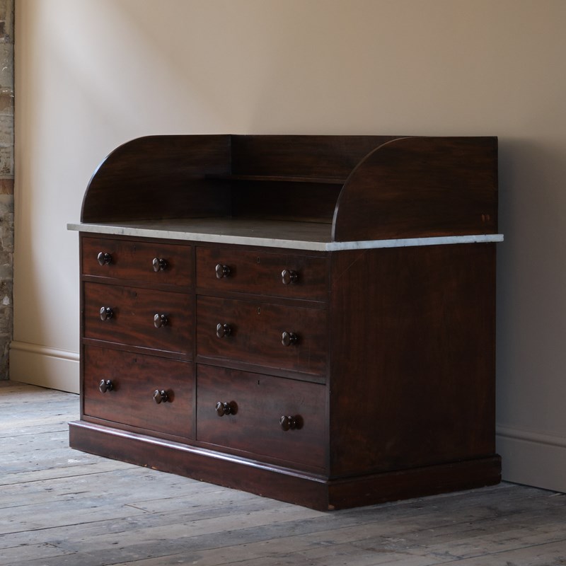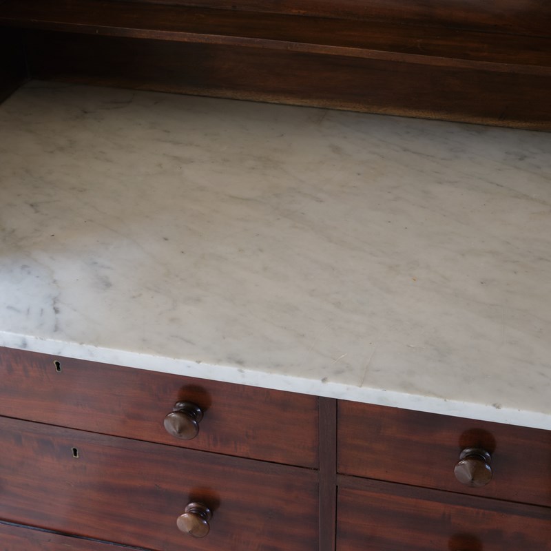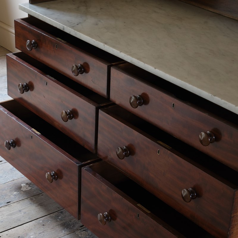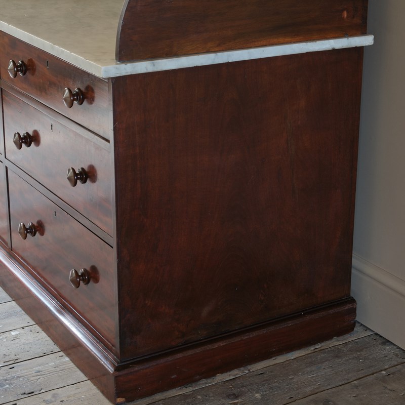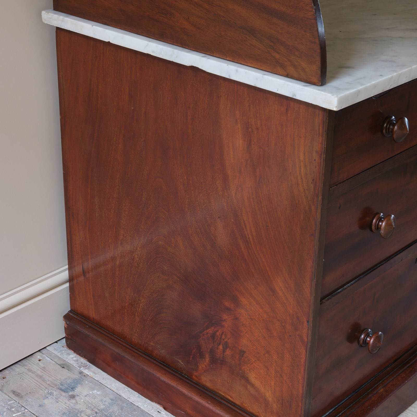 A wonderful and deep mid 19th century Mahogany washstand with a Carrara marble top. c1850