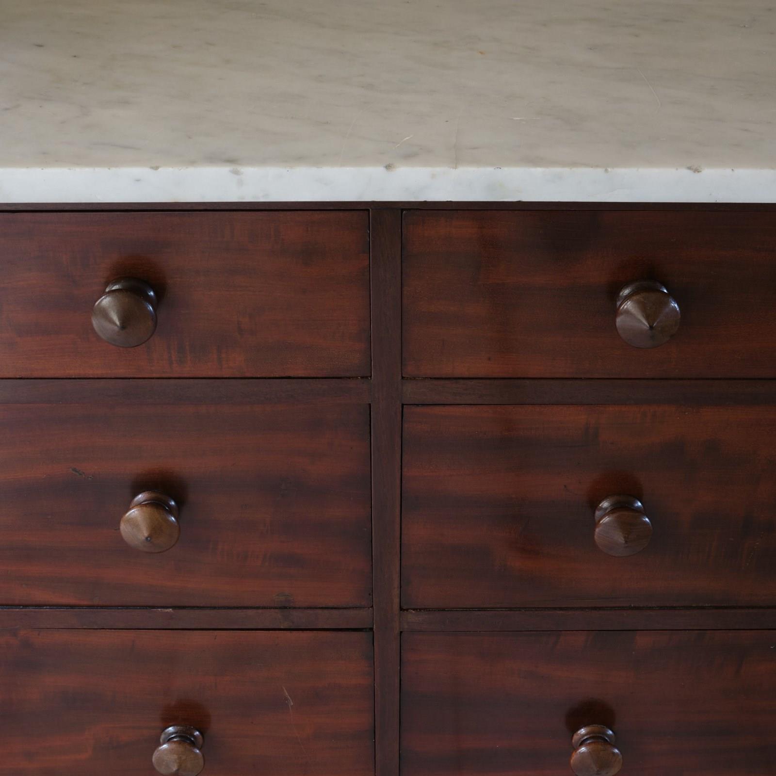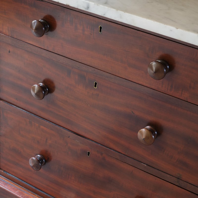 In good solid order with a nice rich colour and grain to the timber. The original marble top with the odd little chip on the front edge.