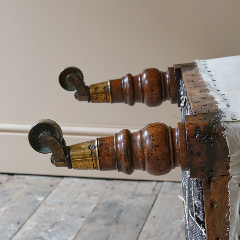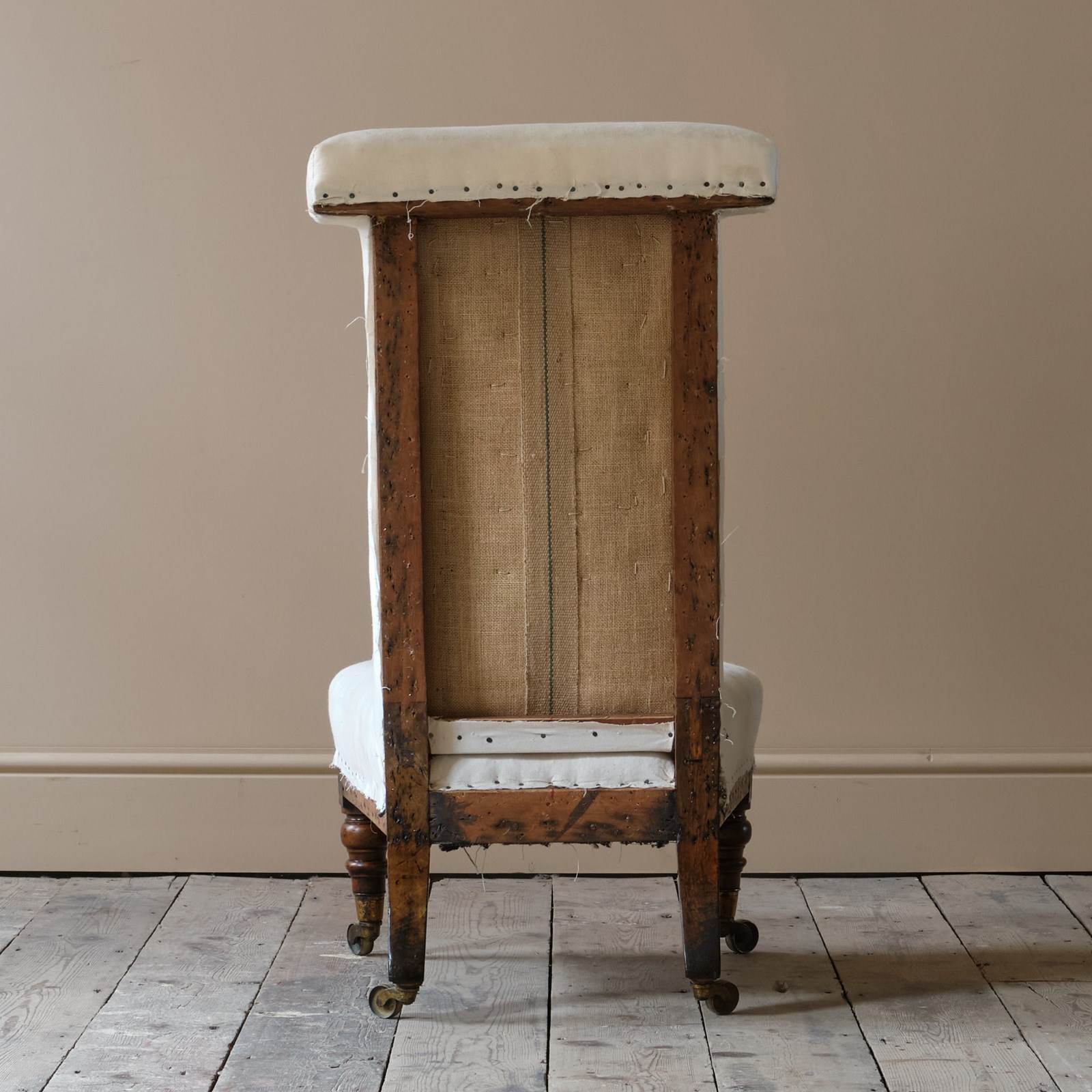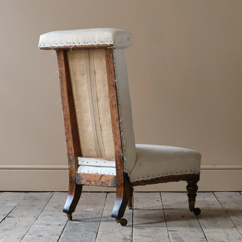 A mid 19th century prayer or side chair firmly attributed to Howard & Sons London, England c1840. Raised on walnut legs and brass casters.