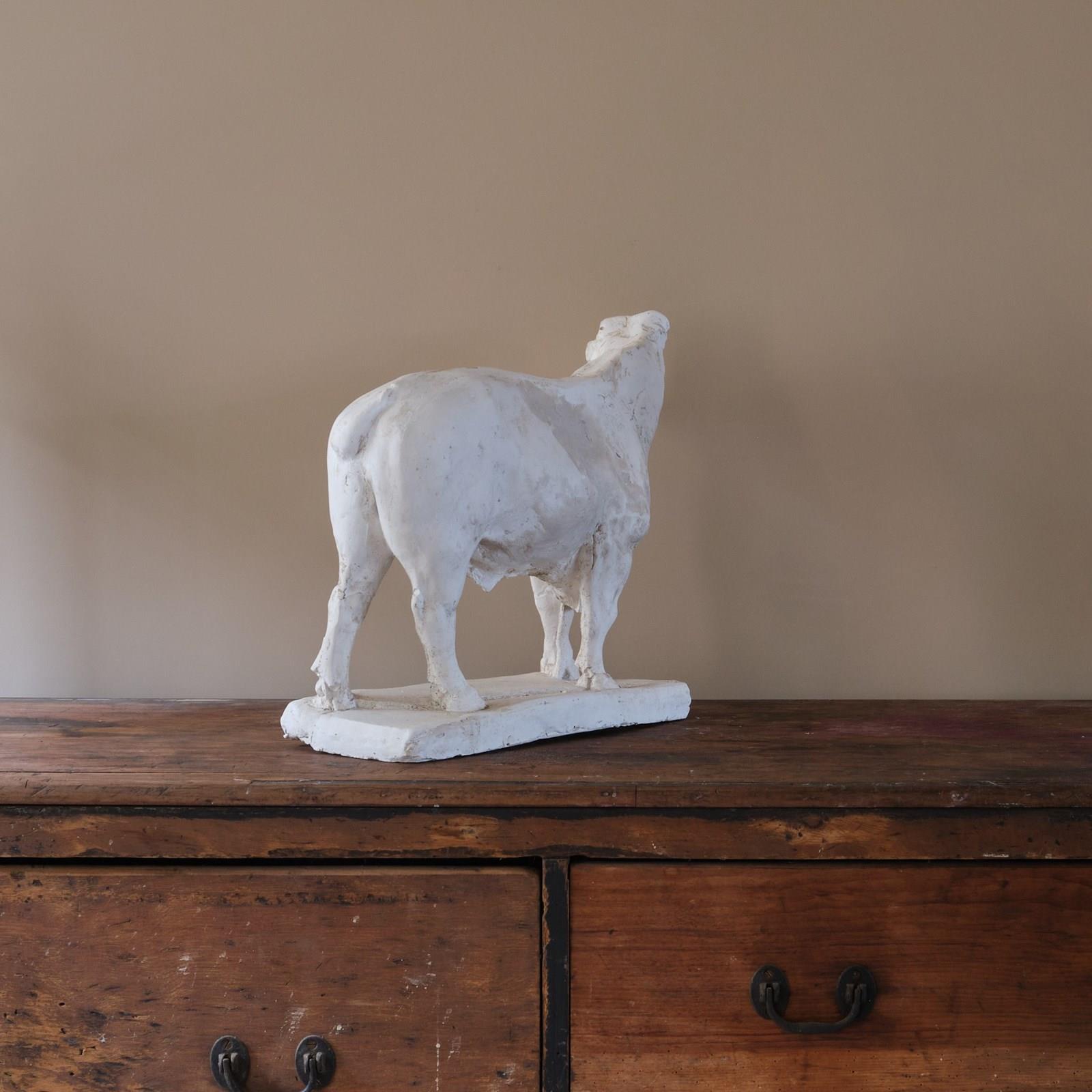 A large mid 20th century sculptures study of a bull. Constructed with plasters over a metal frame which is exposed on some of the legs.